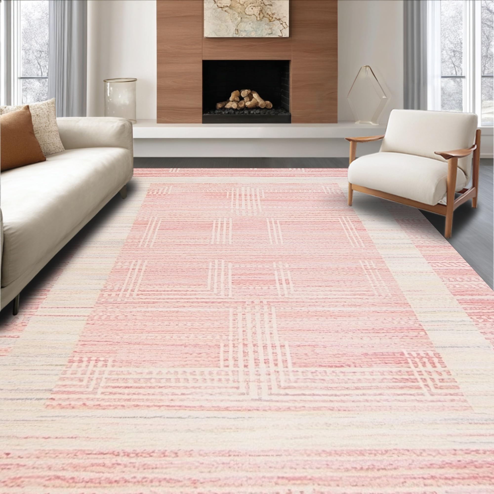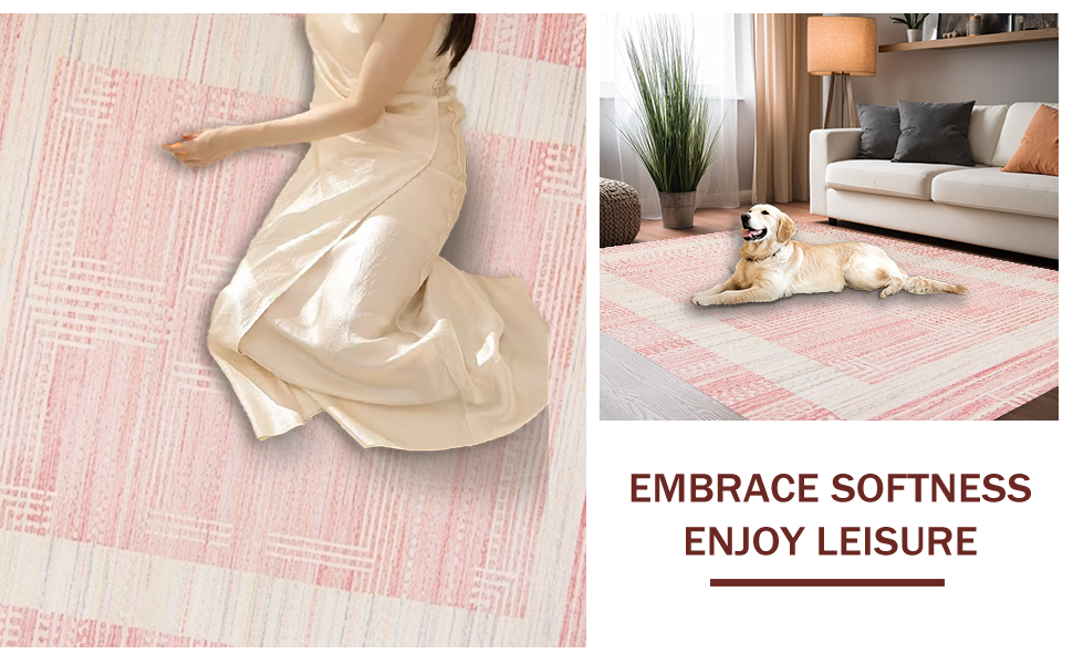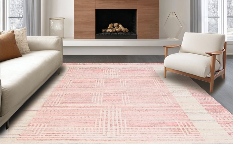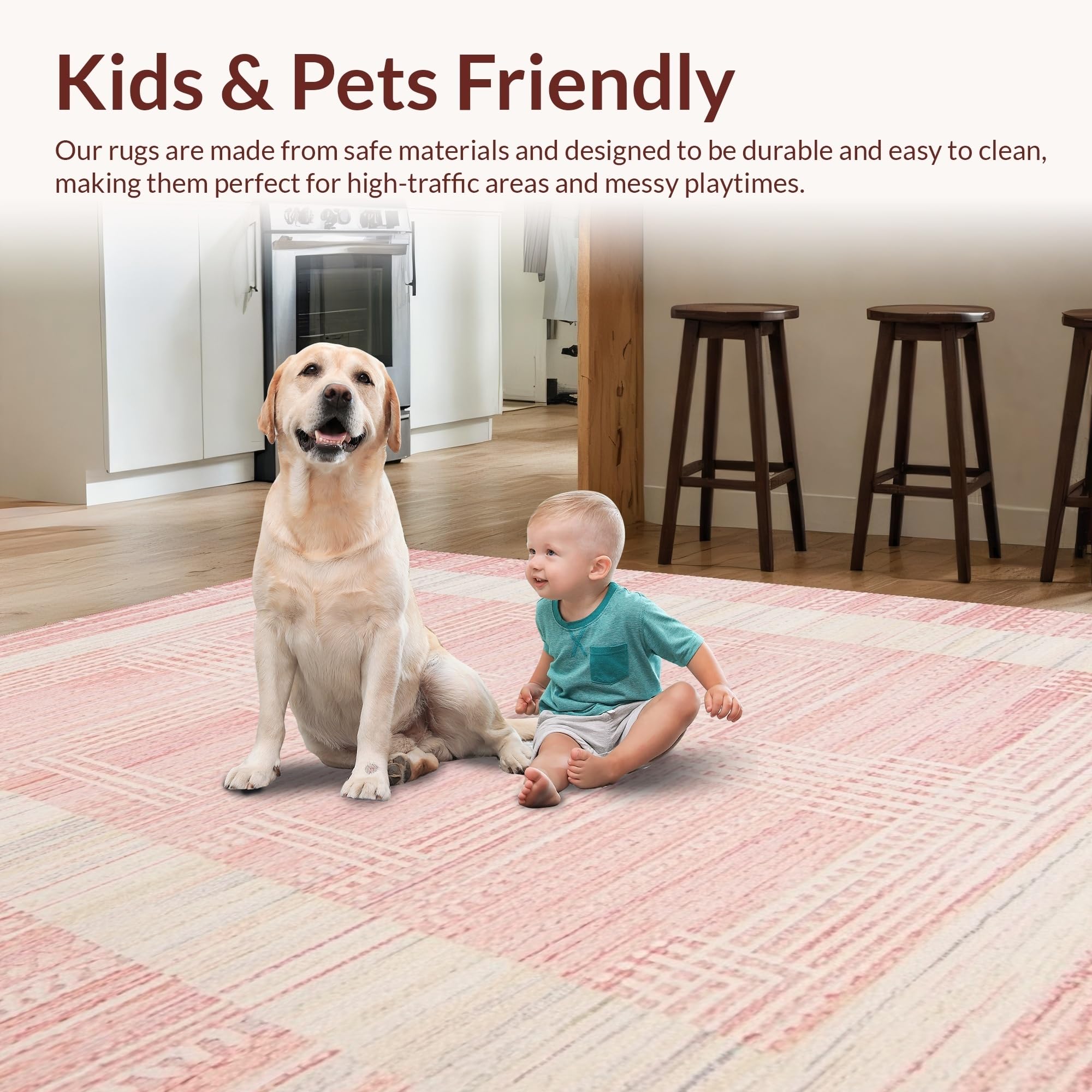 Ultra Soft Area Rug, Non Slip, Stain Resistant, Washable Area Rugs for Living Room, Bedroom, Chic Cozy Blush Minimalist Aesthetic(Pink) Overview: