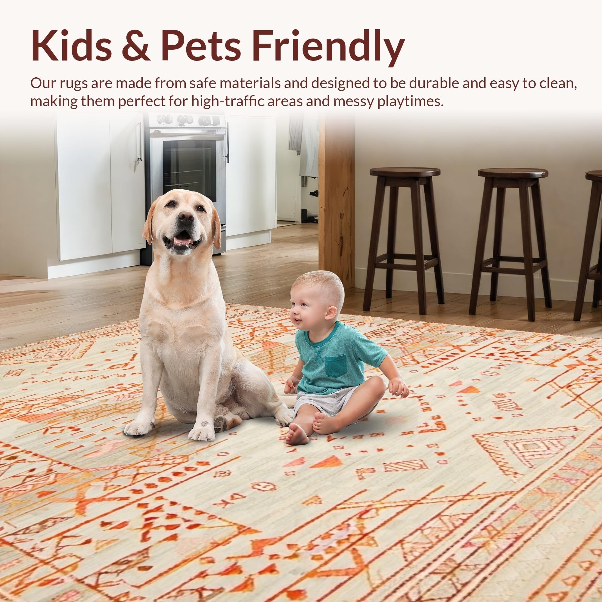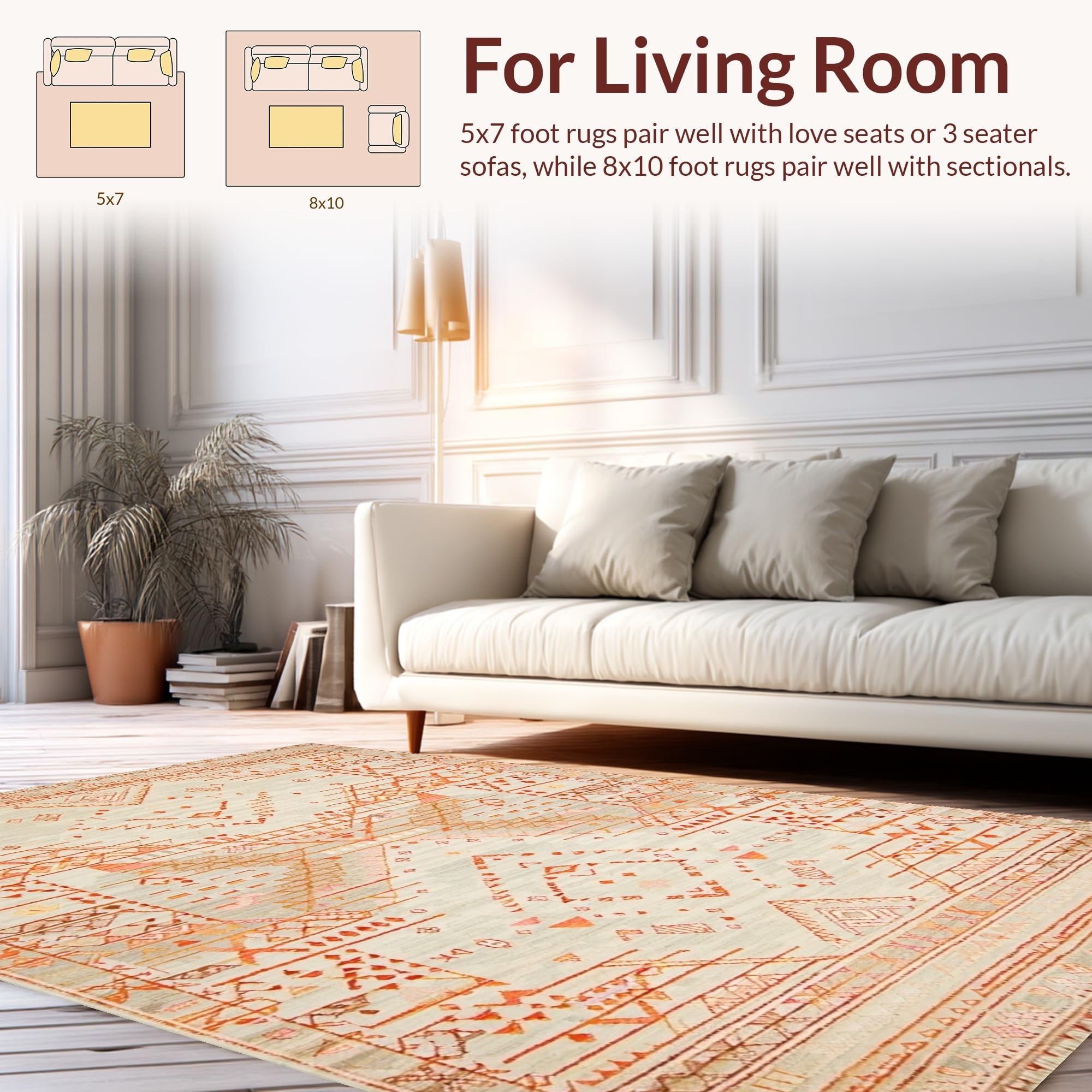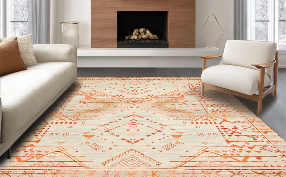 Ultra Soft Area Rug, Non Slip, Stain Resistant, Washable Area Rugs for Living Room, Bedroom, Chic Cozy Diamond Arrangement(Beige) Overview: