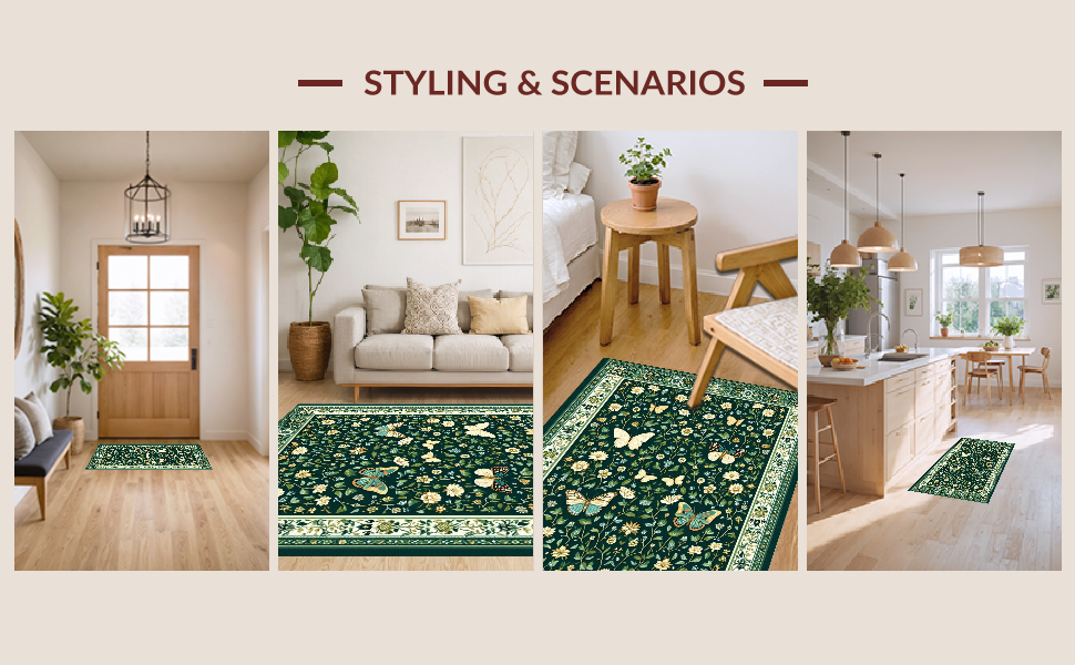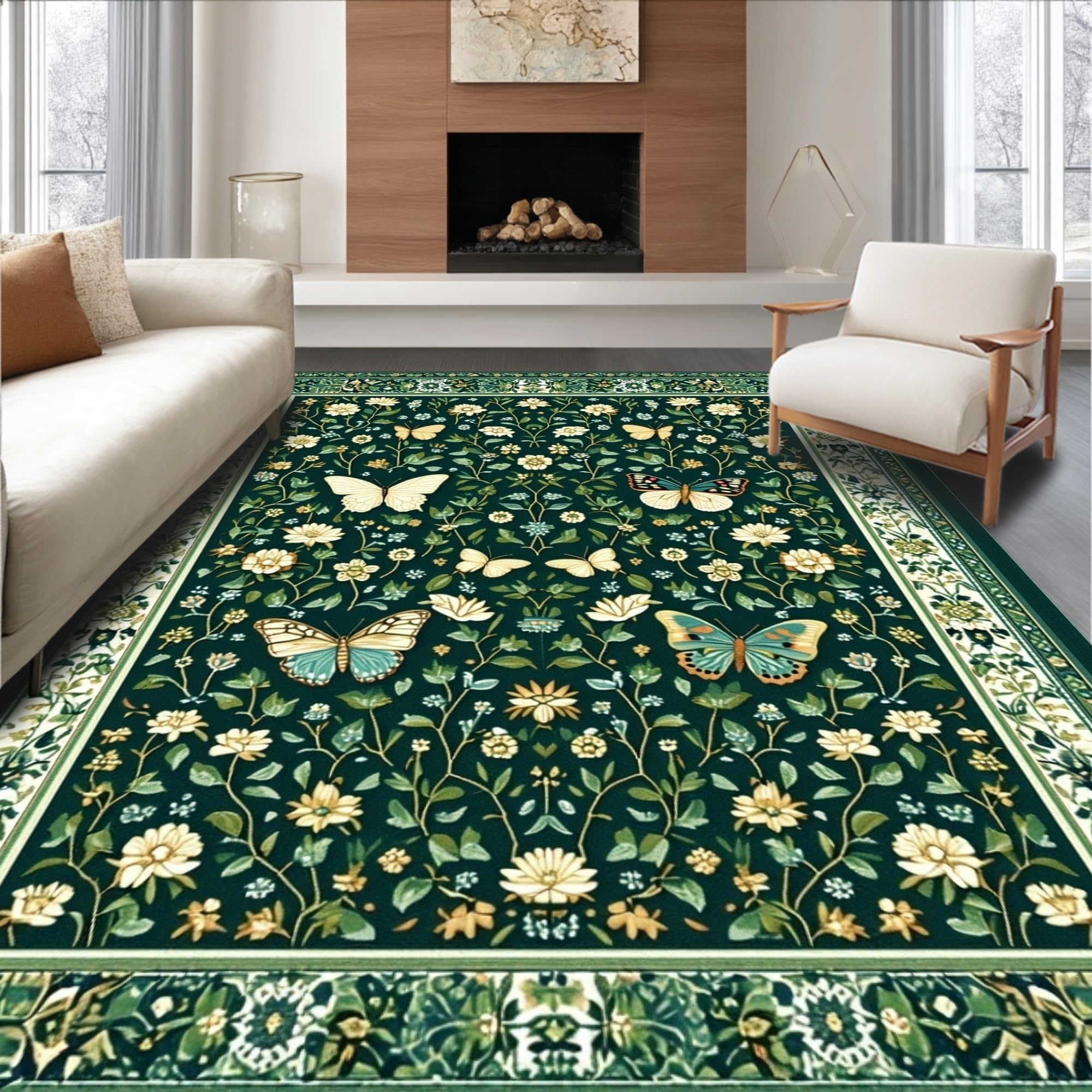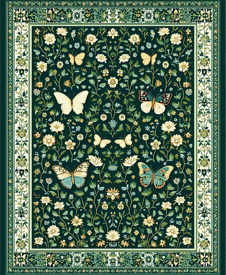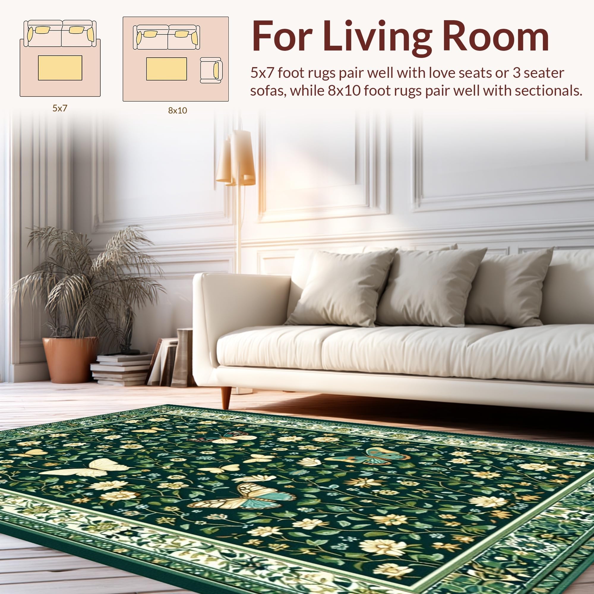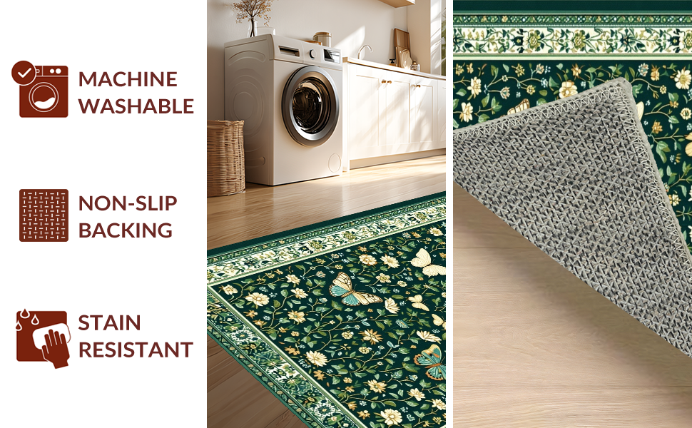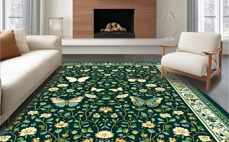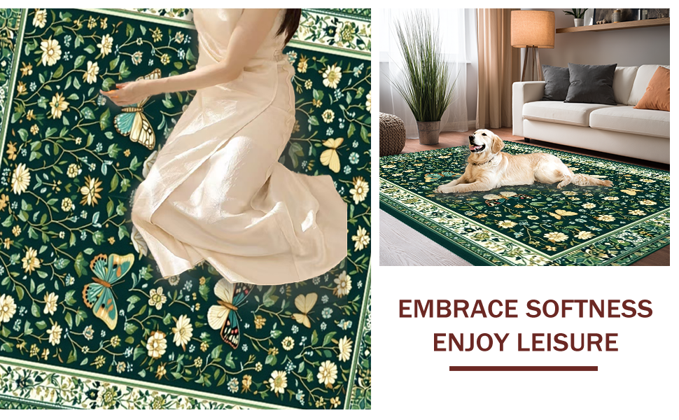Ultra Soft Area Rug, Non Slip, Stain Resistant, Washable Area Rugs for Living Room, Bedroom, Chic Dark Green Botanical Motif(Green) Overview: