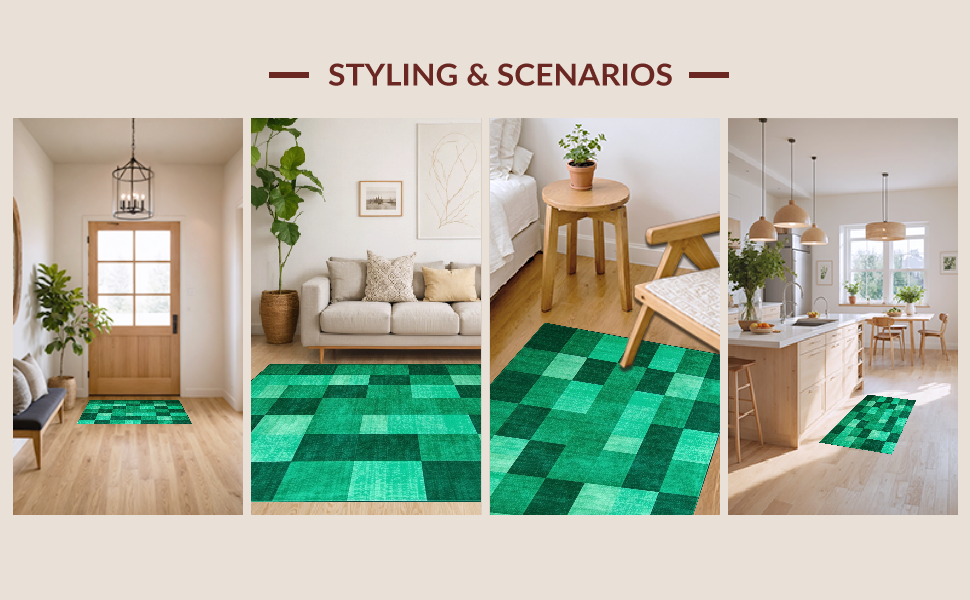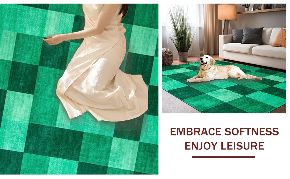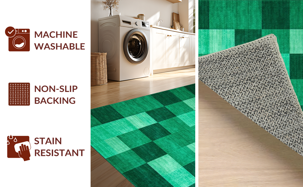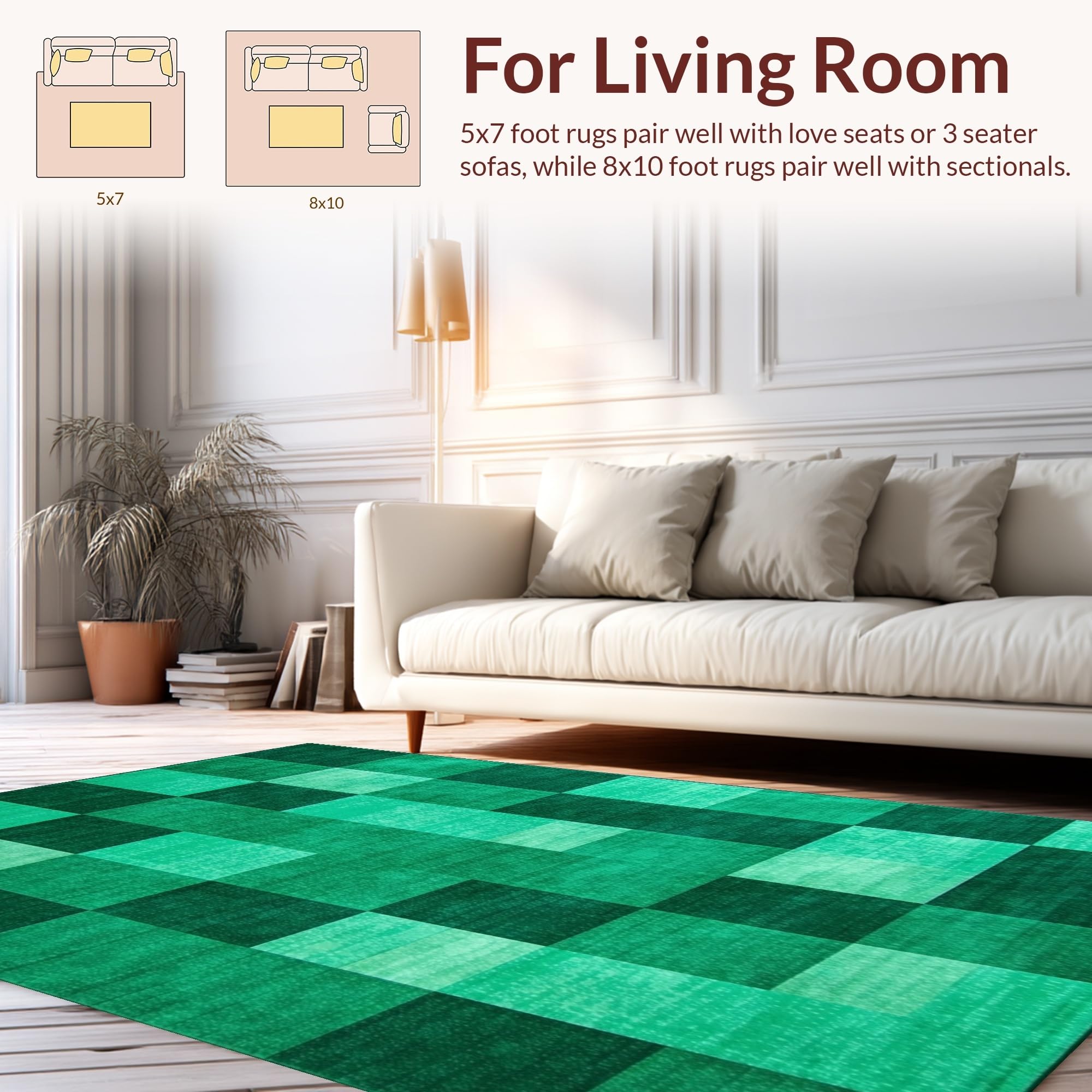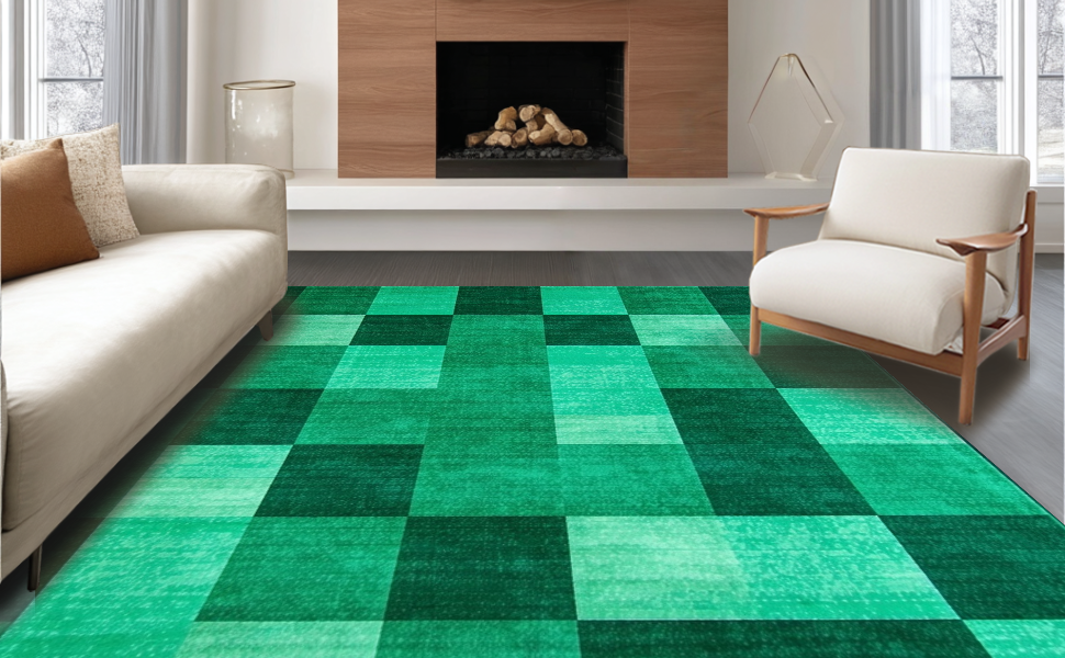 Ultra Soft Area Rug, Non Slip, Stain Resistant, Washable Area Rugs for Living Room, Bedroom, Chic Dark Green Geometric Pattern(Green) Overview: