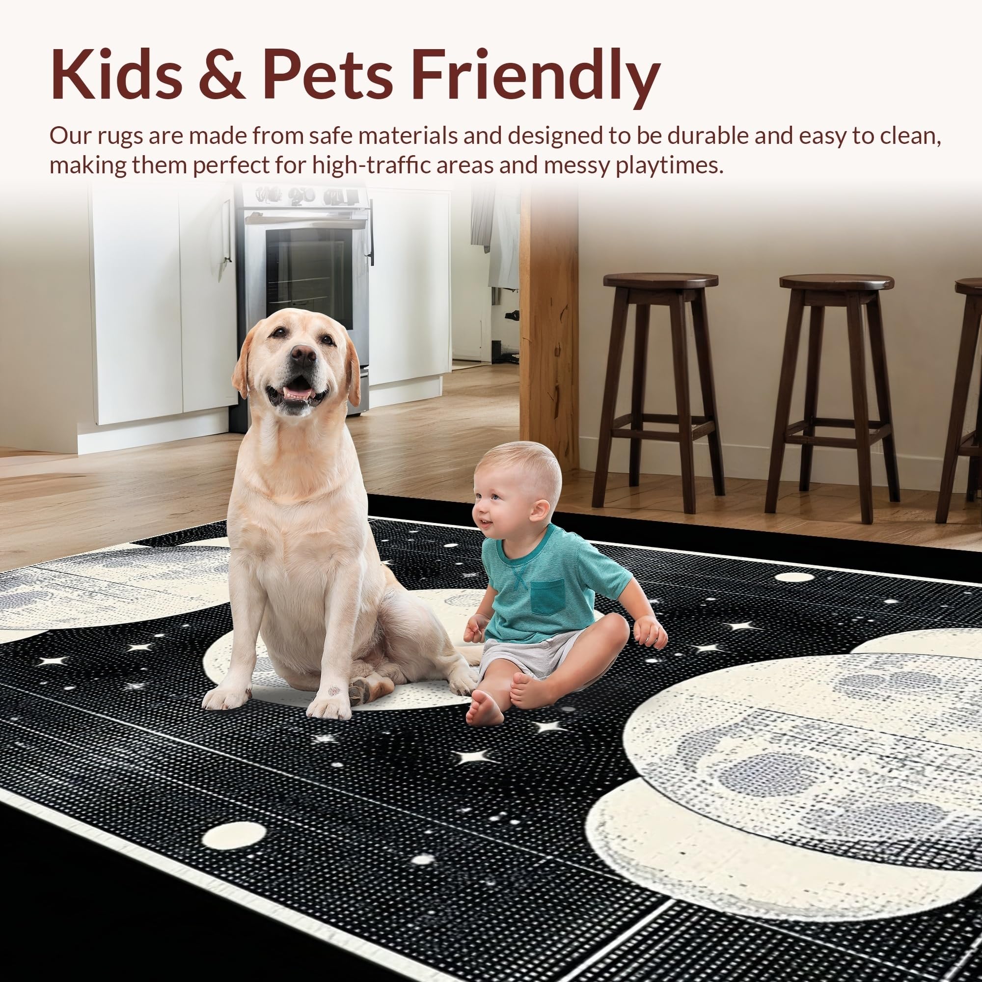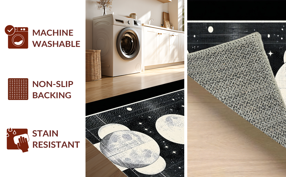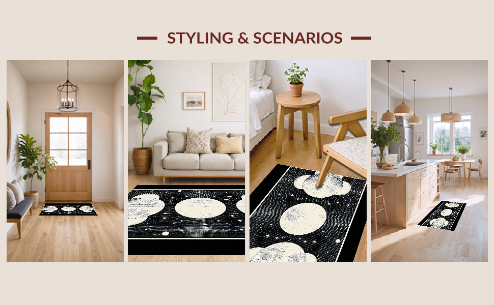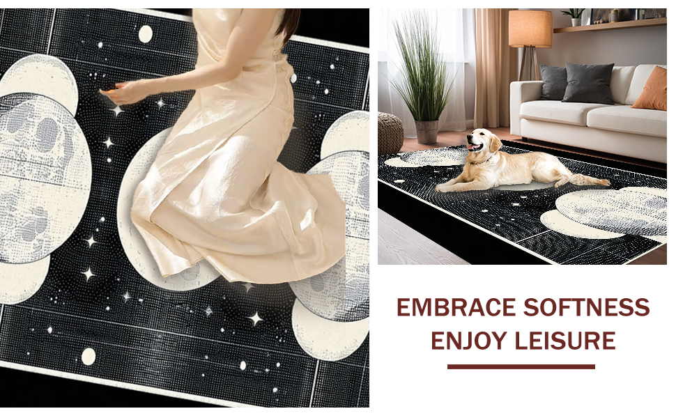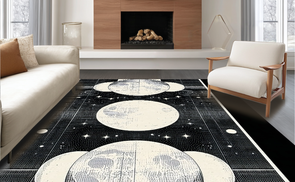 Ultra Soft Area Rug, Non Slip, Stain Resistant, Washable Area Rugs for Living Room, Bedroom, Chic Dark Toned Lunar Design(Ivory) Overview: