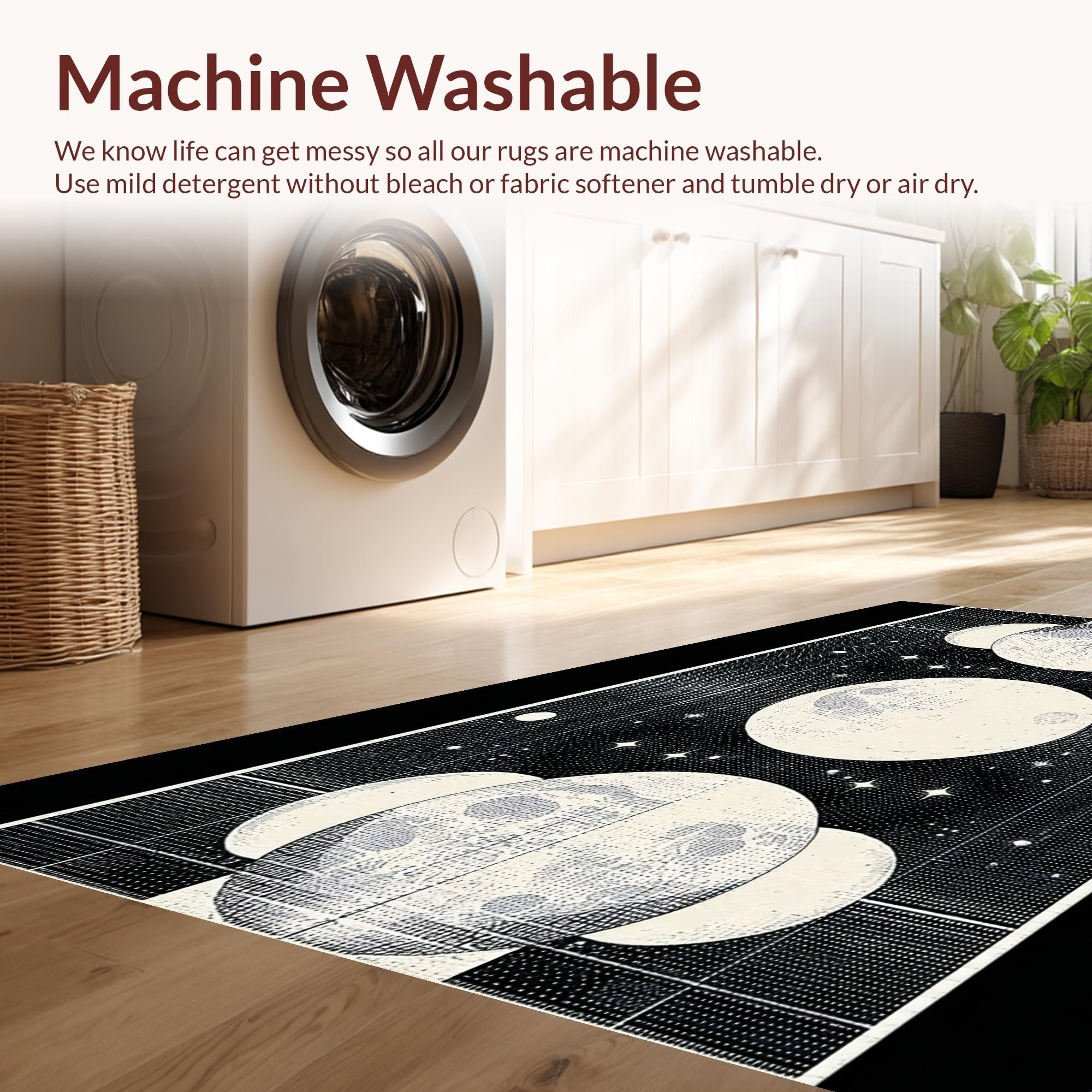 - Machine Washable: Our rugs can be easily thrown in the wash machine.