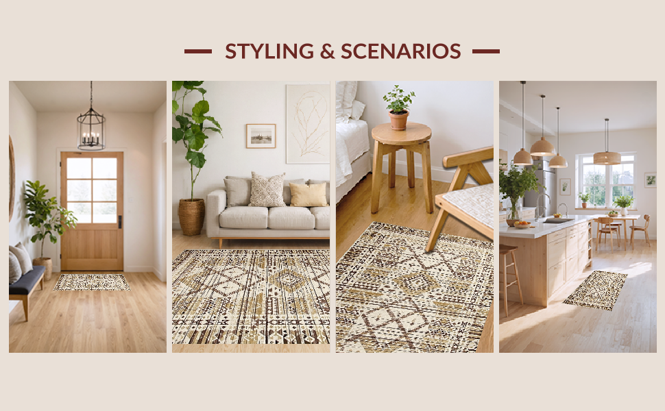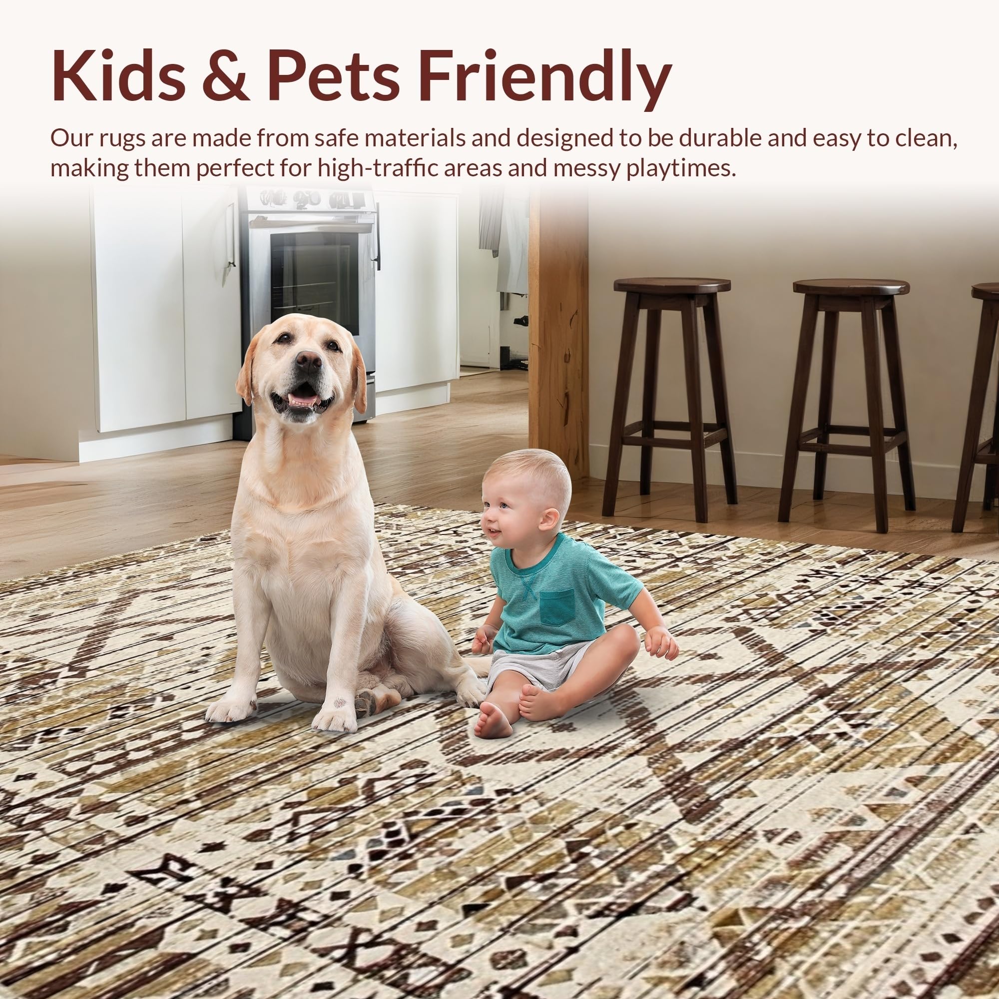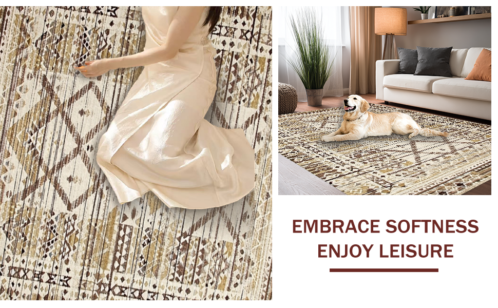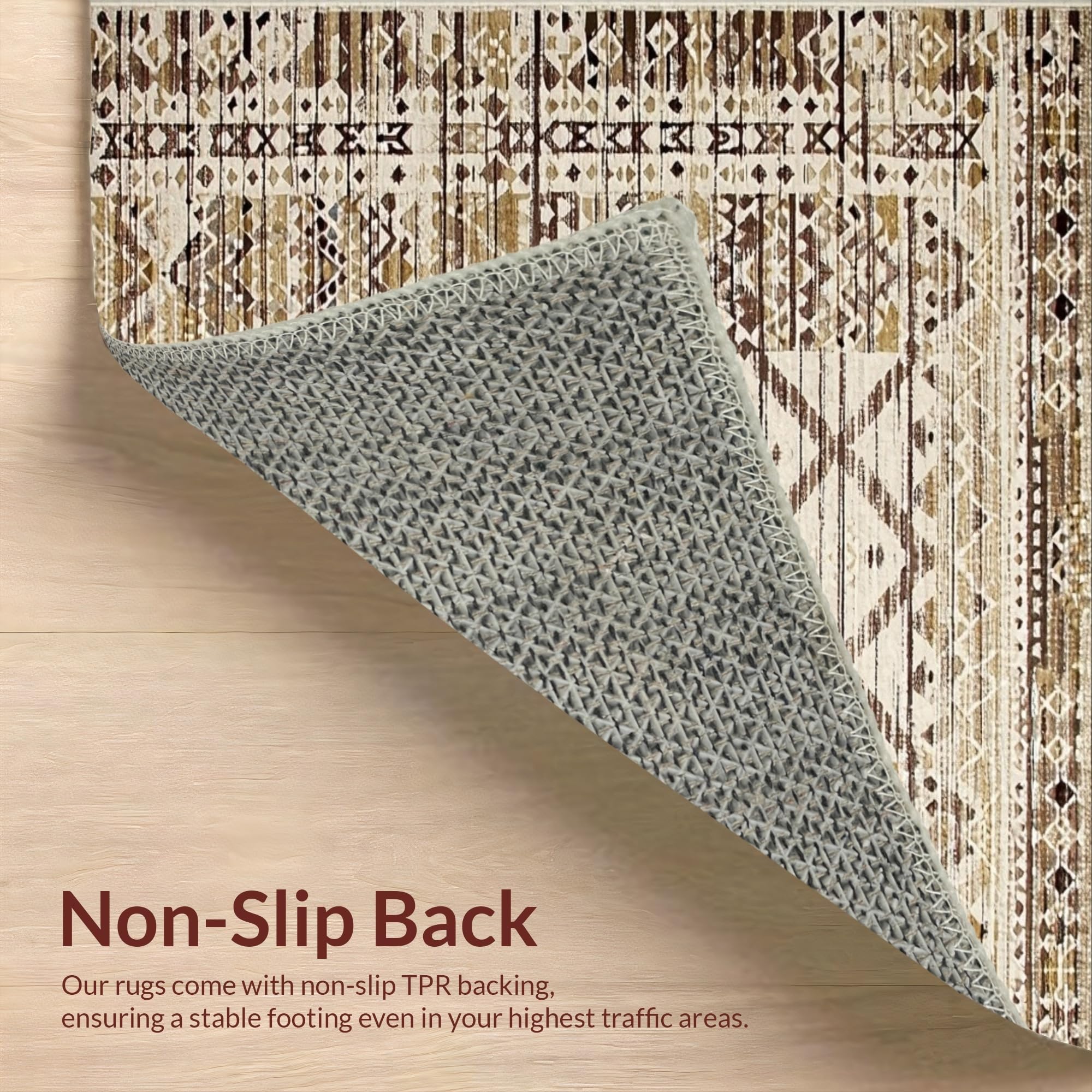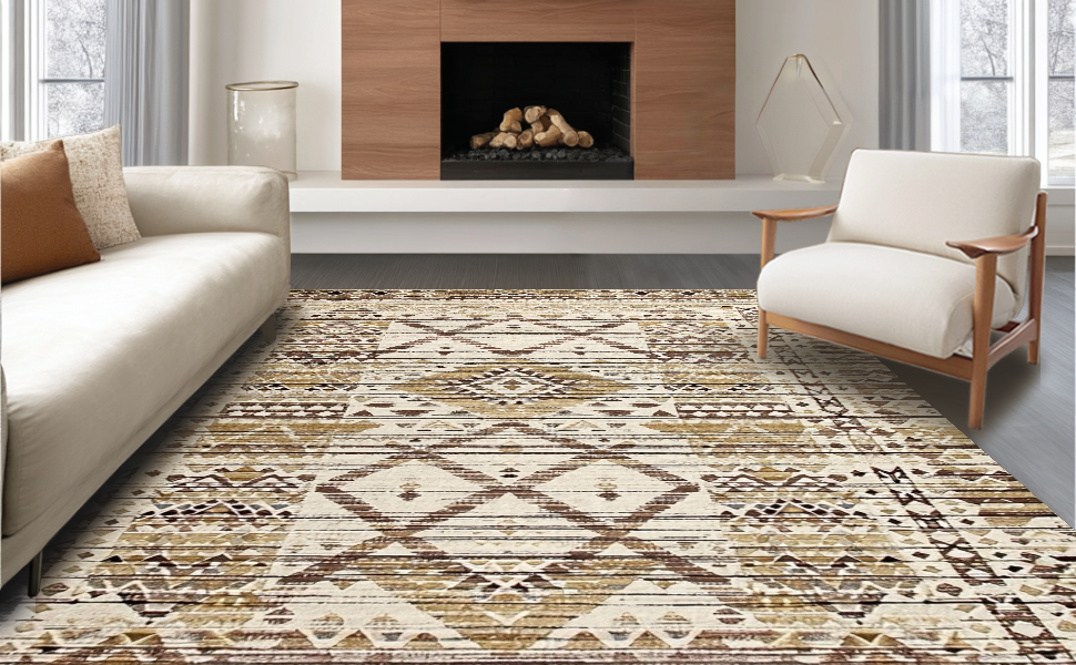 Ultra Soft Area Rug, Non Slip, Stain Resistant, Washable Area Rugs for Living Room, Bedroom, Chic Distressed Diamond Pattern(Beige) Overview: