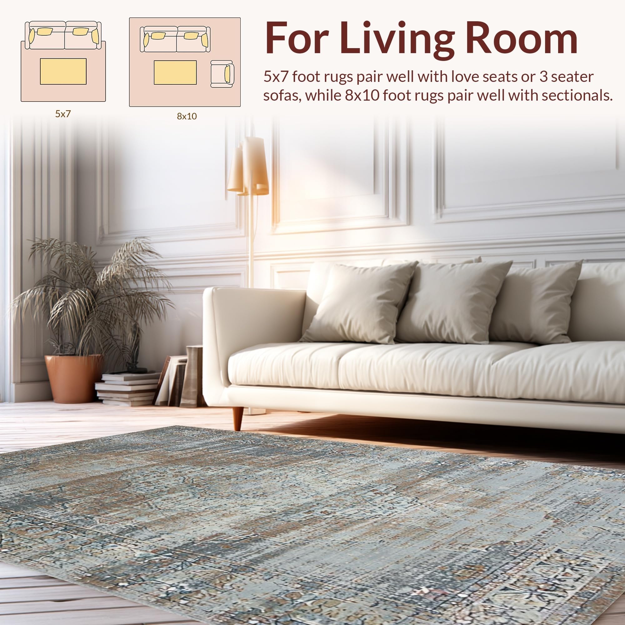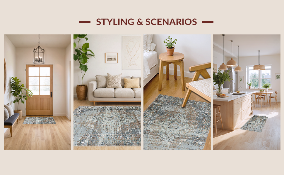 Ultra Soft Area Rug, Non Slip, Stain Resistant, Washable Area Rugs for Living Room, Bedroom, Chic Distressed Floral Aesthetic(Gray) Overview: