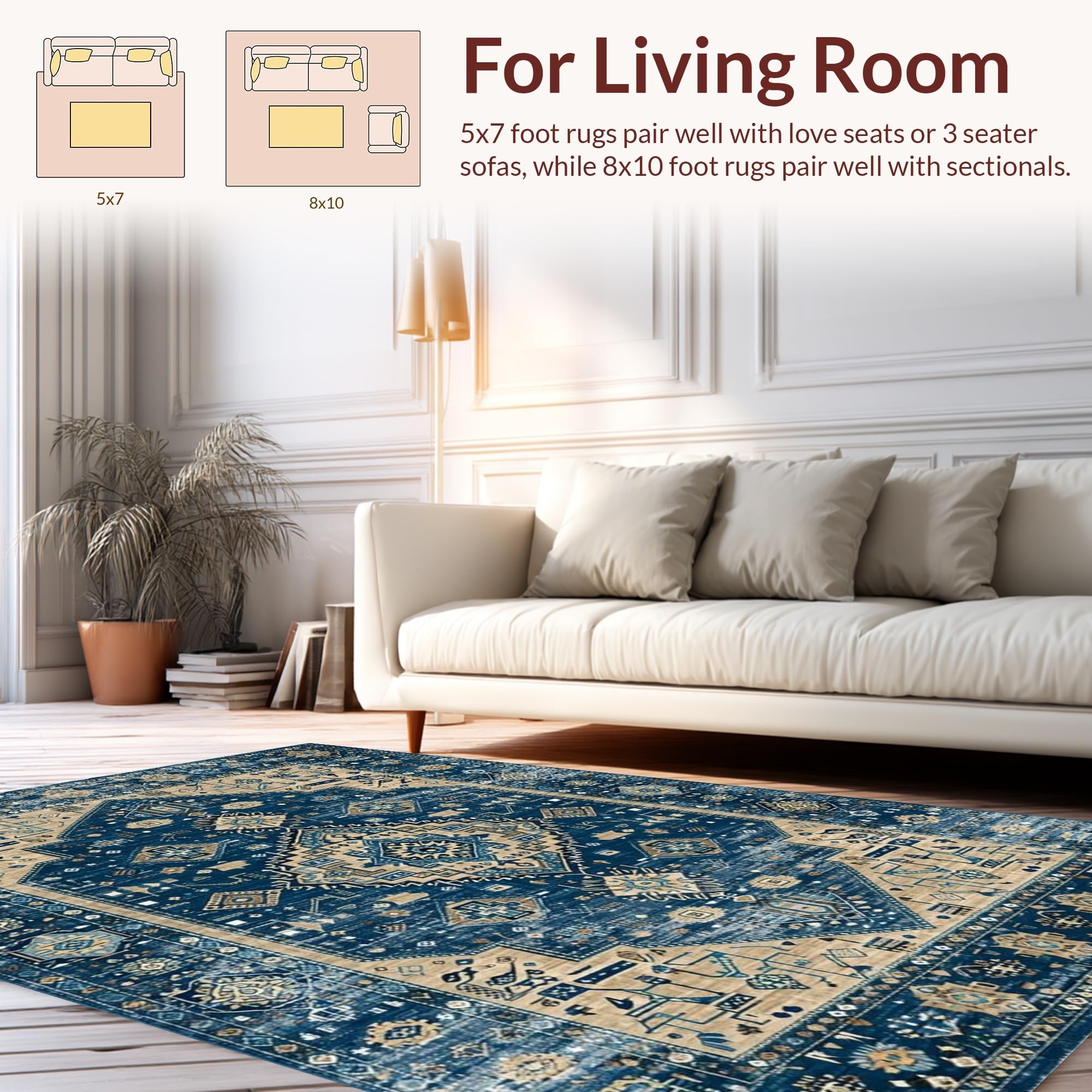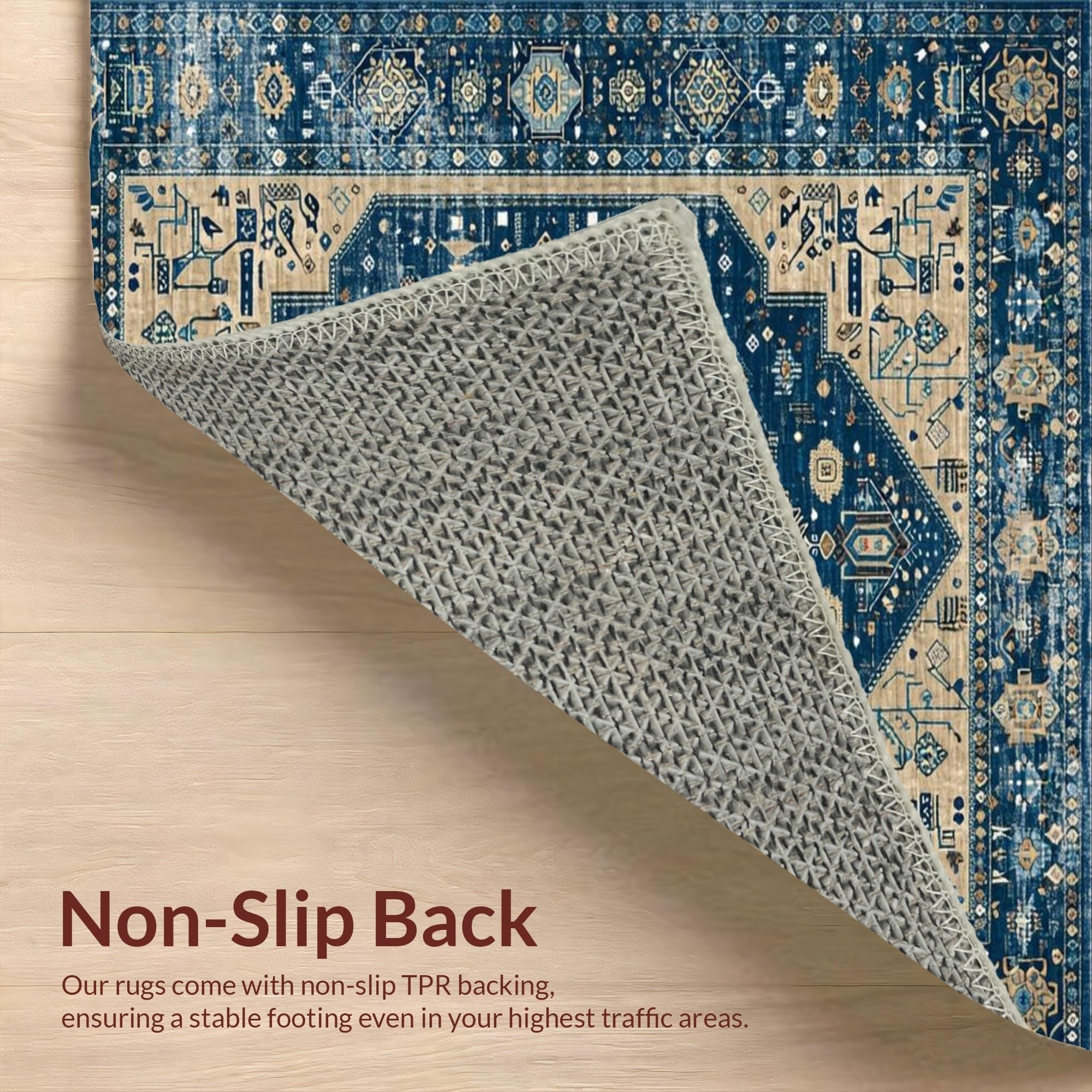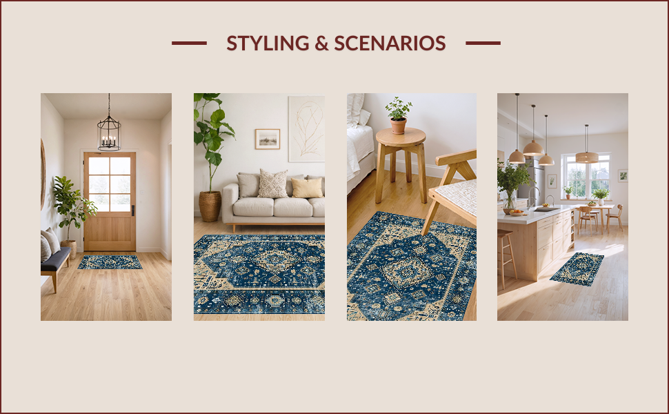 Ultra Soft Area Rug, Non Slip, Stain Resistant, Washable Area Rugs for Living Room, Bedroom, Chic Distressed Geometric Aesthetic(Blue) Overview: