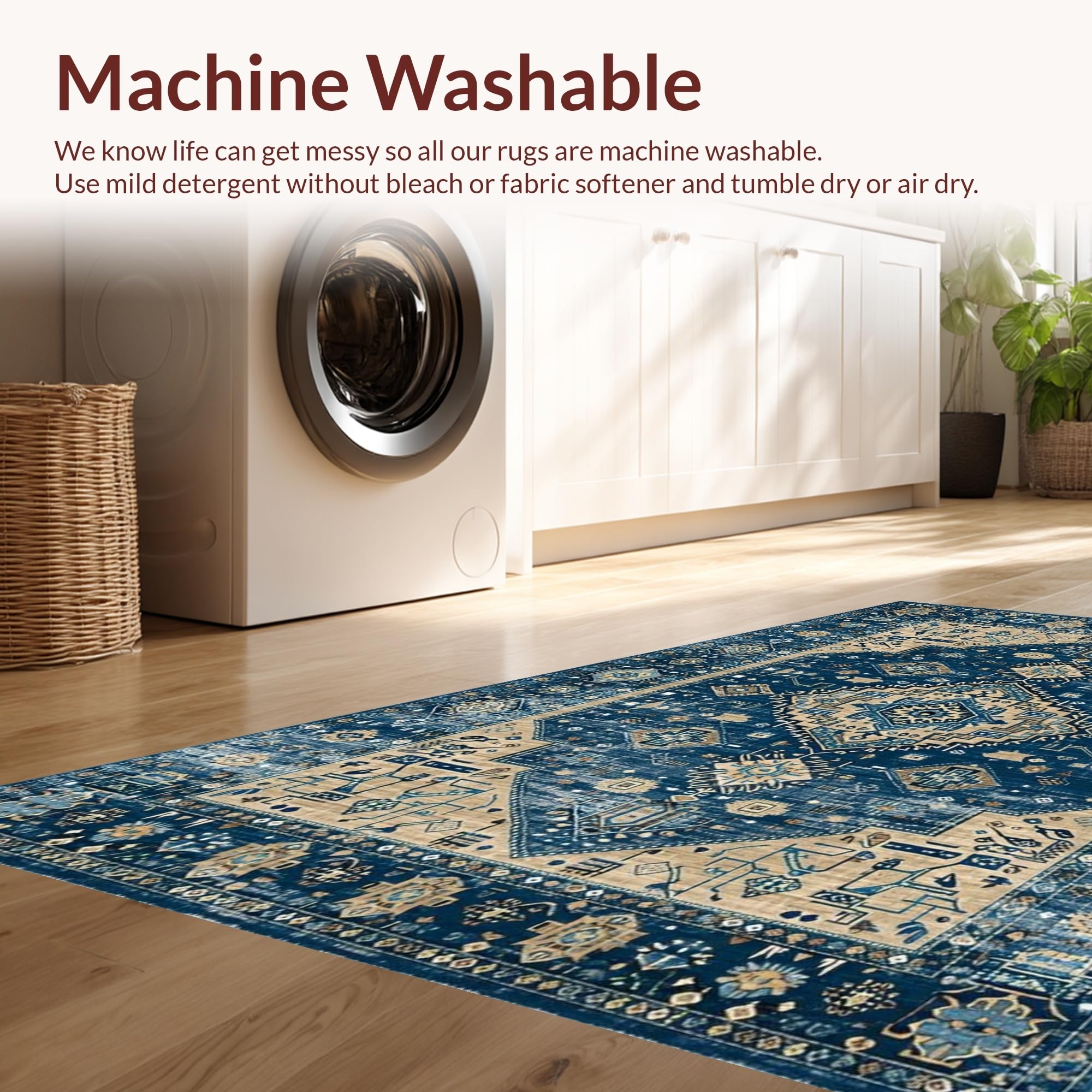 - Machine Washable: Our rugs can be easily thrown in the wash machine.