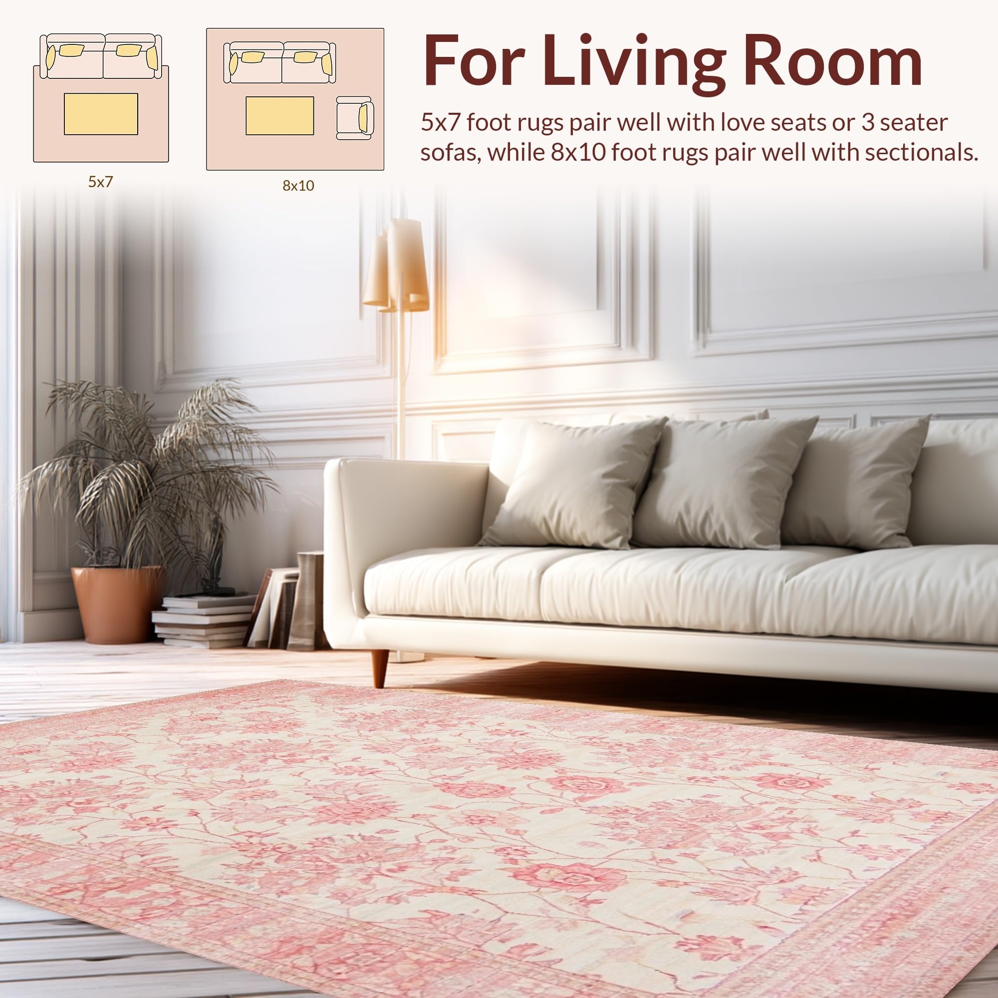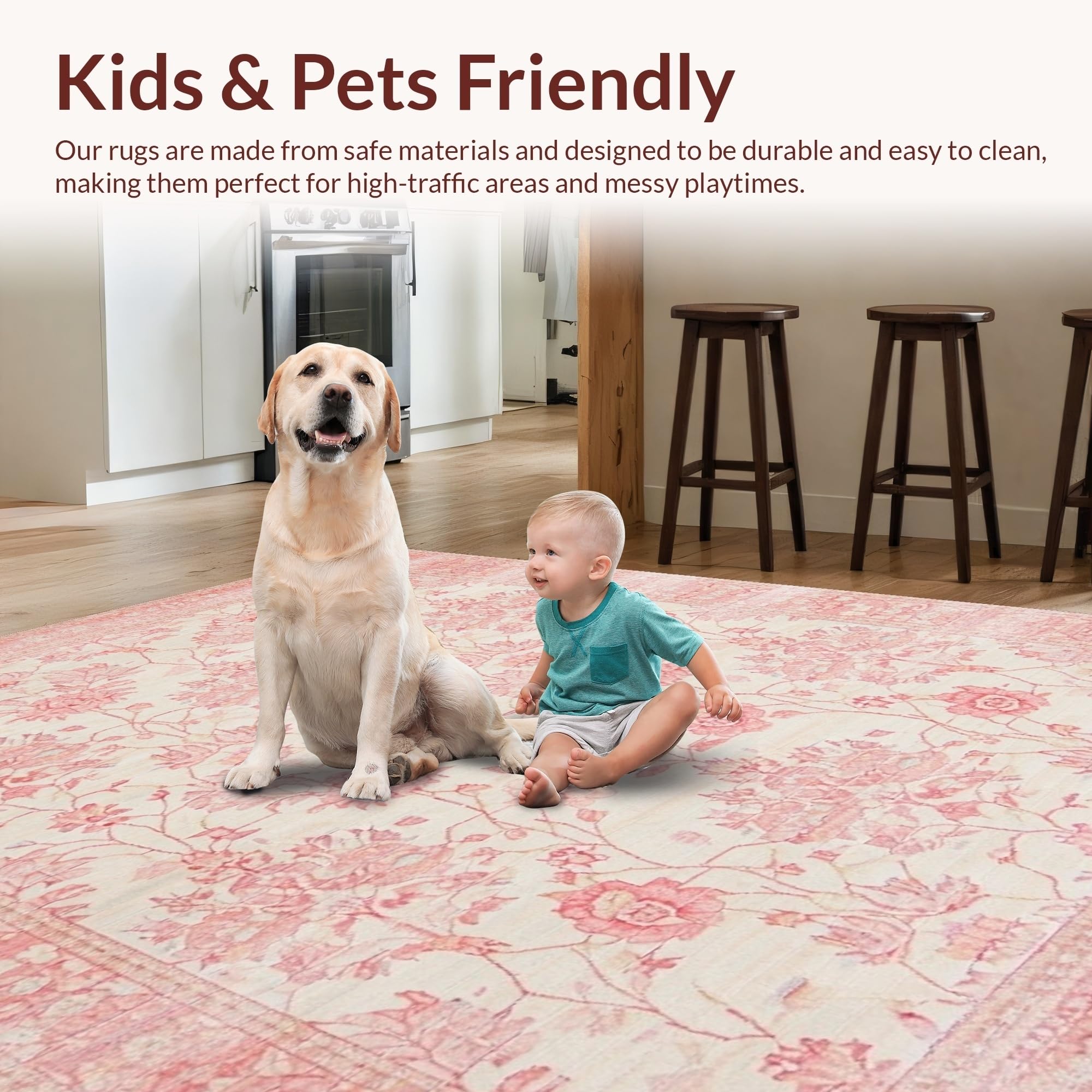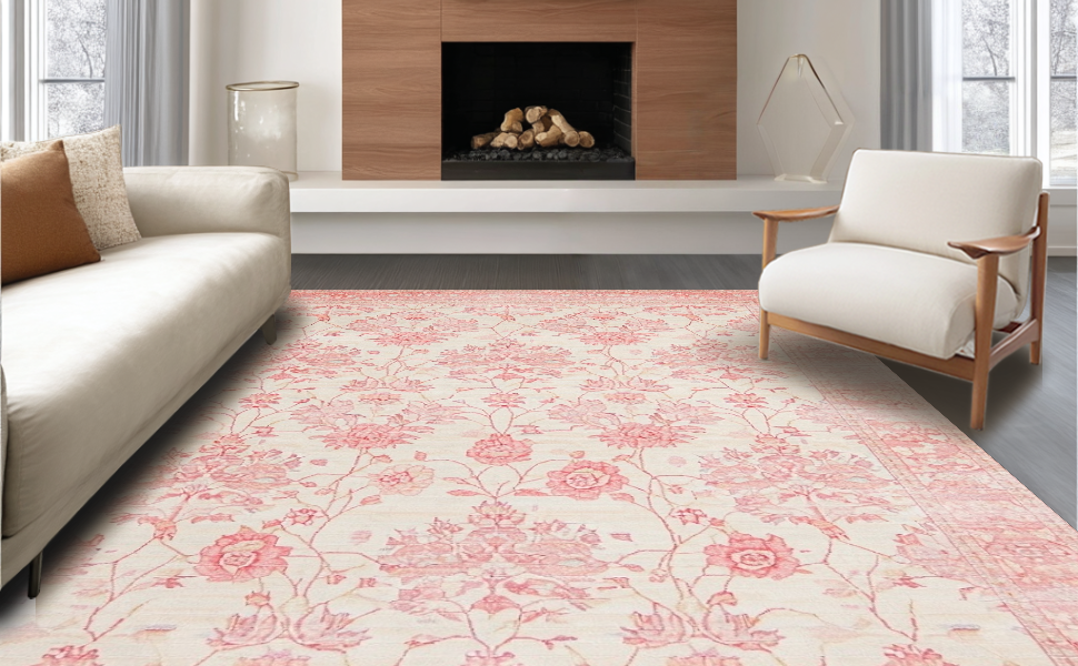 Ultra Soft Area Rug, Non Slip, Stain Resistant, Washable Area Rugs for Living Room, Bedroom, Chic Dusty Rose Minimalist Texture(Pink) Overview: