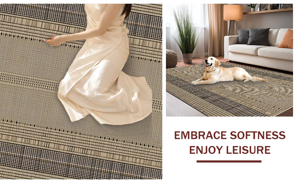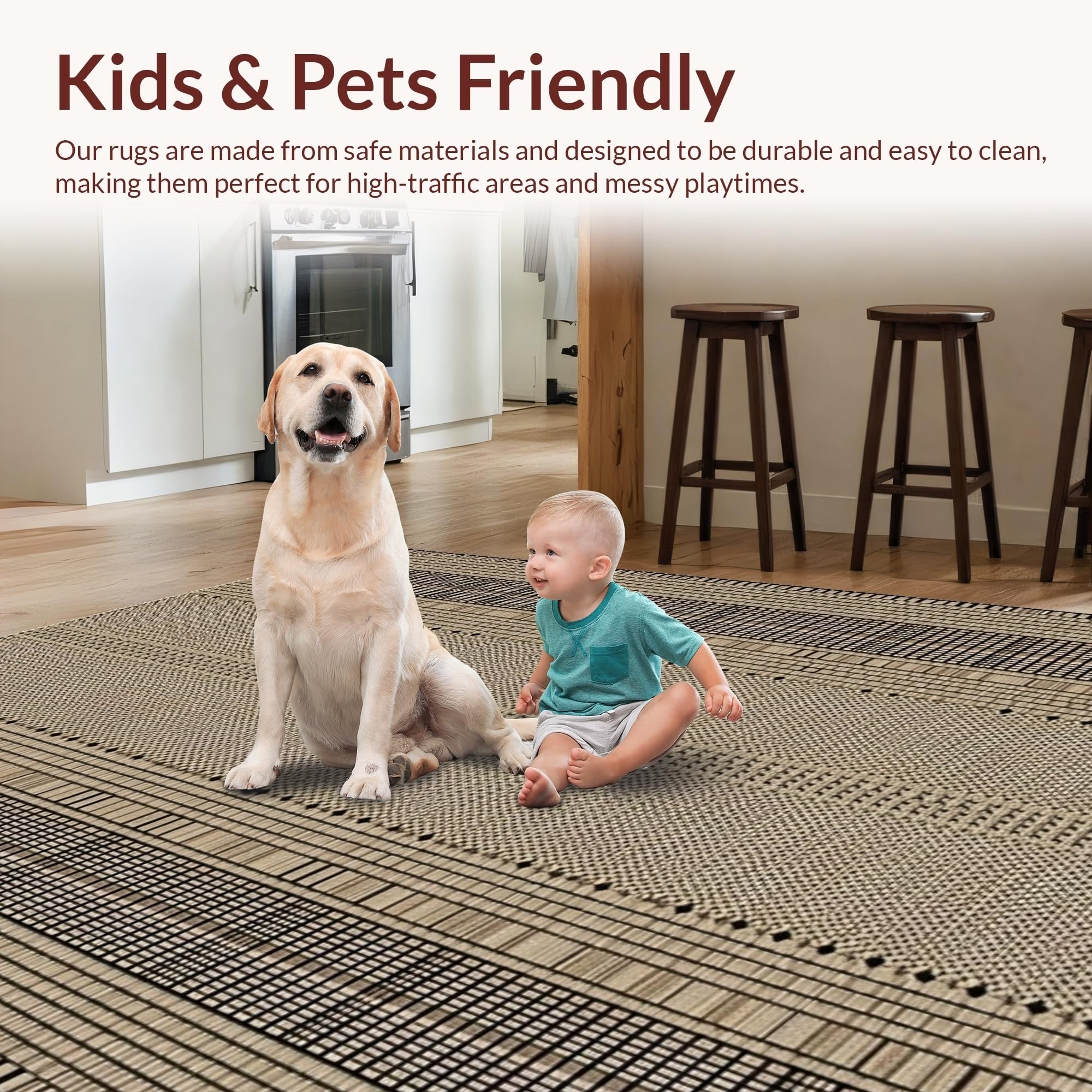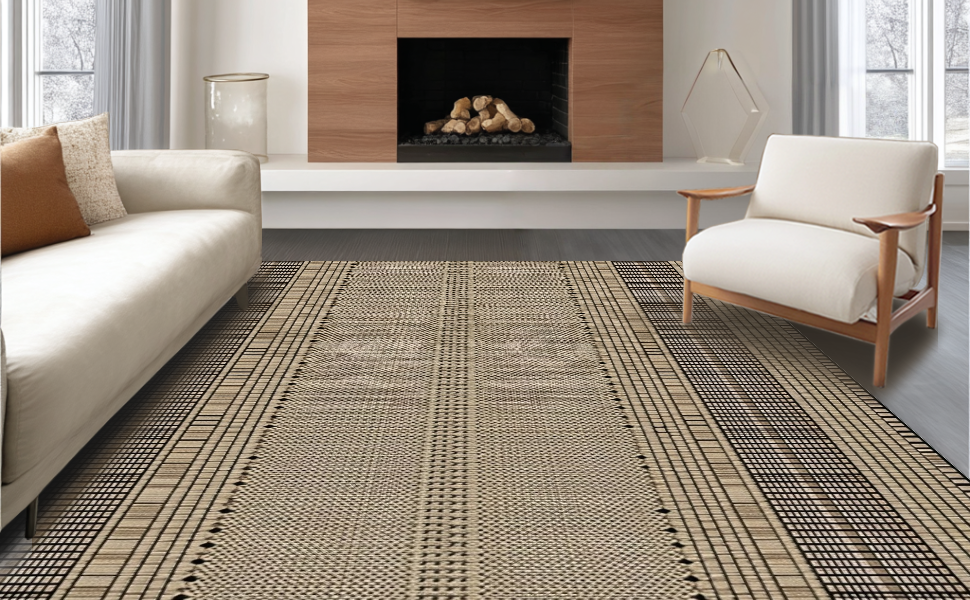 Ultra Soft Area Rug, Non Slip, Stain Resistant, Washable Area Rugs for Living Room, Bedroom, Chic Earth Tone Geometric Design(Beige) Overview: