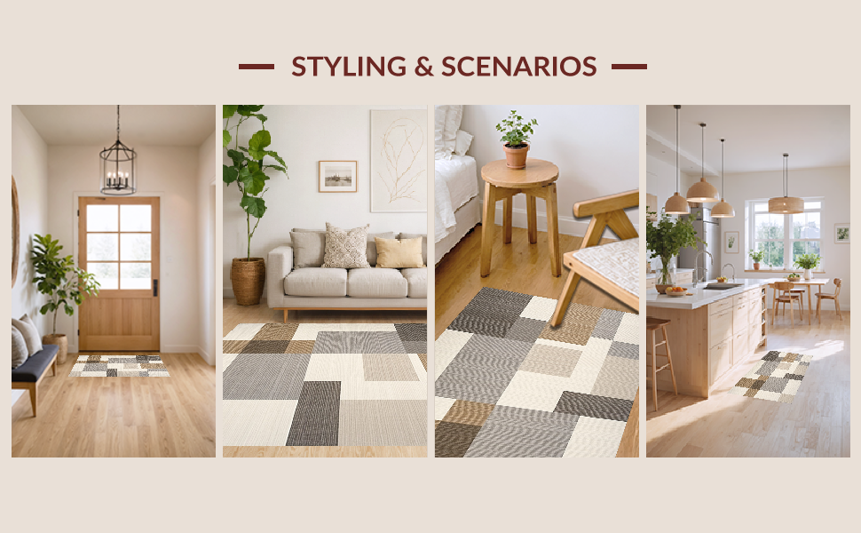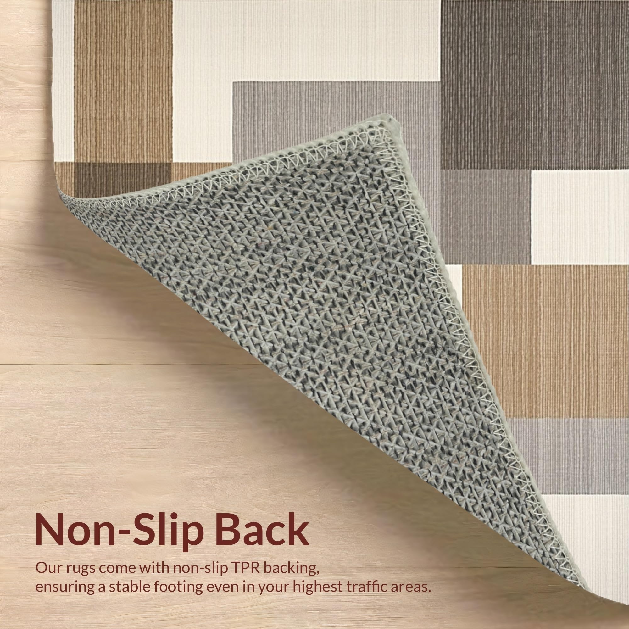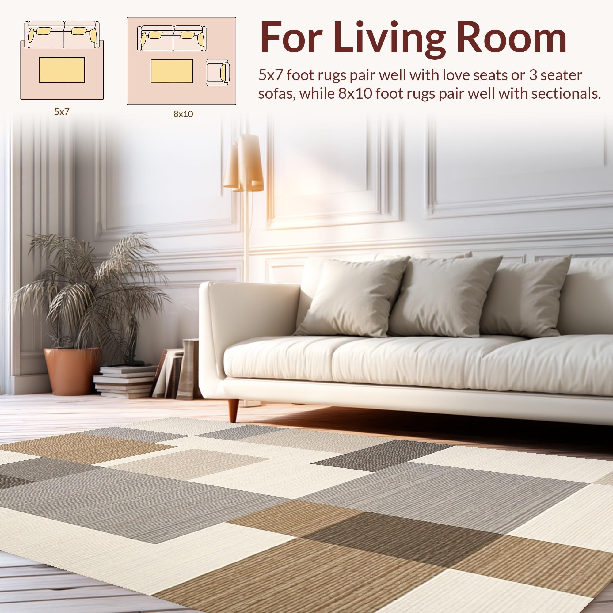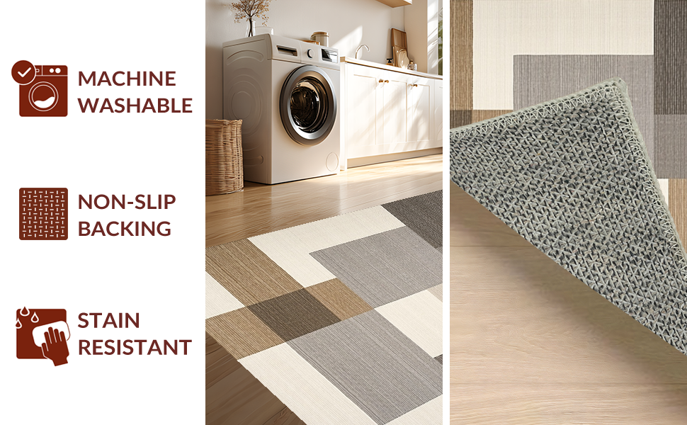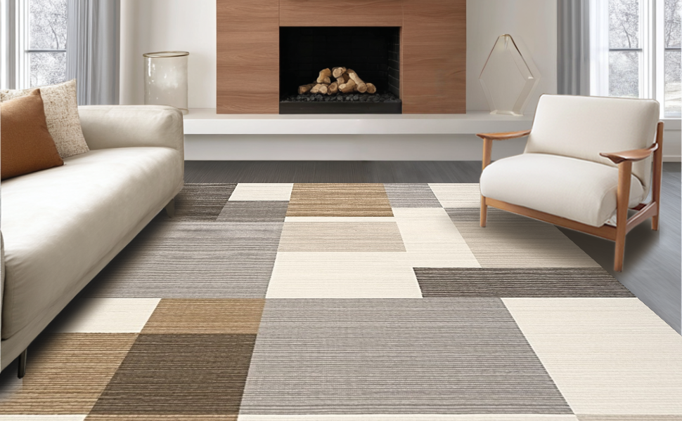 Ultra Soft Area Rug, Non Slip, Stain Resistant, Washable Area Rugs for Living Room, Bedroom, Chic Earth Tone Geometry(Beige) Overview: