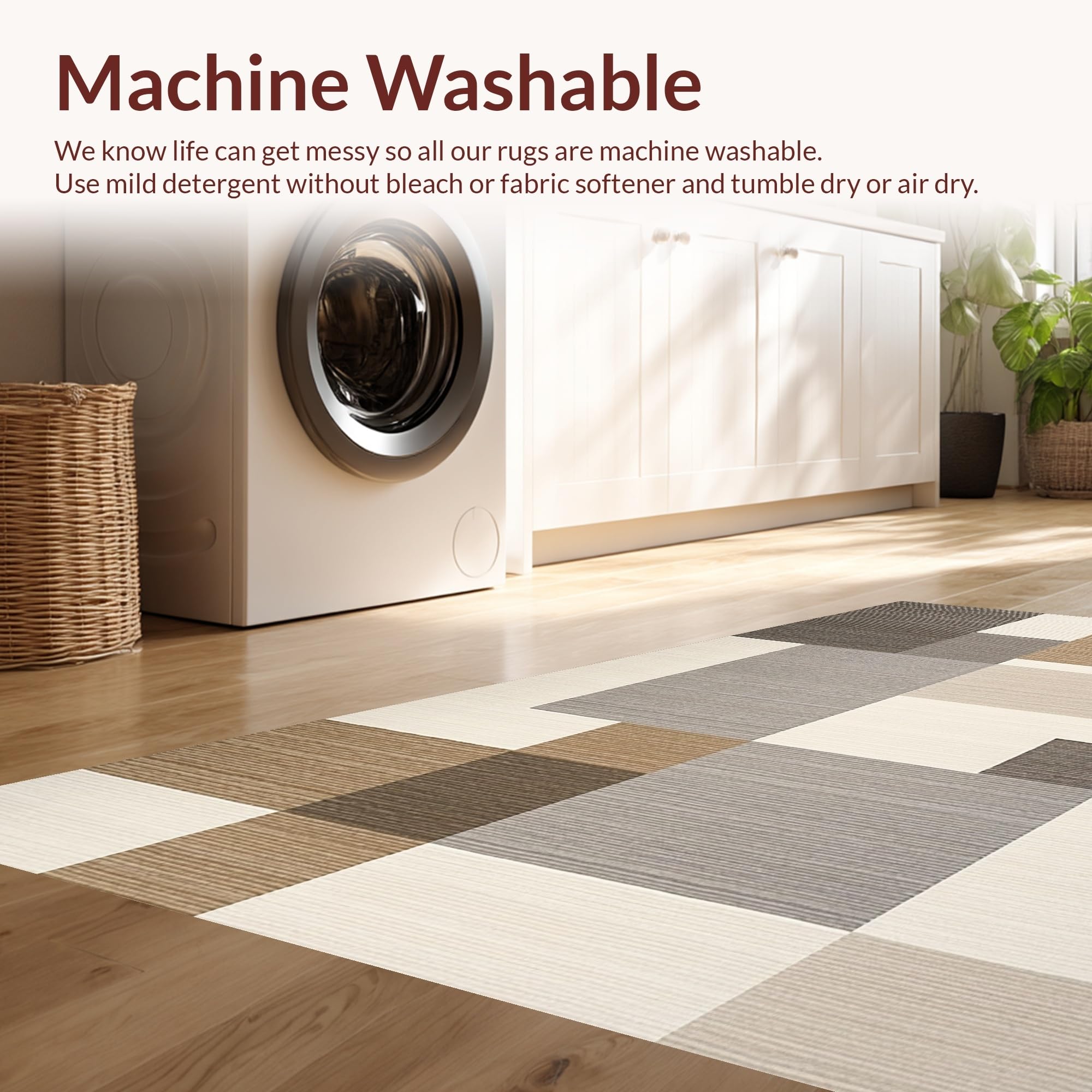 - Machine Washable: Our rugs can be easily thrown in the wash machine.