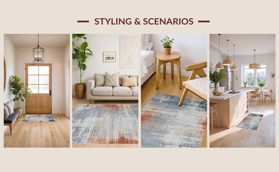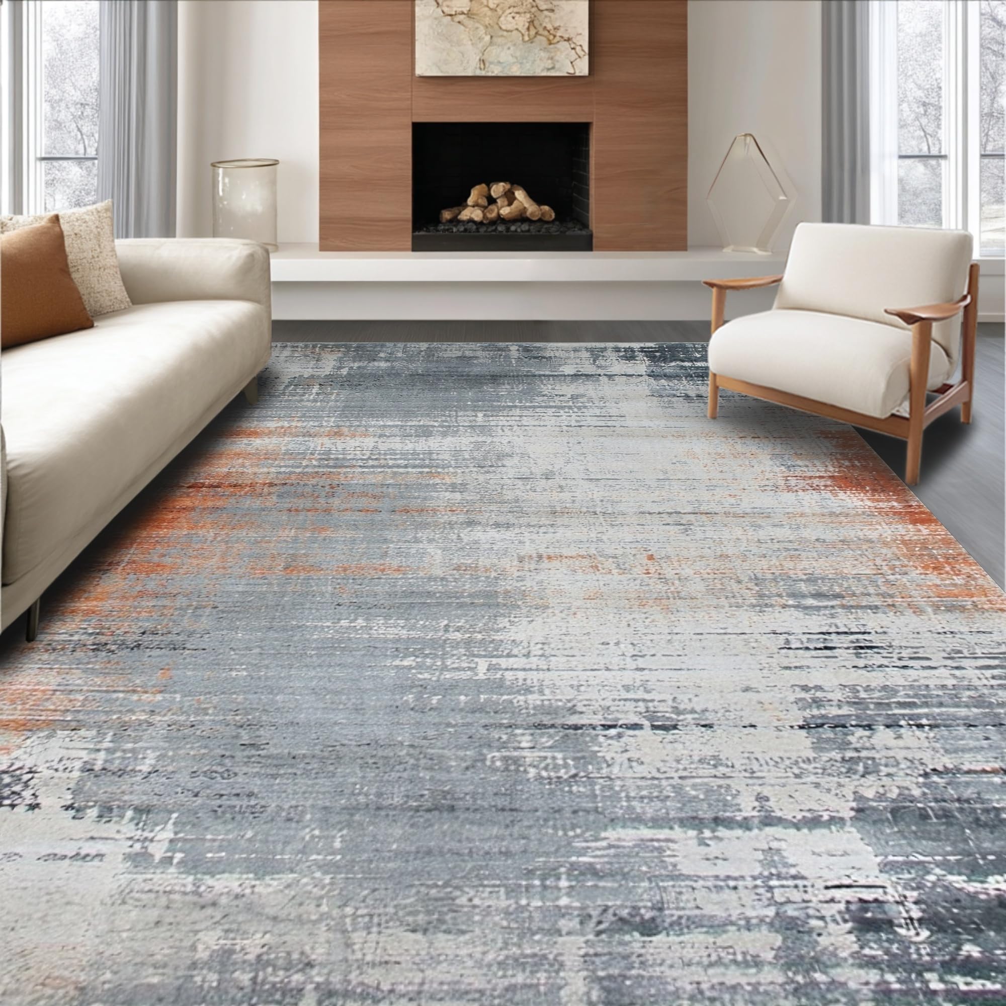 Ultra Soft Area Rug, Non Slip, Stain Resistant, Washable Area Rugs for Living Room, Bedroom, Chic Earth Tone Swirl Design(Gray) Overview: