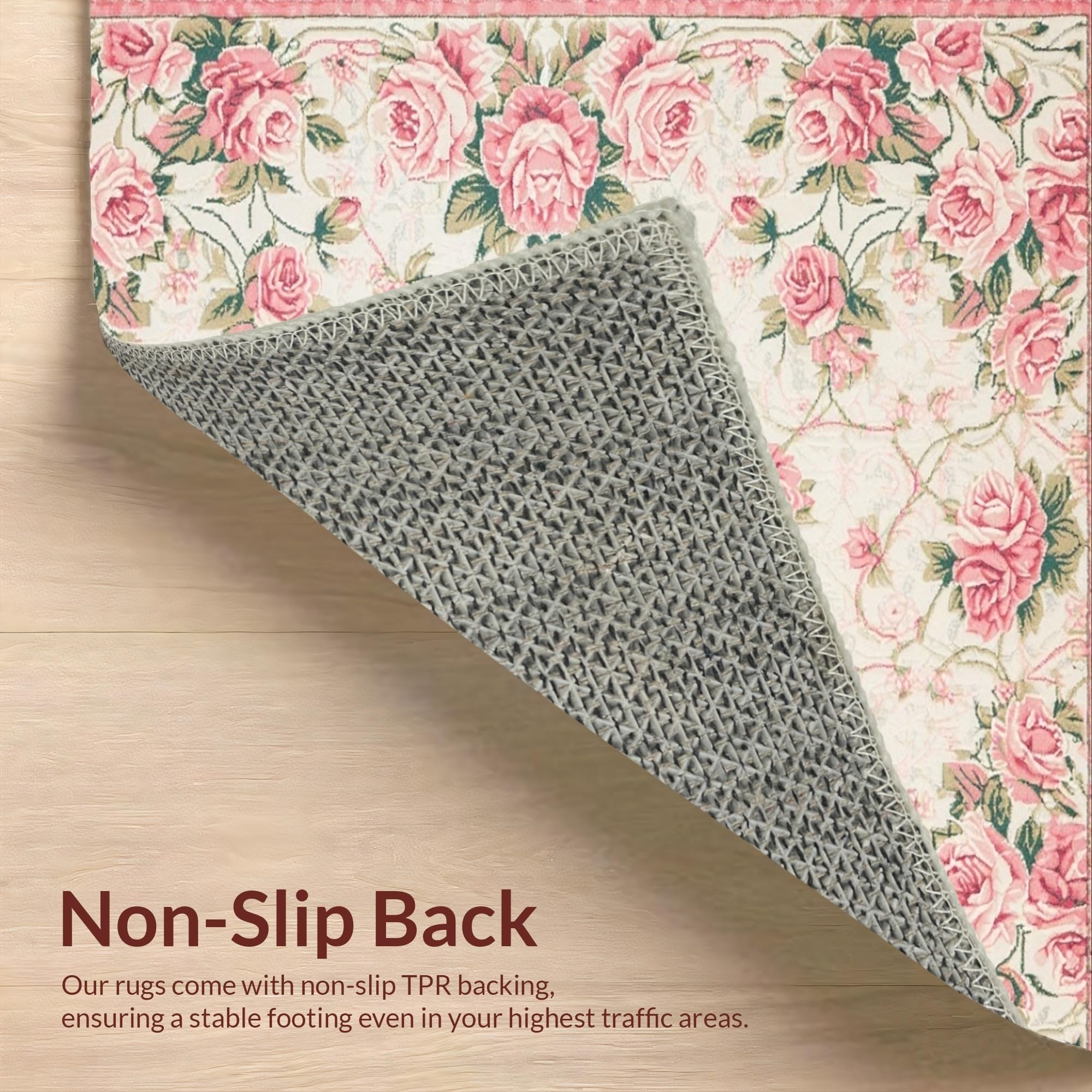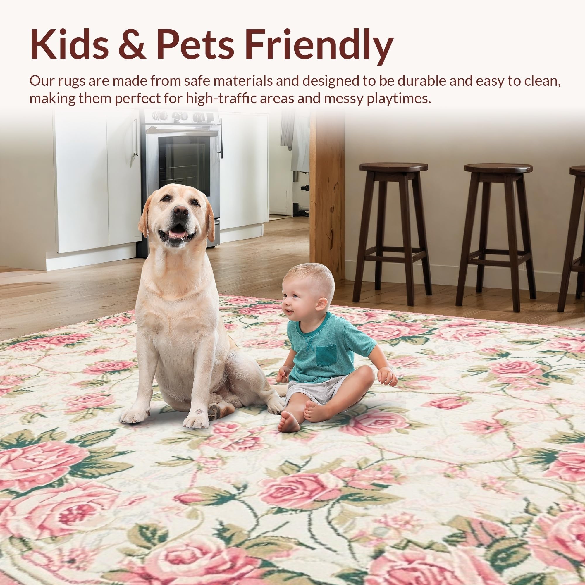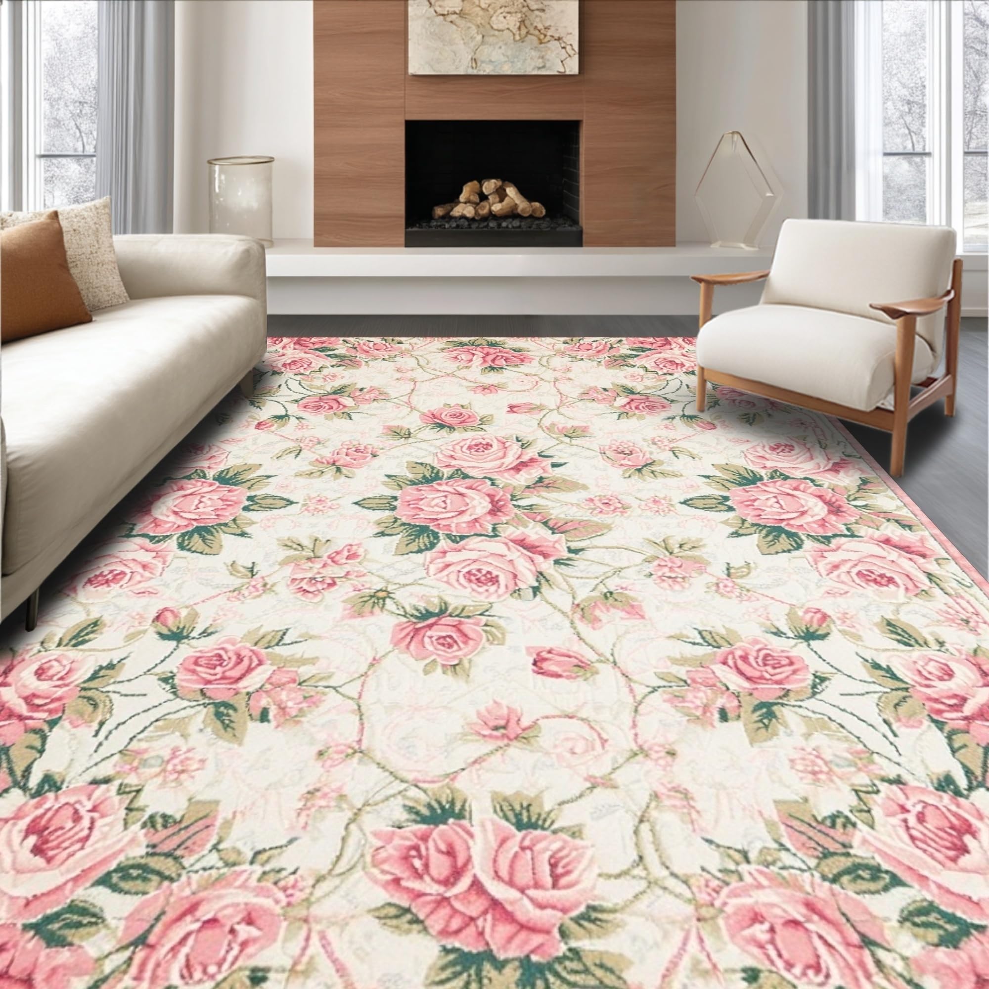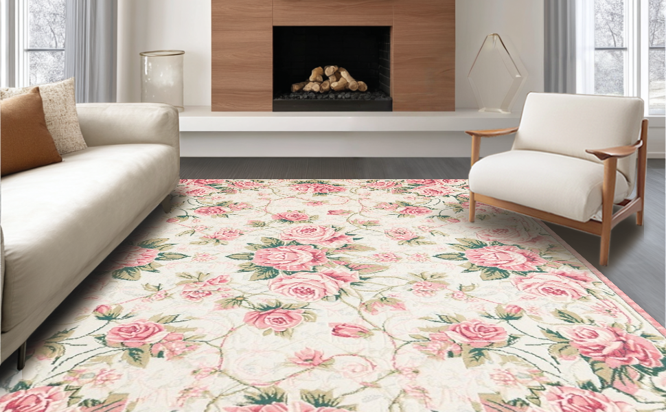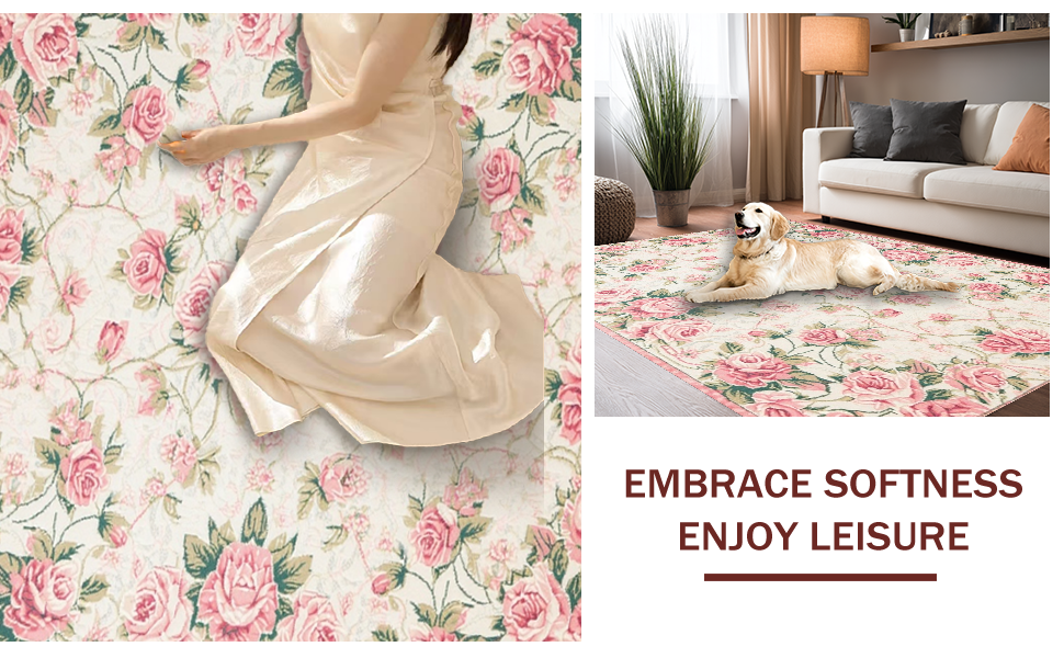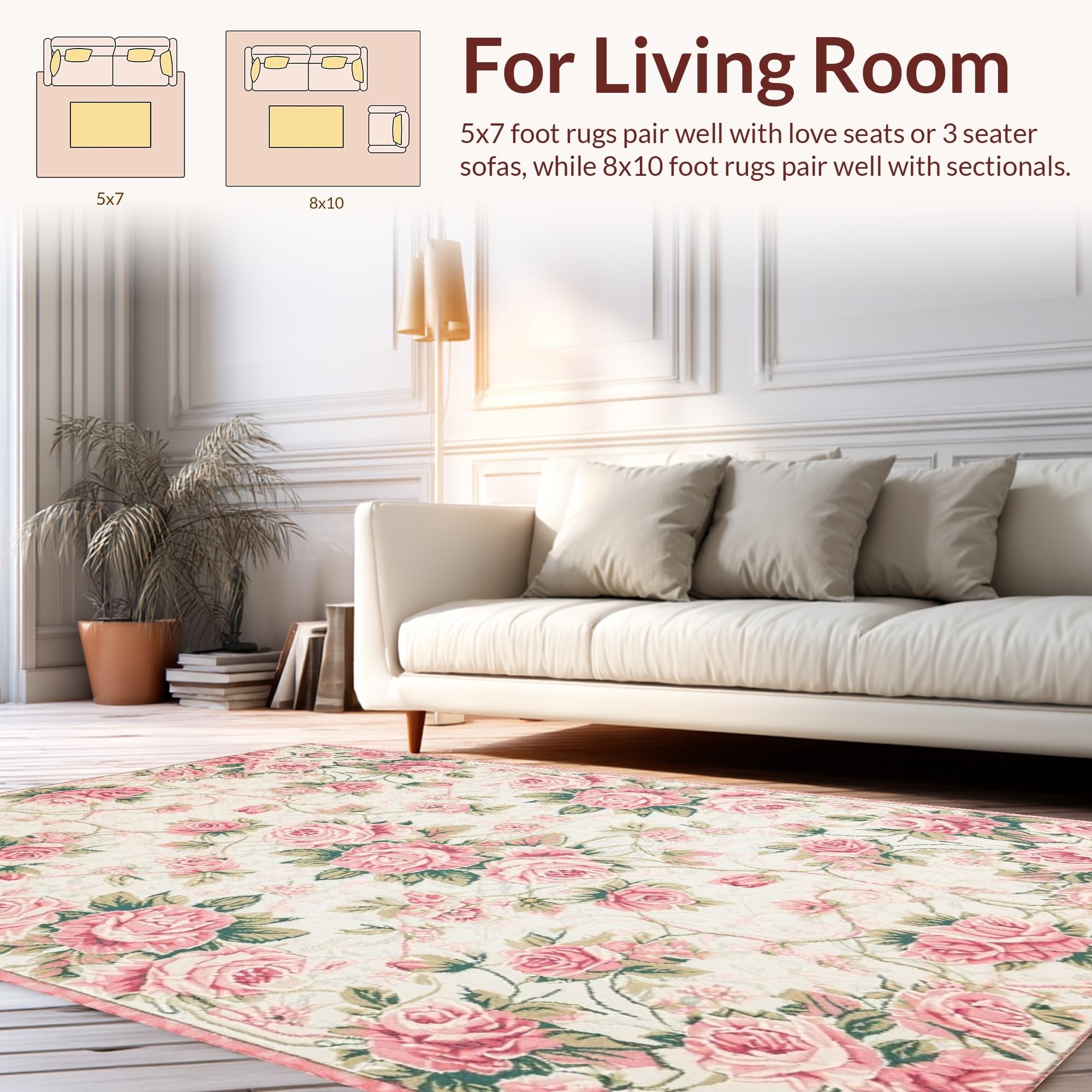 Ultra Soft Area Rug, Non Slip, Stain Resistant, Washable Area Rugs for Living Room, Bedroom, Chic Earthy Floral Accents(Ivory) Overview: