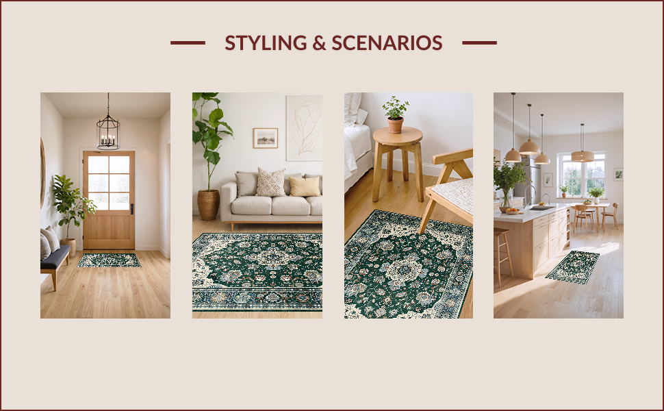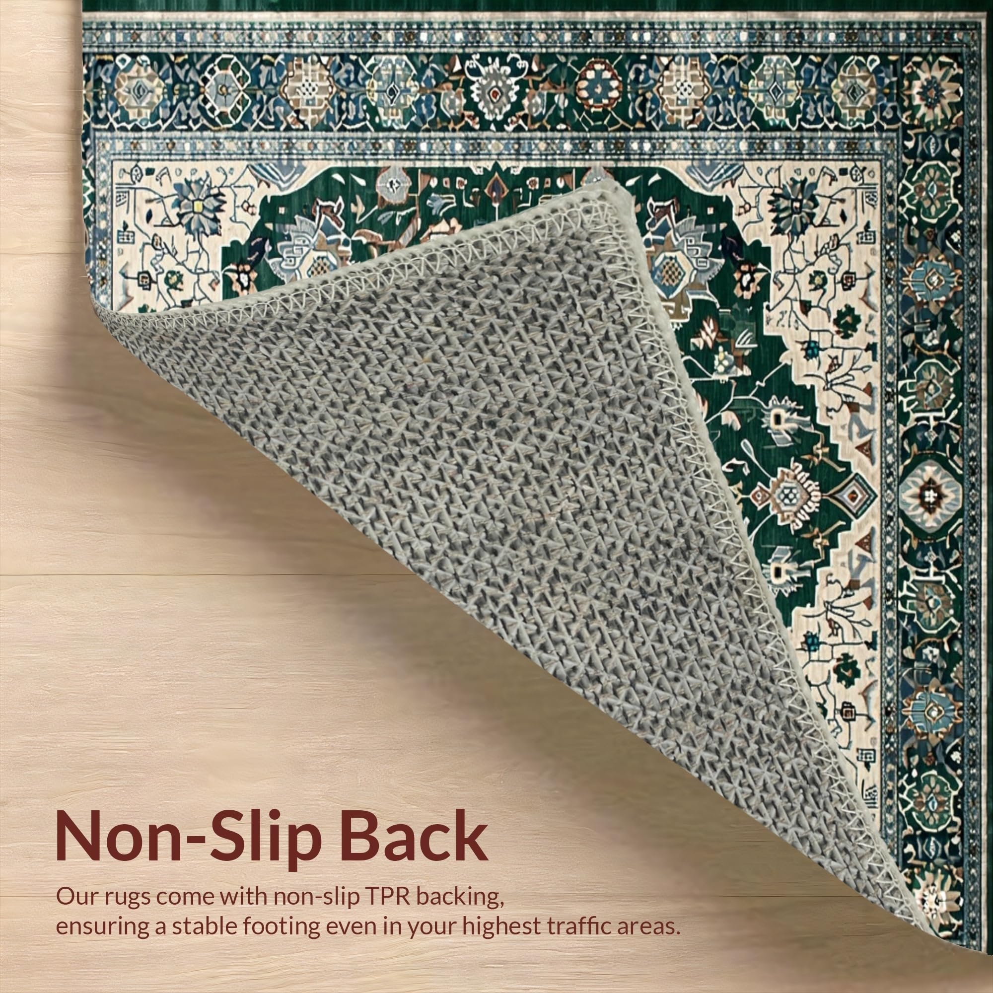 Ultra Soft Area Rug, Non Slip, Stain Resistant, Washable Area Rugs for Living Room, Bedroom, Chic Earthy Tones Abstract Motif(Green) Overview:
