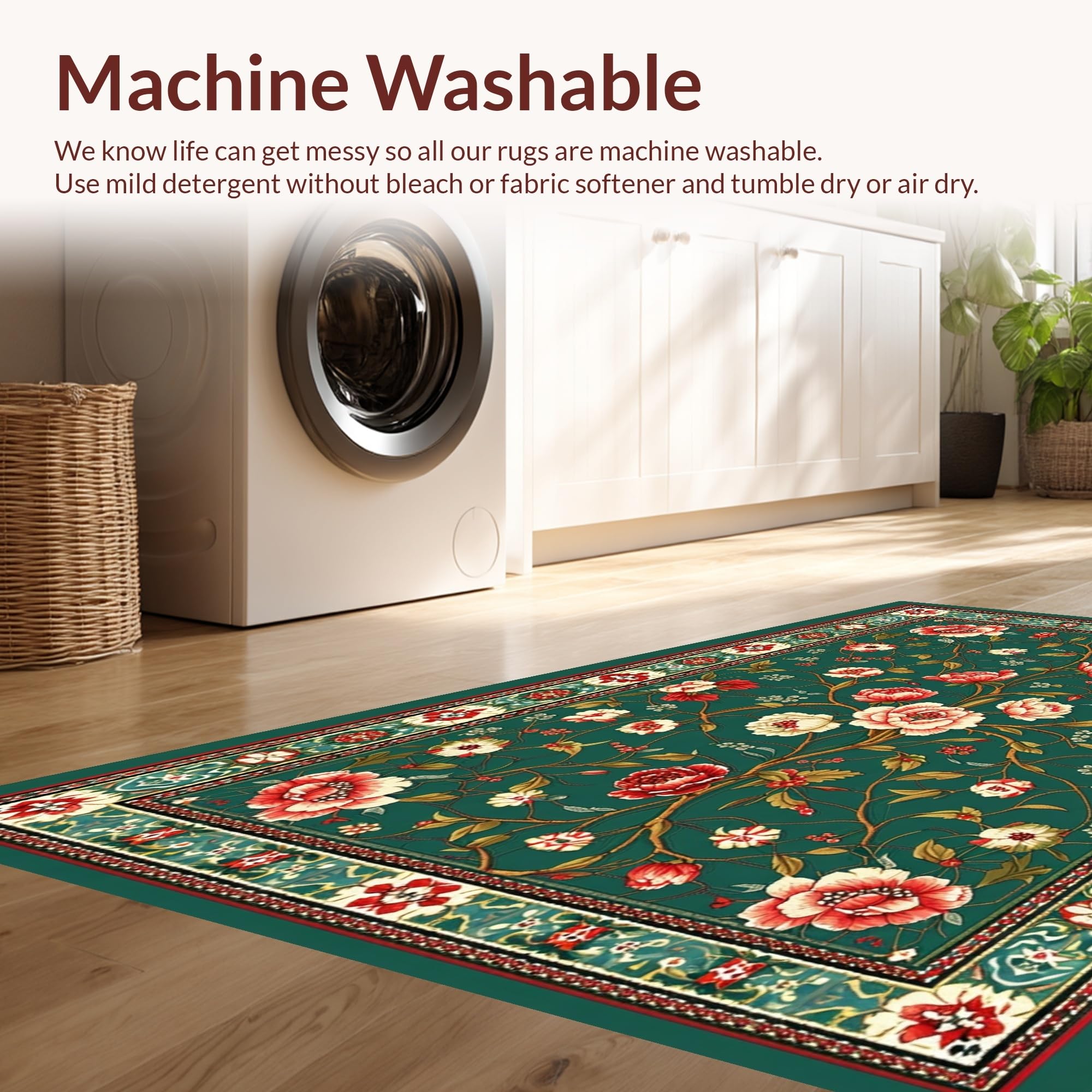 - Machine Washable: Our rugs can be easily thrown in the wash machine.