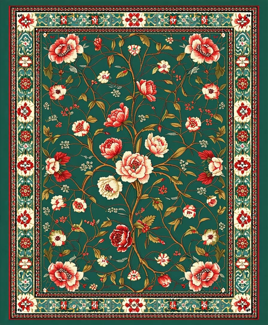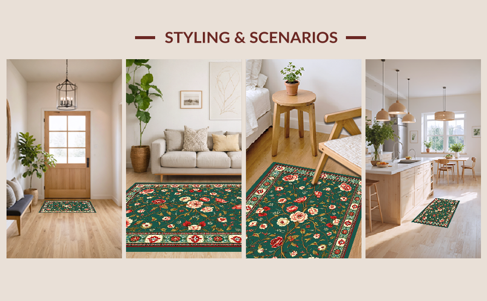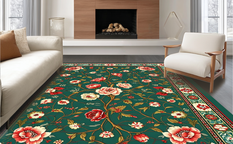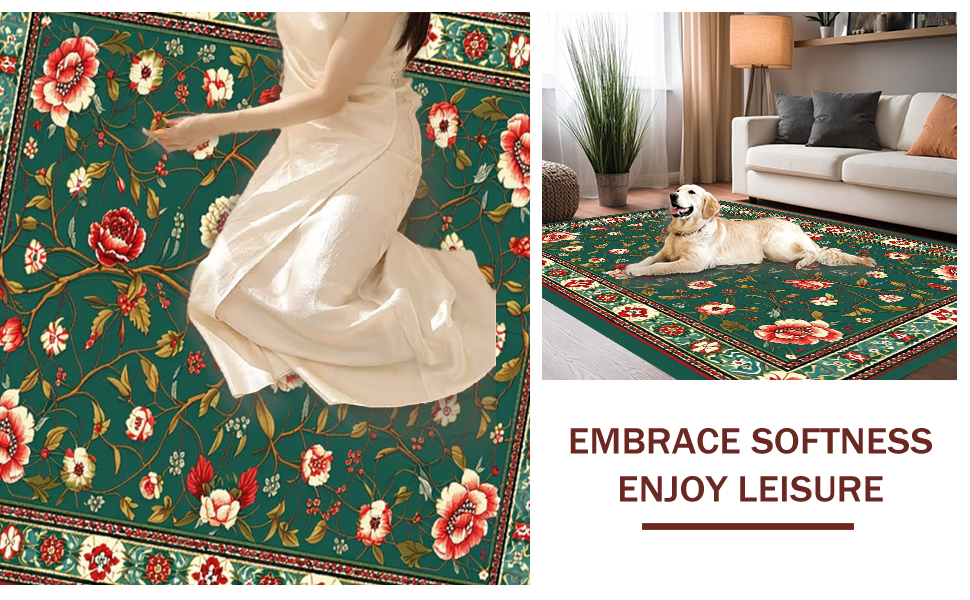 Ultra Soft Area Rug, Non Slip, Stain Resistant, Washable Area Rugs for Living Room, Bedroom, Chic Earthy Tones Nature Design(Green) Overview: