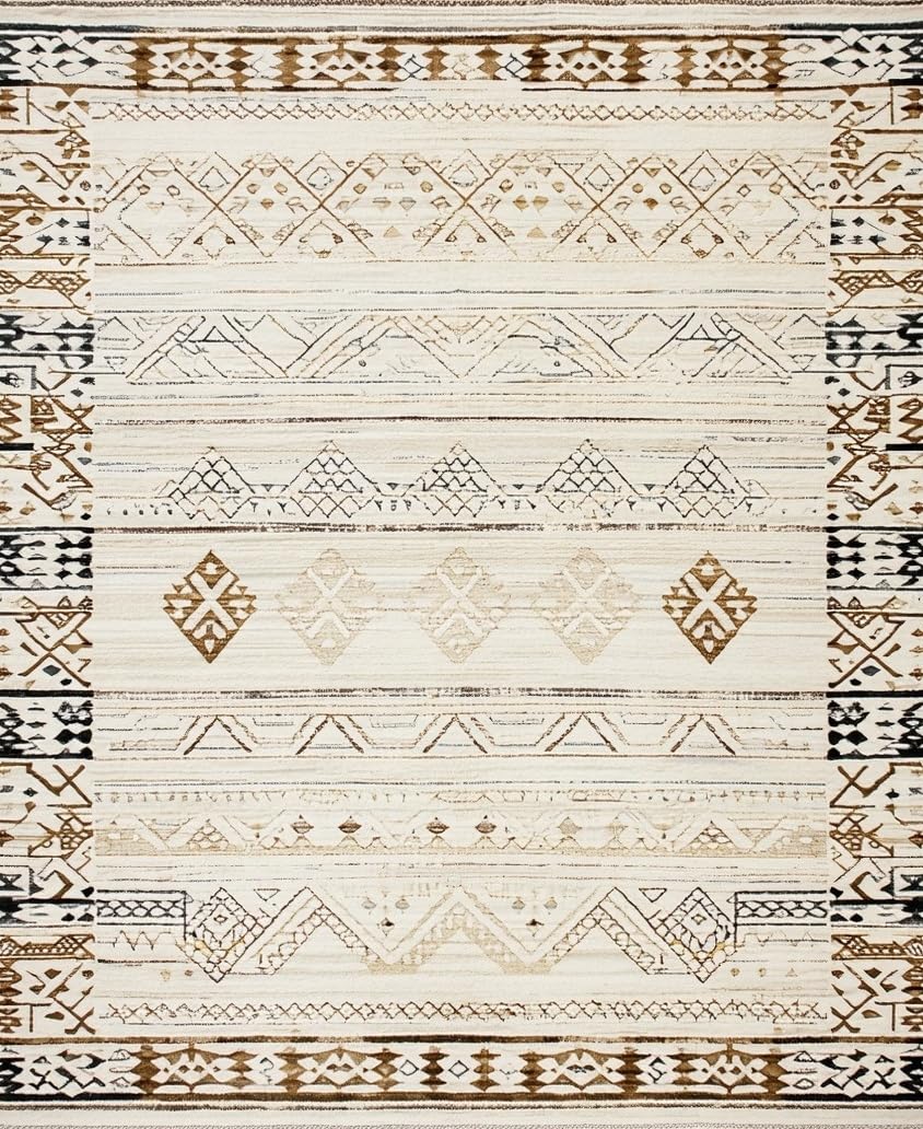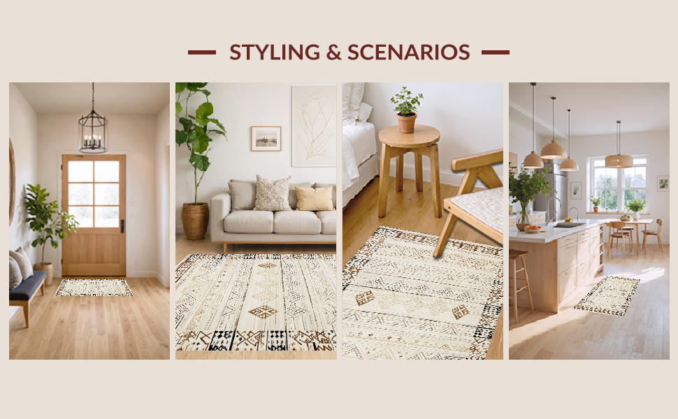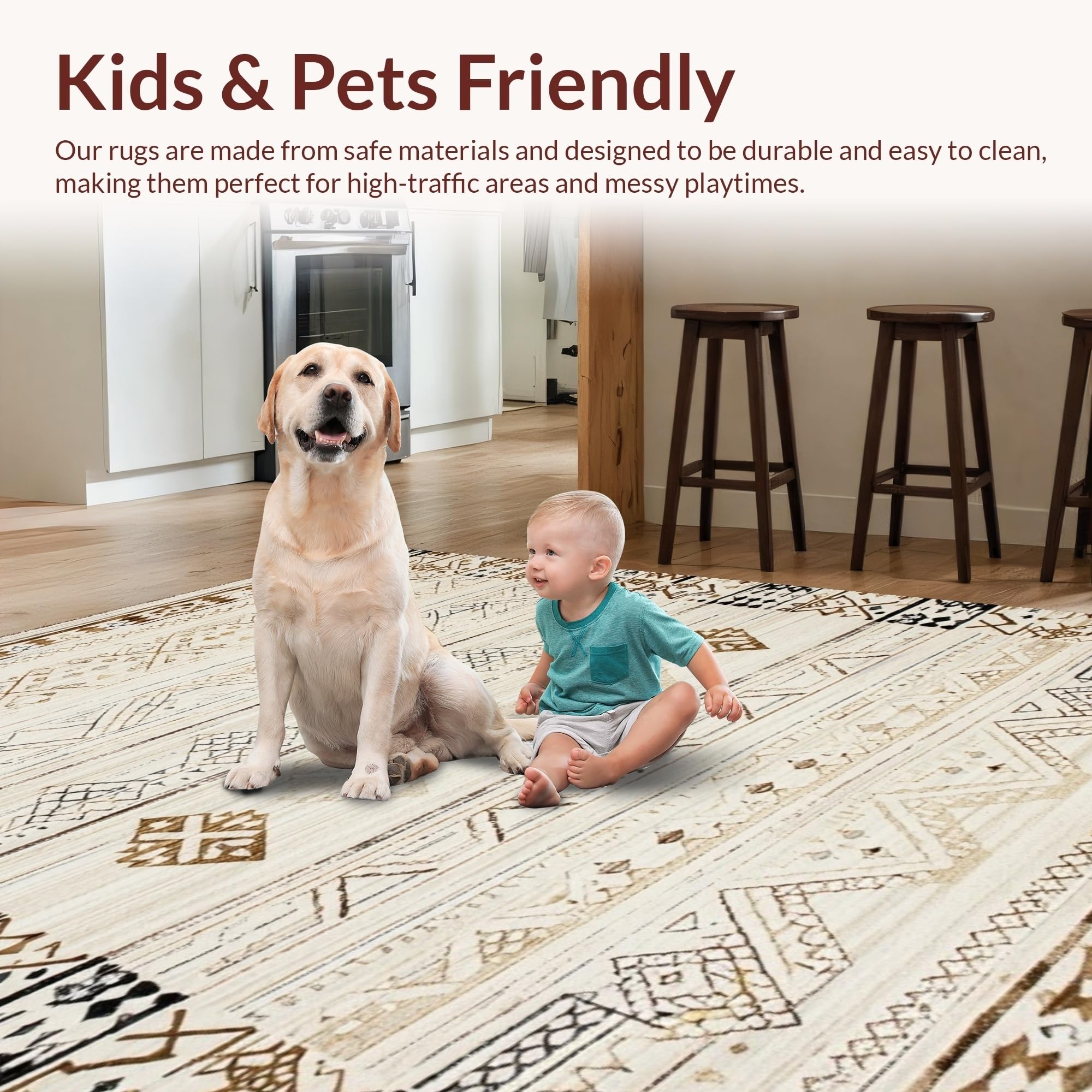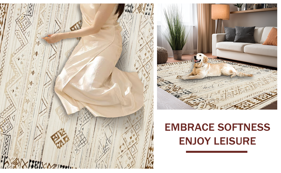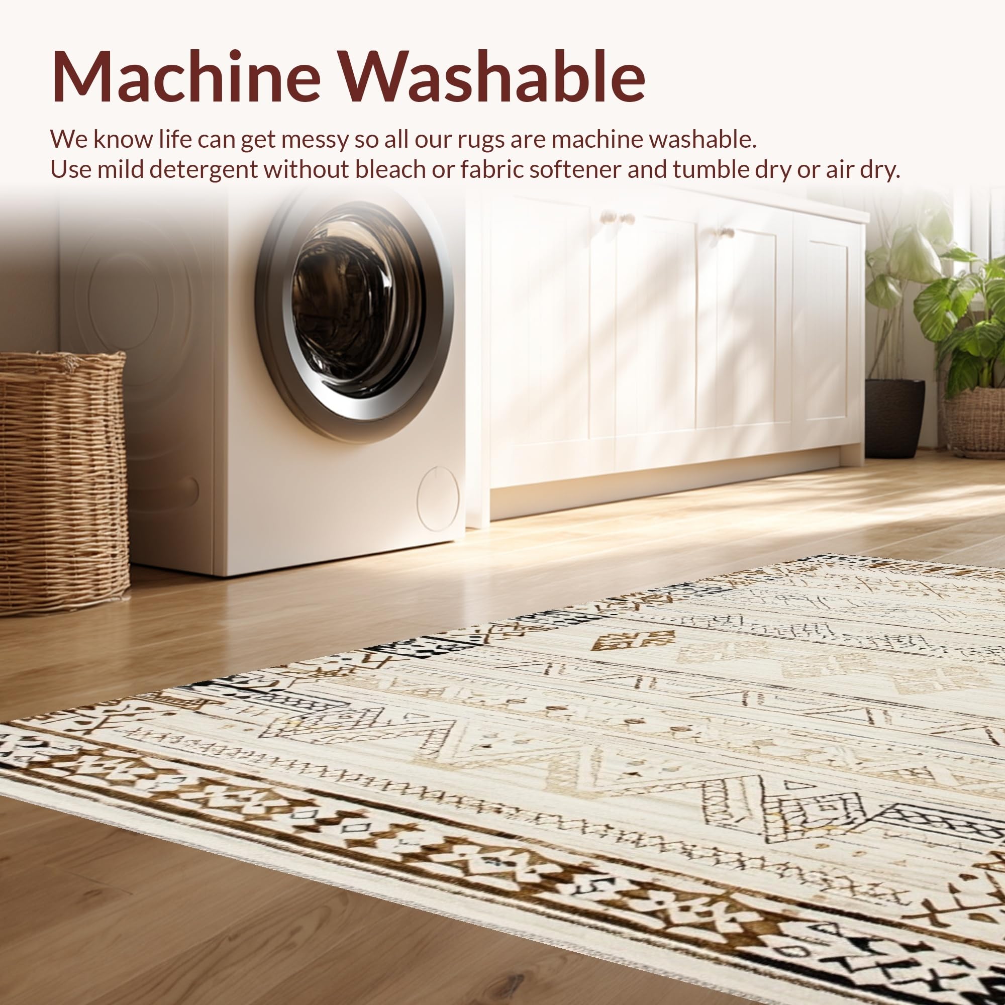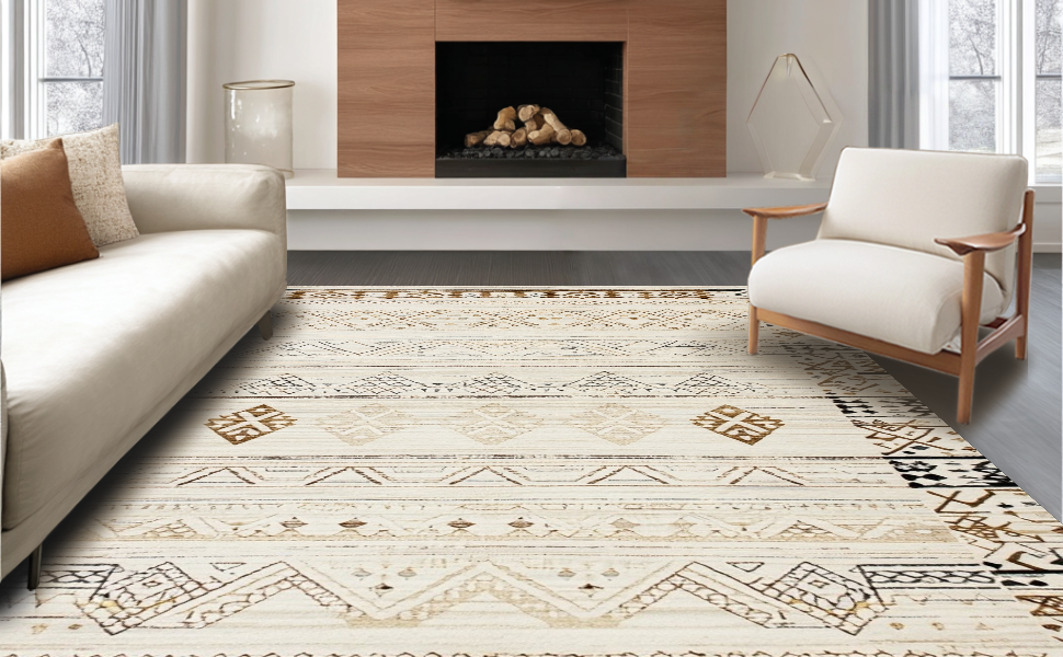 Ultra Soft Area Rug, Non Slip, Stain Resistant, Washable Area Rugs for Living Room, Bedroom, Chic Ethnic Diamond Motif(Beige) Overview: