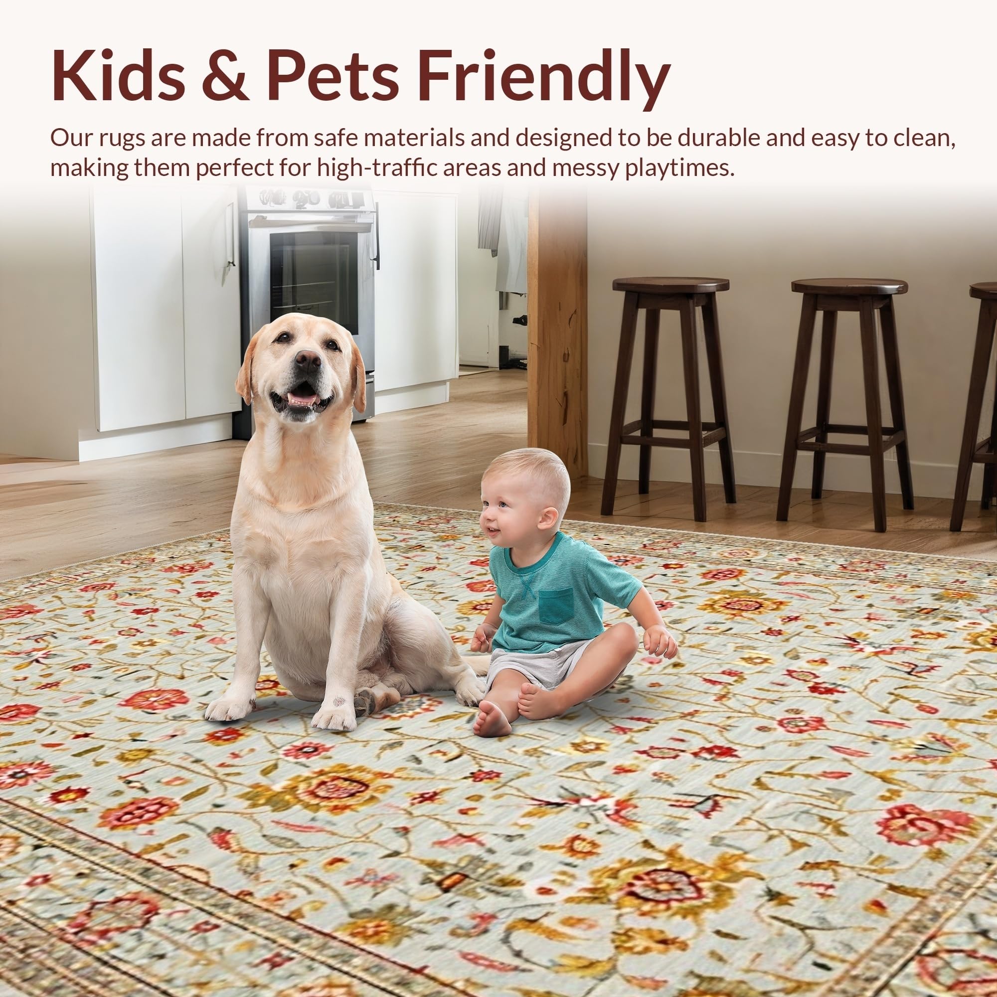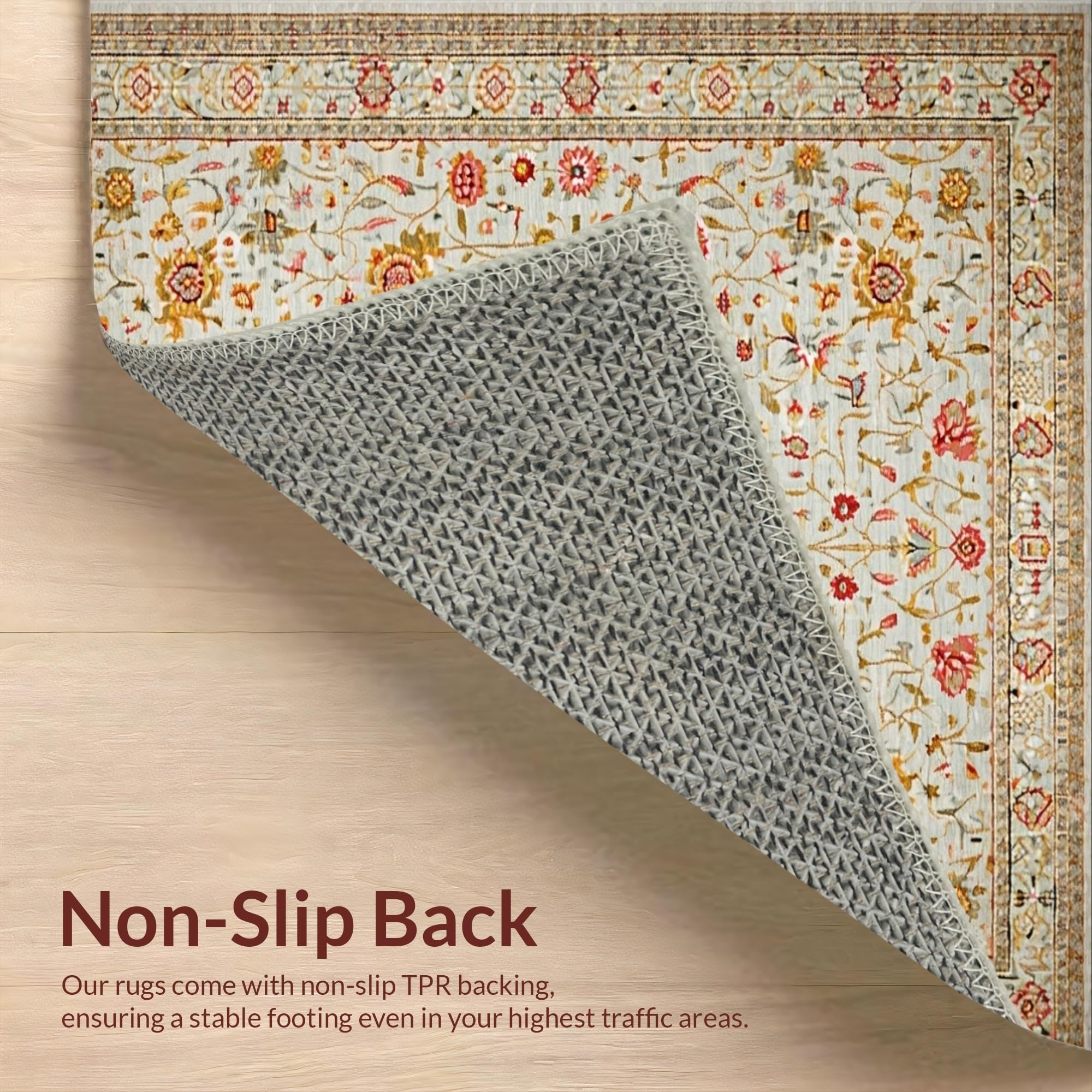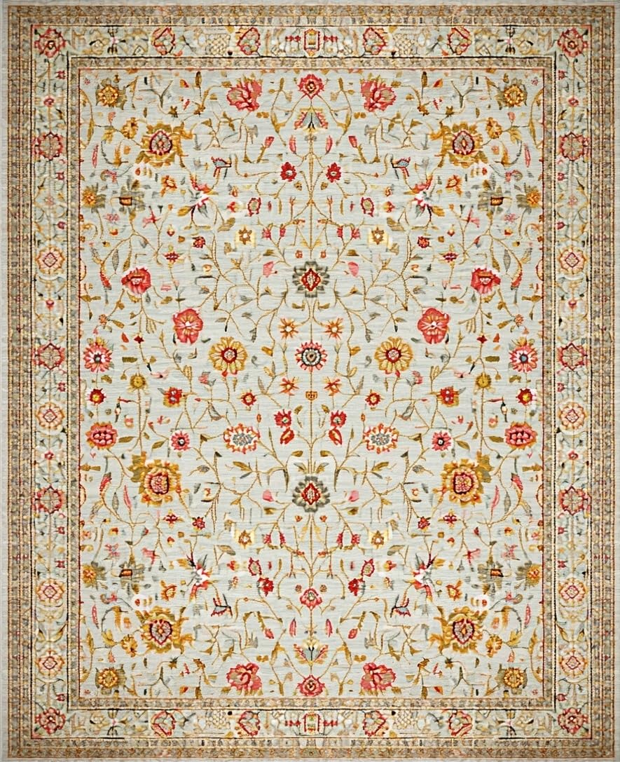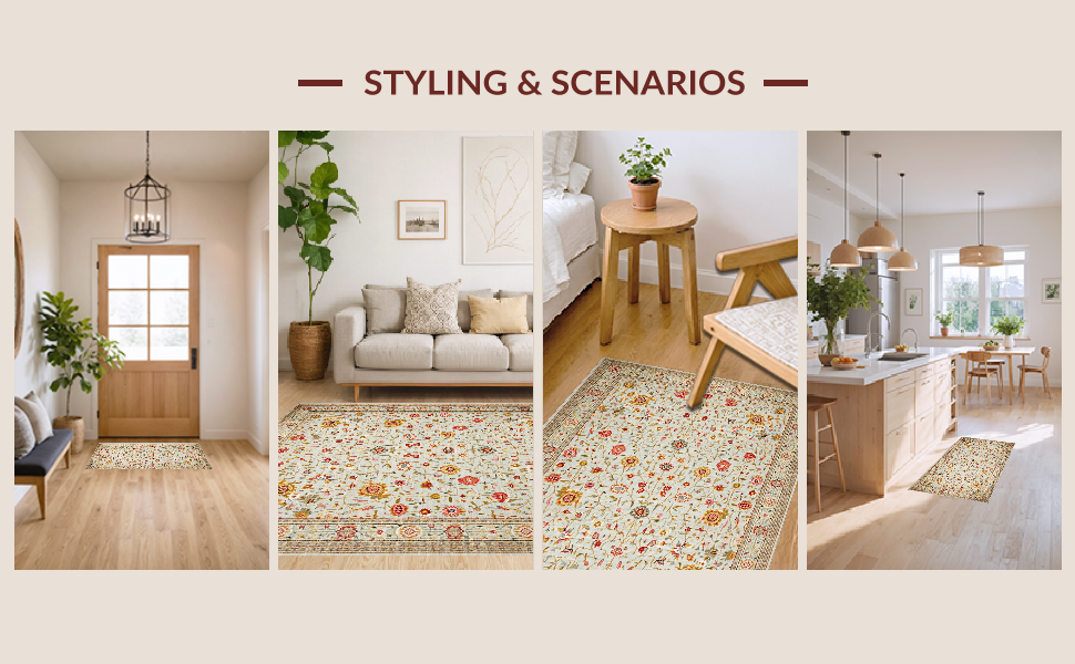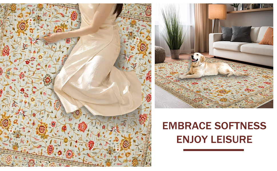 Ultra Soft Area Rug, Non Slip, Stain Resistant, Washable Area Rugs for Living Room, Bedroom, Chic Floral Earthy Palette(Ivory) Overview: