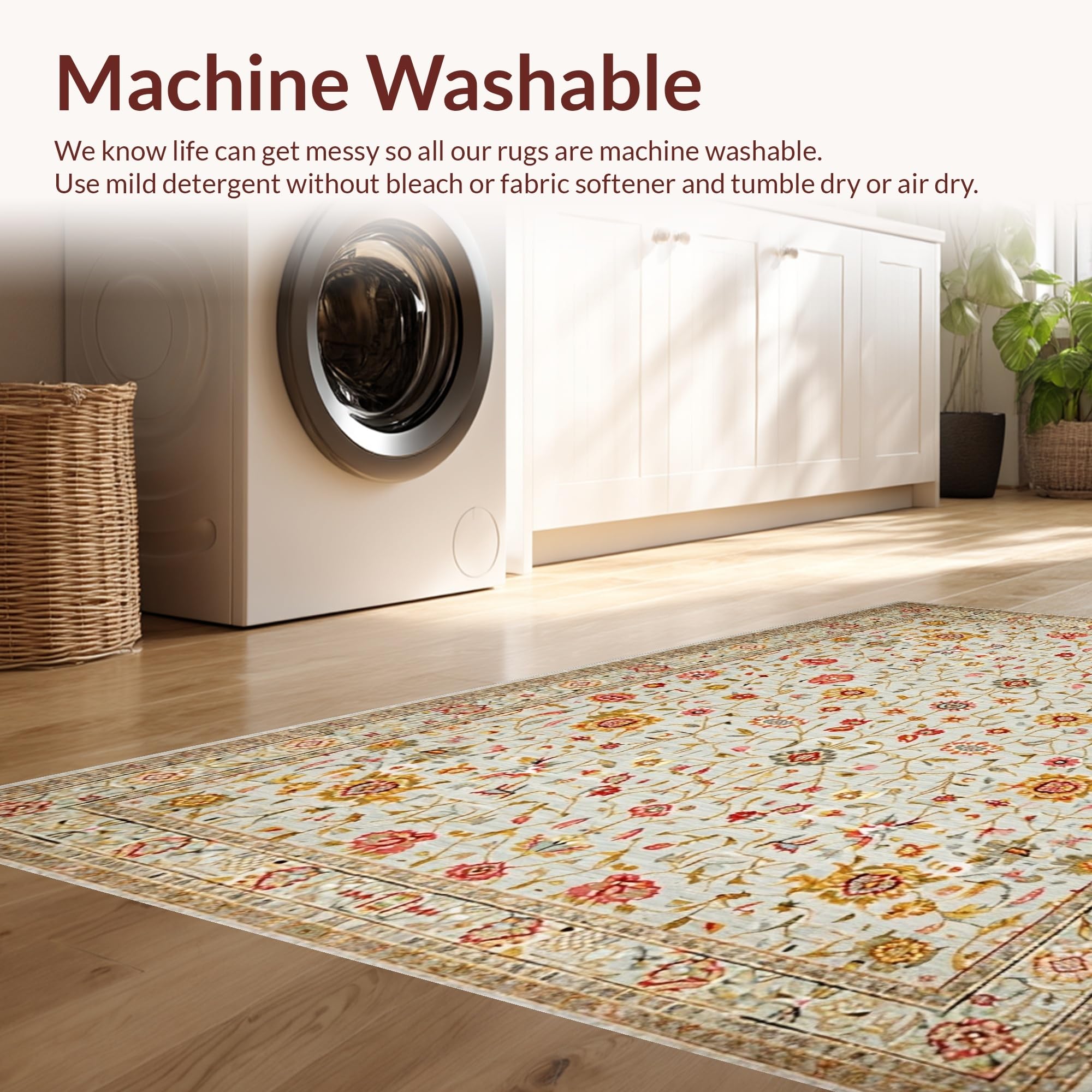 - Machine Washable: Our rugs can be easily thrown in the wash machine.