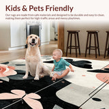 Ultra Soft Area Rug, Non Slip, Stain Resistant, Washable Area Rugs for Living Room, Bedroom, Chic Flower Fantasy Area with Abstract Insect Silhouettes and Boho Flourish(Gray) Overview: