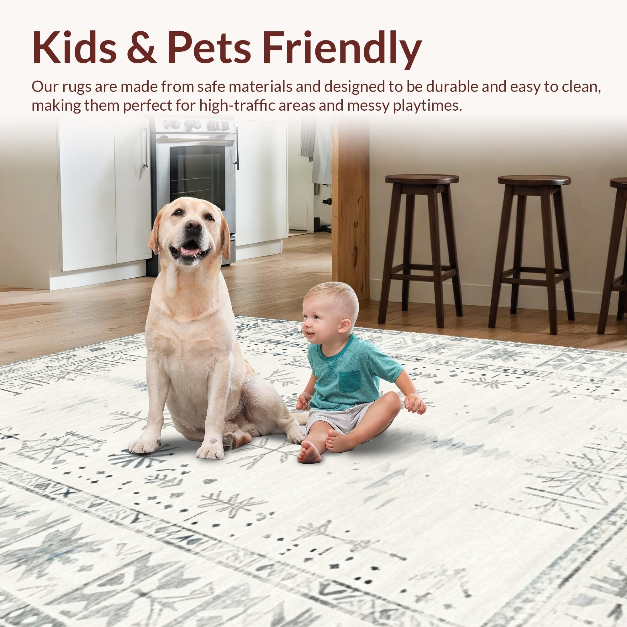 Ultra Soft Area Rug, Non Slip, Stain Resistant, Washable Area Rugs for Living Room, Bedroom, Chic Fluffy Textured Layered Design(Gray) Overview: