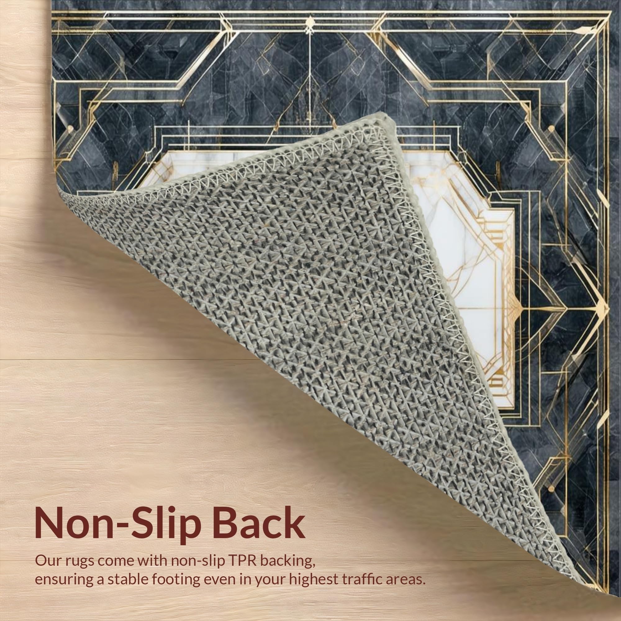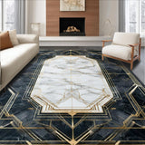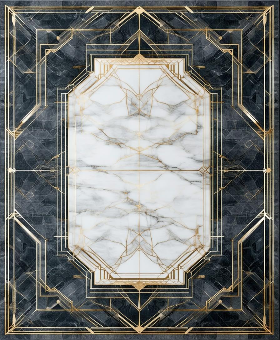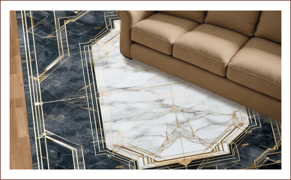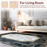 Ultra Soft Area Rug, Non Slip, Stain Resistant, Washable Area Rugs for Living Room, Bedroom, Chic Geometric Gold Accents Style(White) Overview: