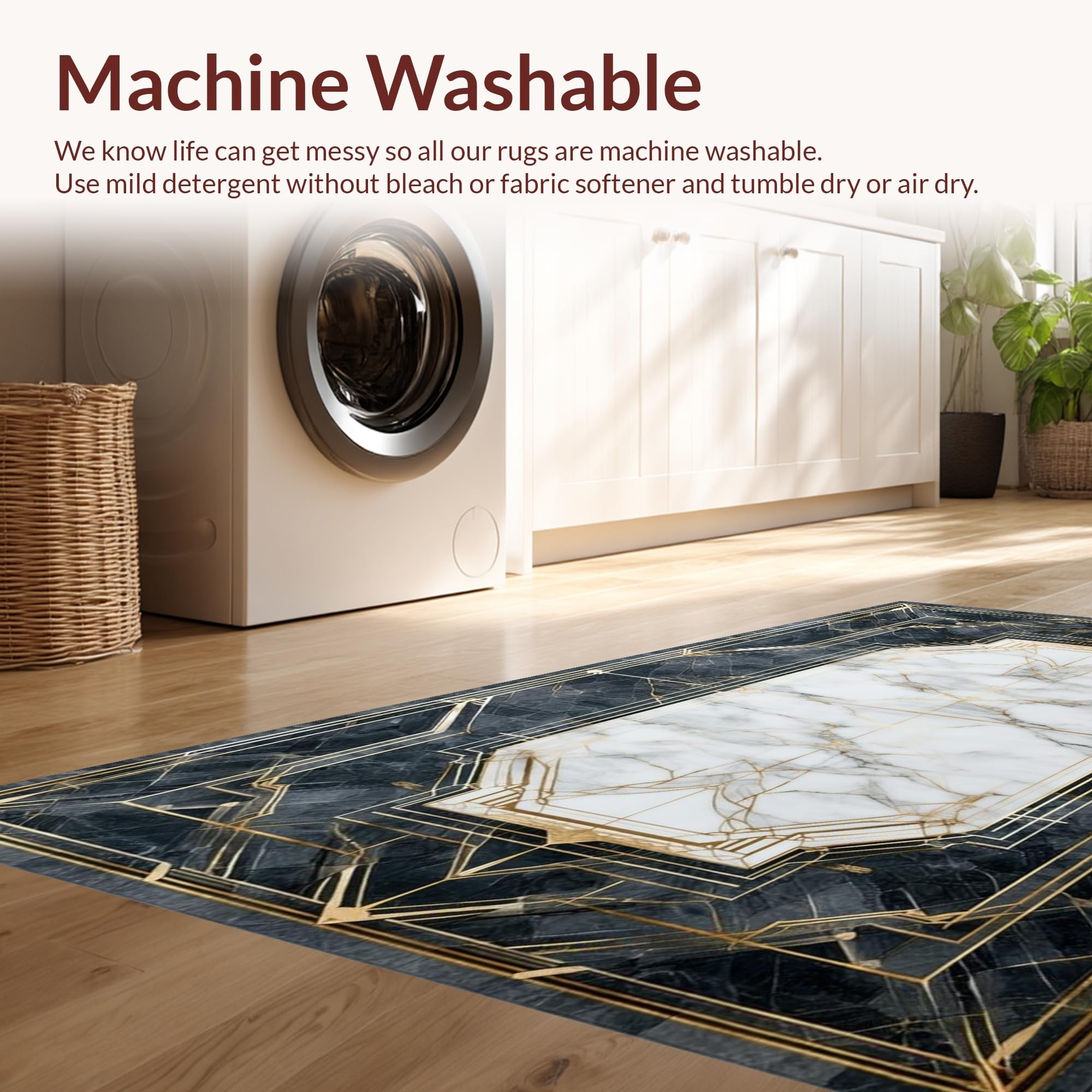 - Machine Washable: Our rugs can be easily thrown in the wash machine.