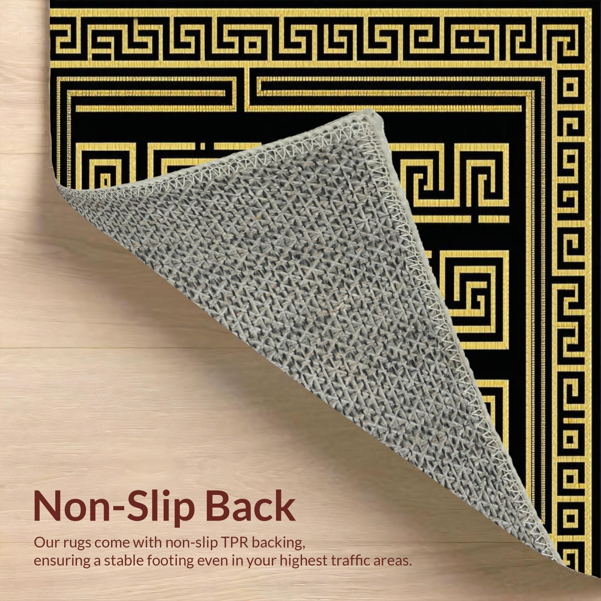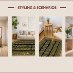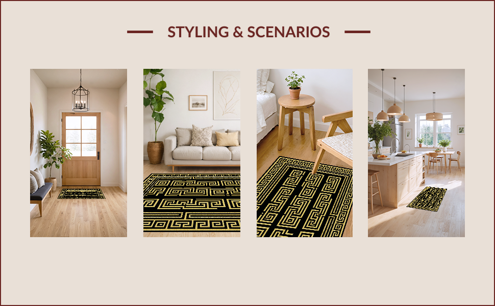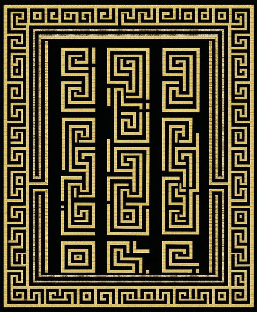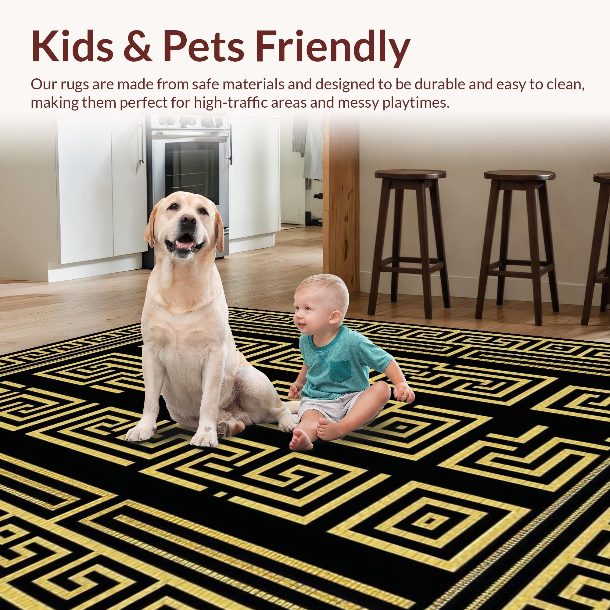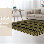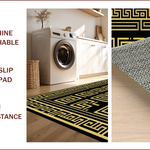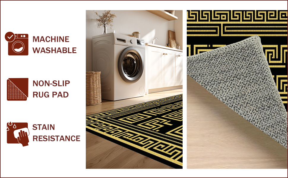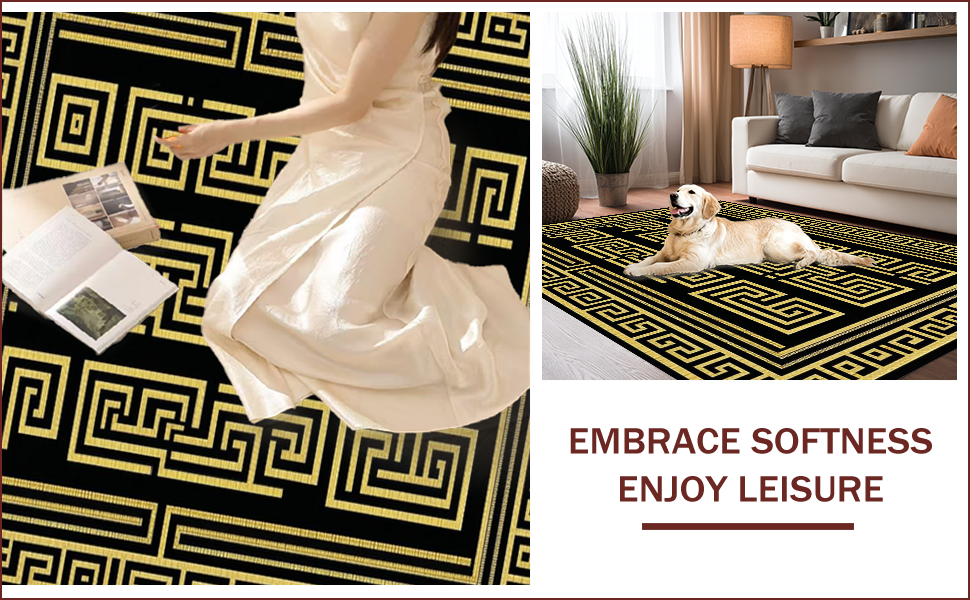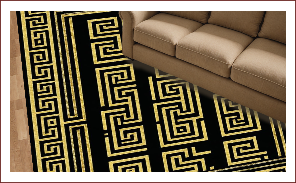 Ultra Soft Area Rug, Non Slip, Stain Resistant, Washable Area Rugs for Living Room, Bedroom, Chic Geometric Gold Accents(Black) Overview: