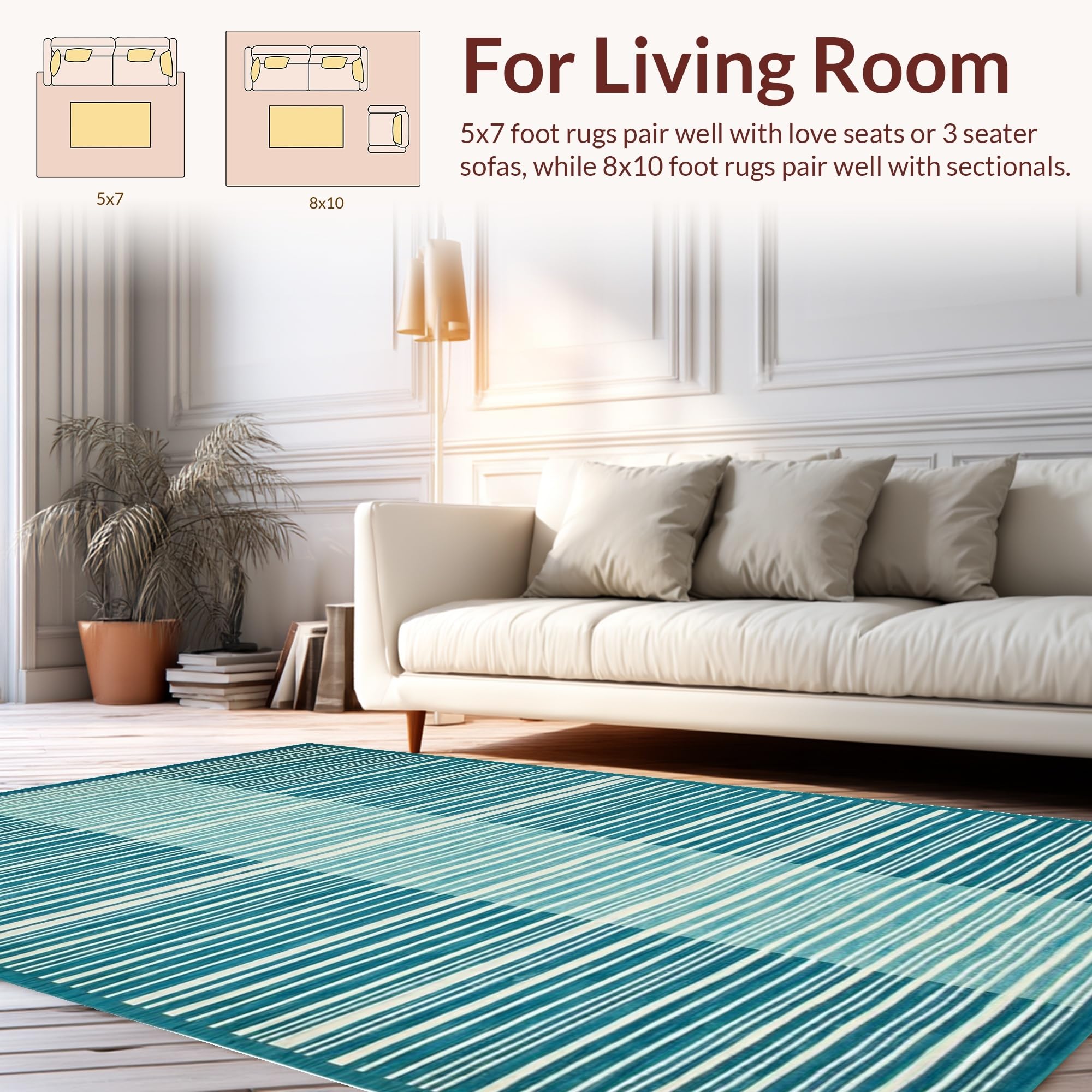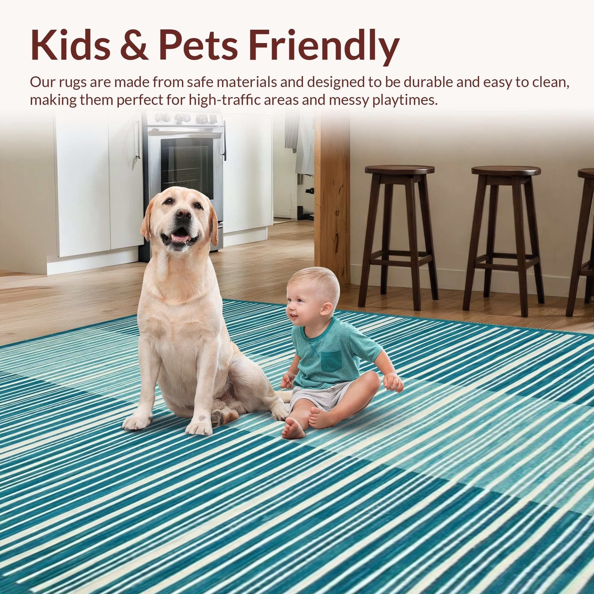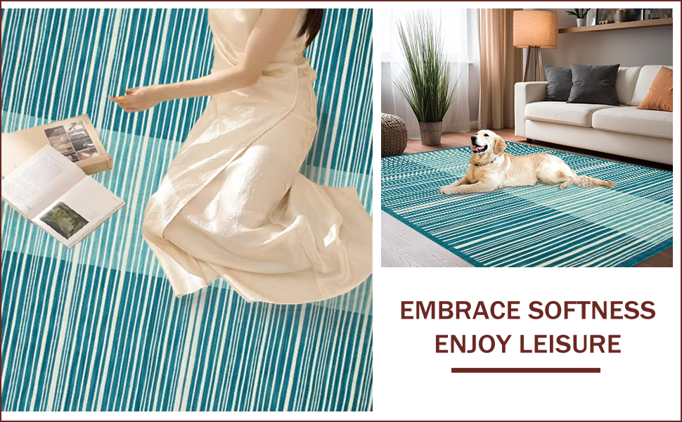 Ultra Soft Area Rug, Non Slip, Stain Resistant, Washable Area Rugs for Living Room, Bedroom, Chic Geometric Soft Plush Aesthetic(Blue) Overview: