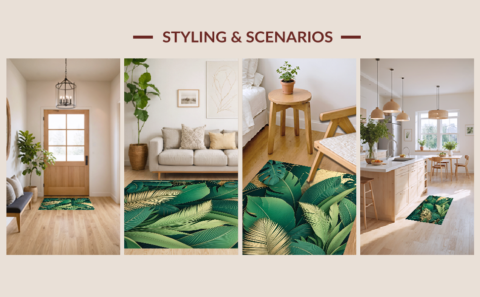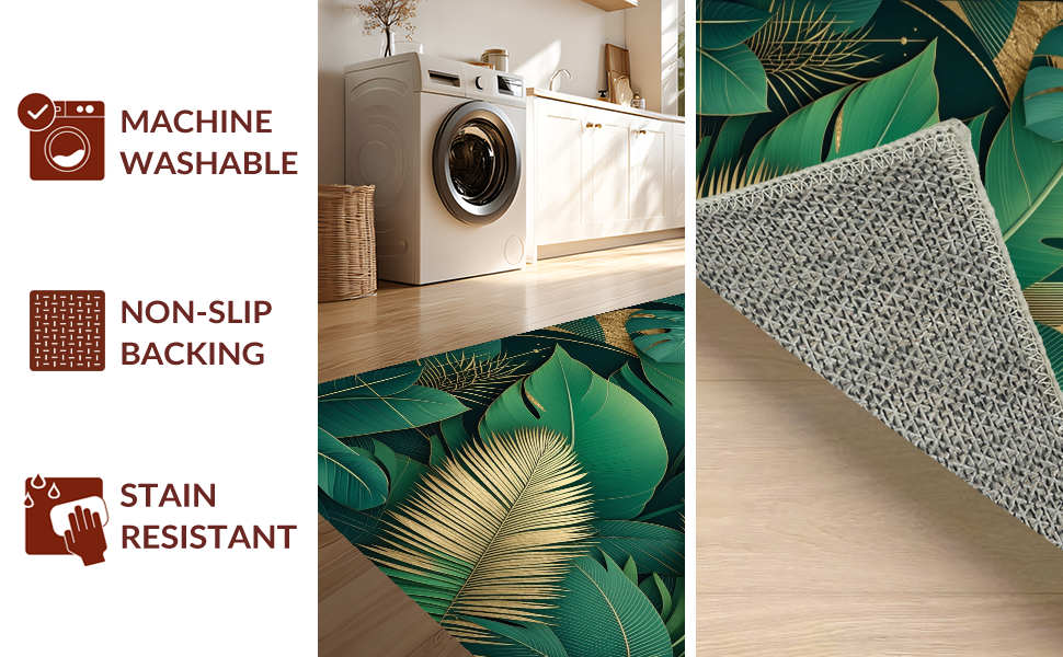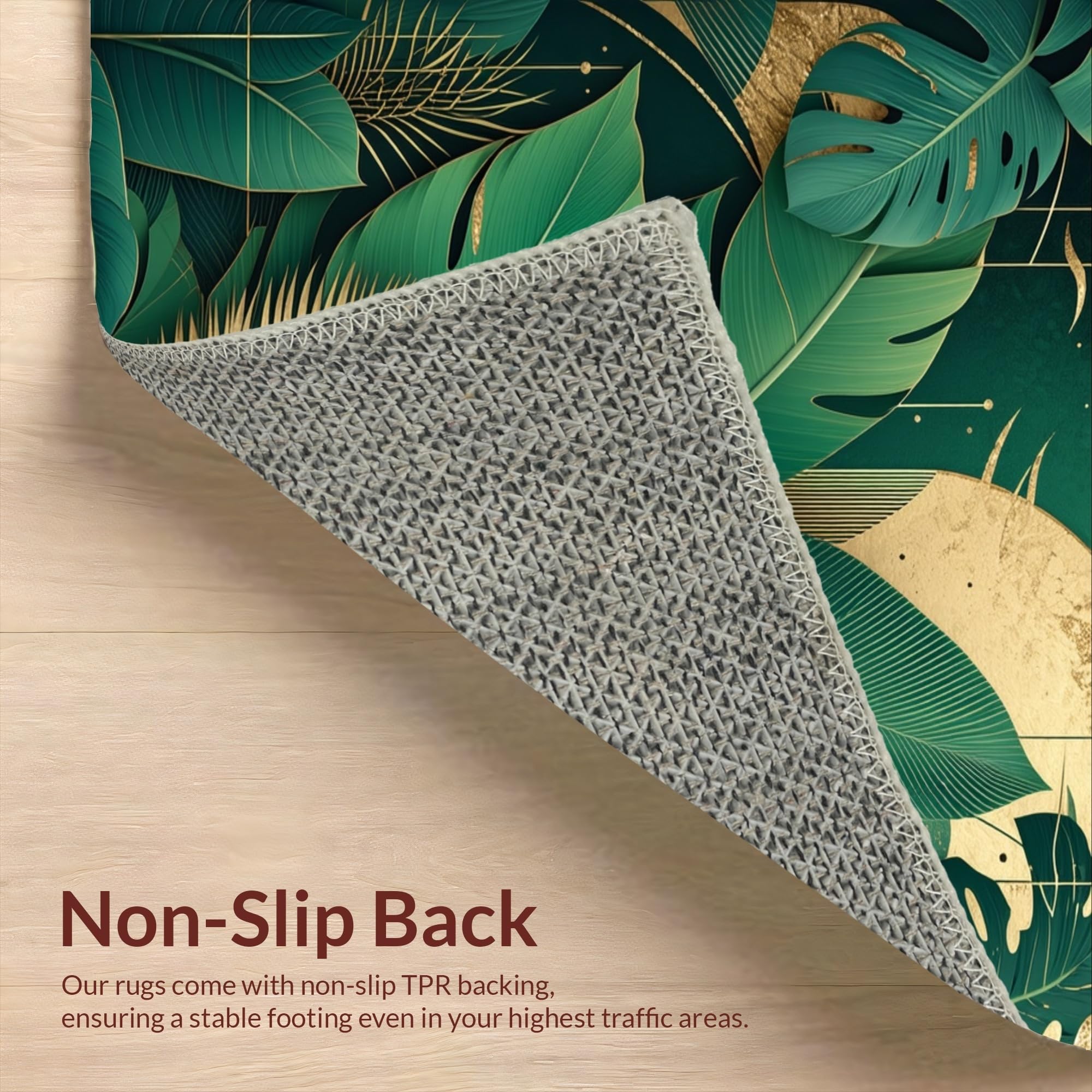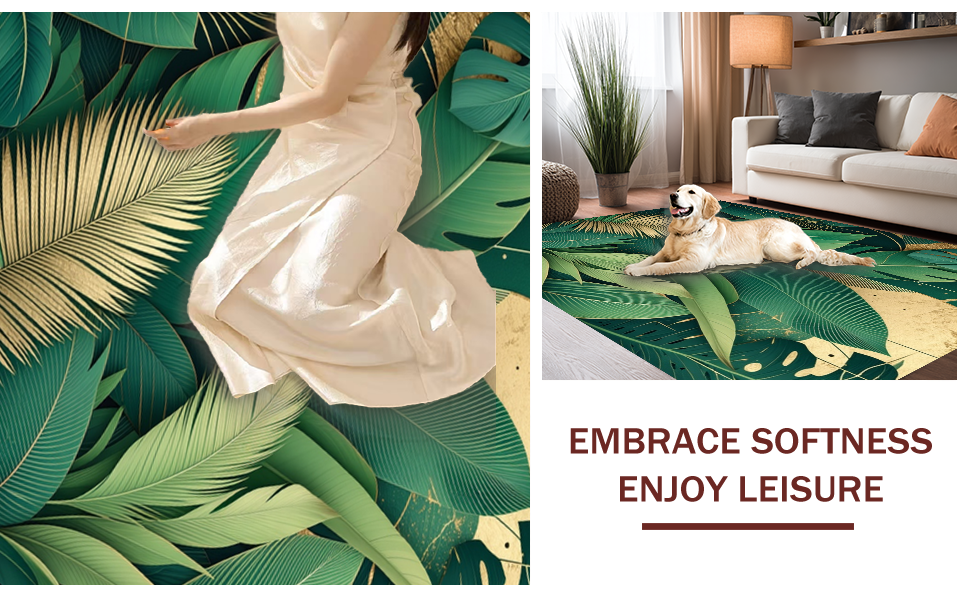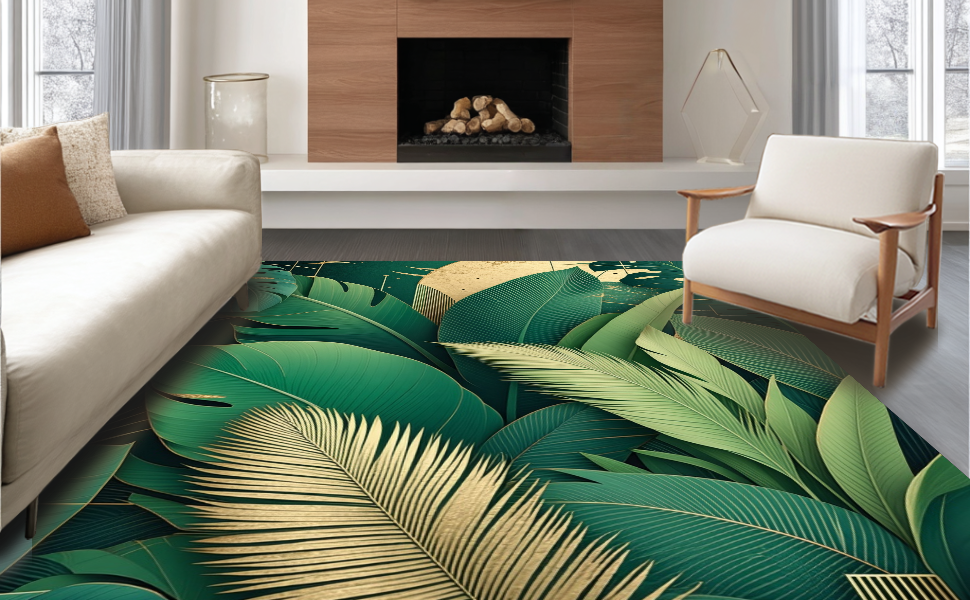Ultra Soft Area Rug, Non Slip, Stain Resistant, Washable Area Rugs for Living Room, Bedroom, Chic Gold Accented Foliage(Green) Overview: