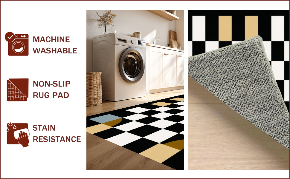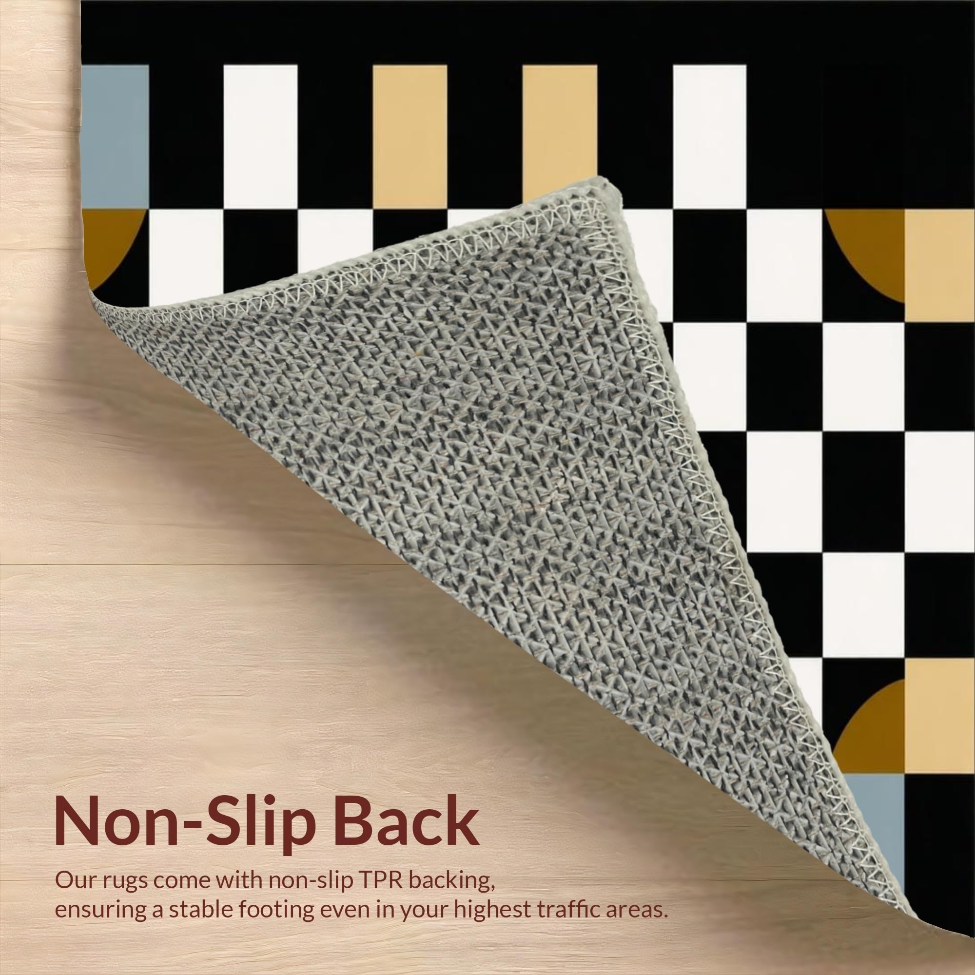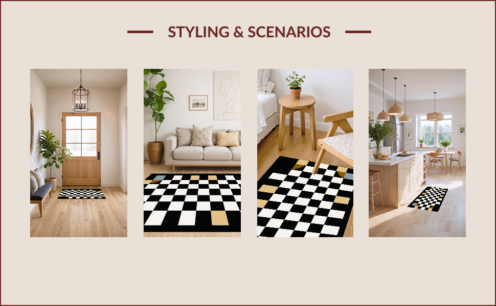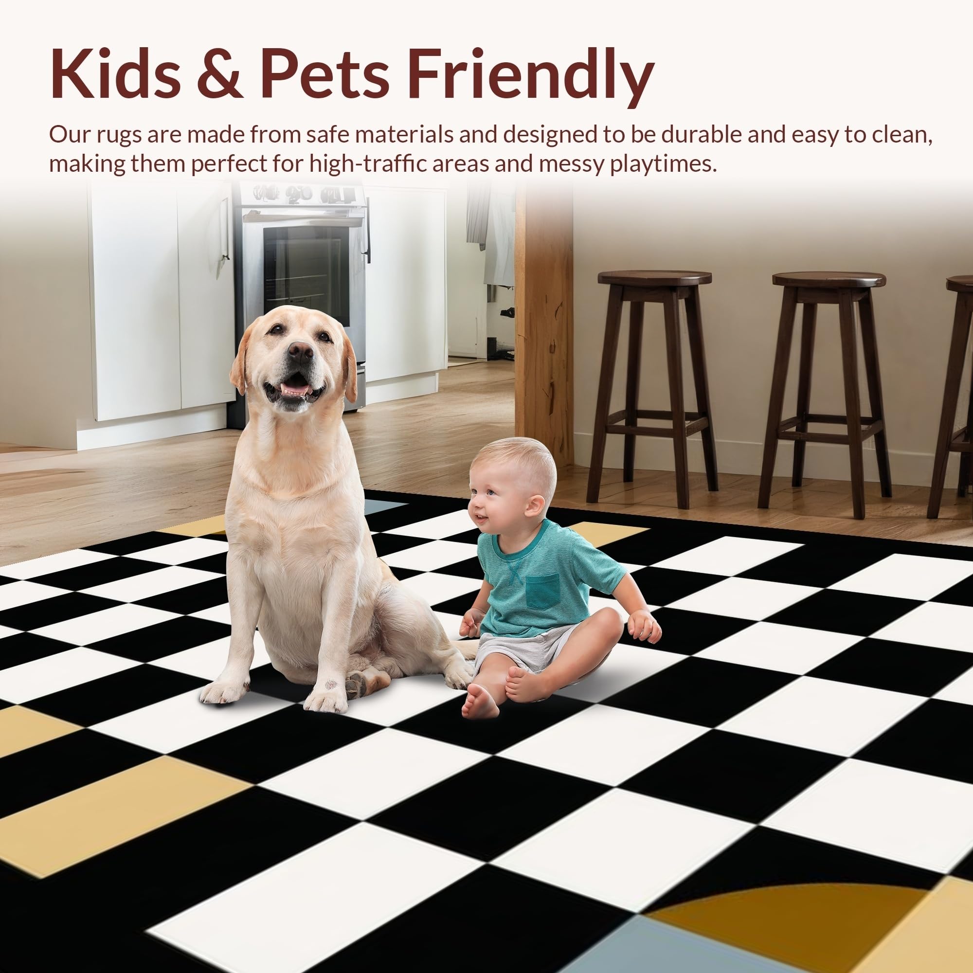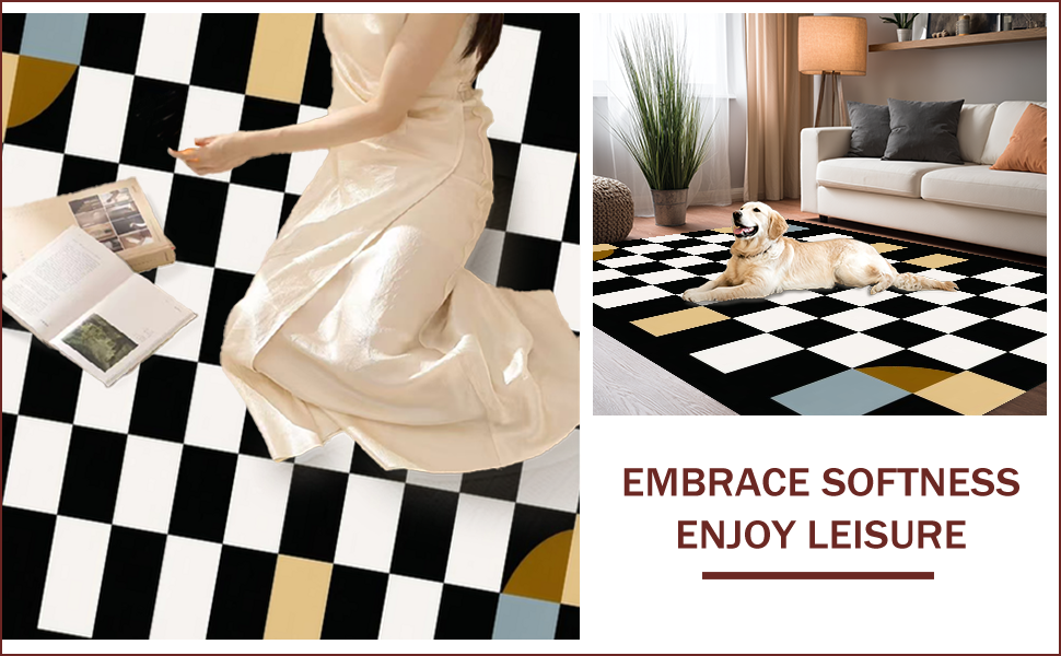 Ultra Soft Area Rug, Non Slip, Stain Resistant, Washable Area Rugs for Living Room, Bedroom, Chic Graphic Black and White Motif(Black) Overview: