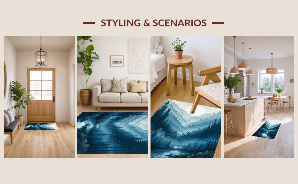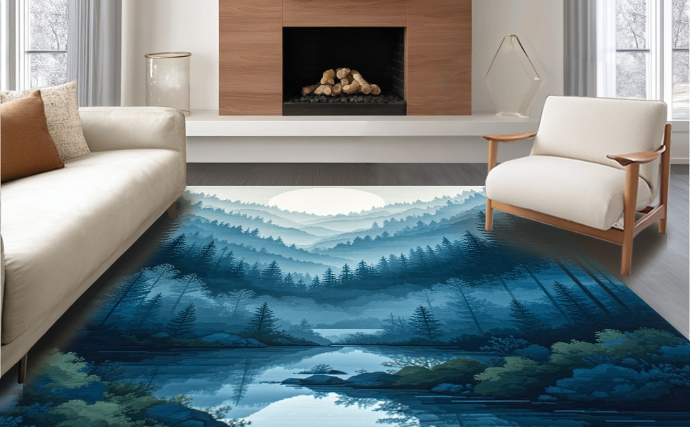 Ultra Soft Area Rug, Non Slip, Stain Resistant, Washable Area Rugs for Living Room, Bedroom, Chic Gray Tiled Motif(Blue) Overview:
