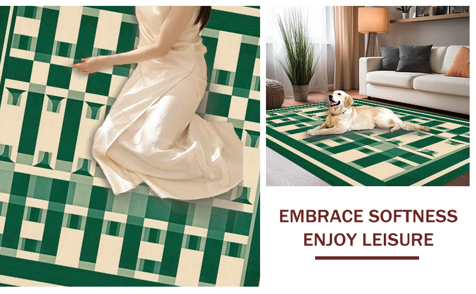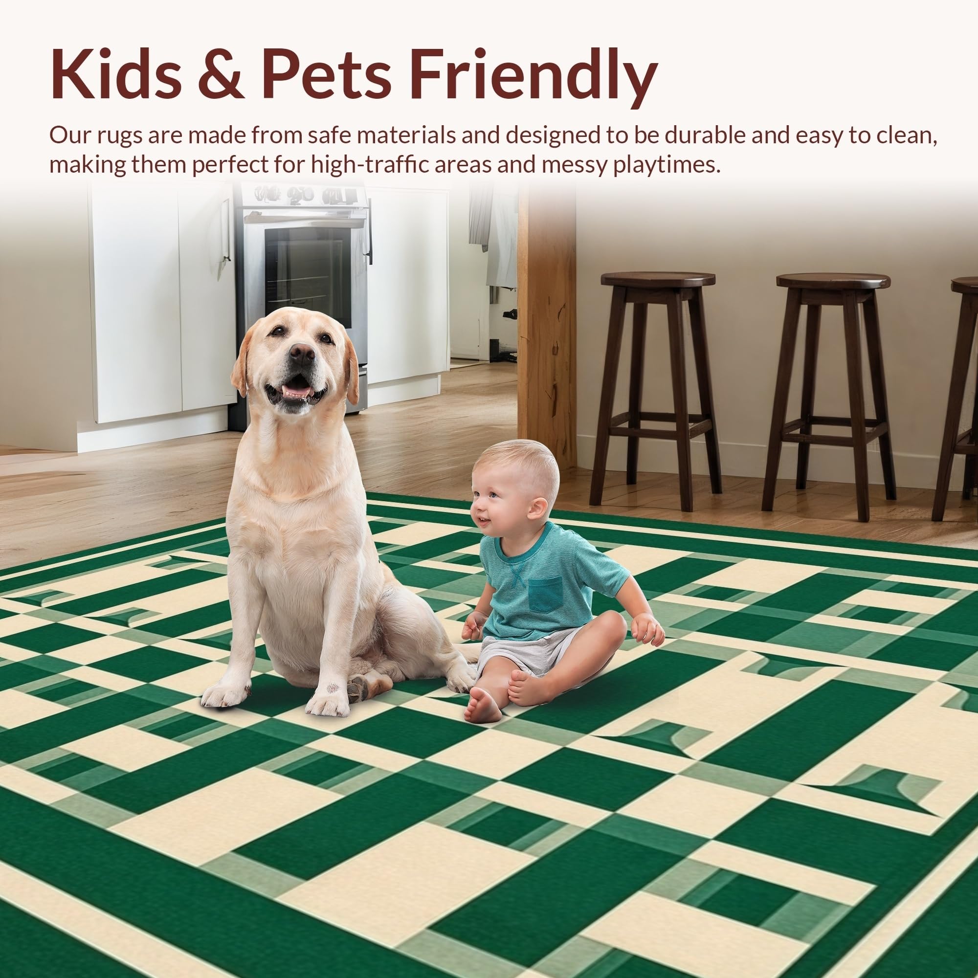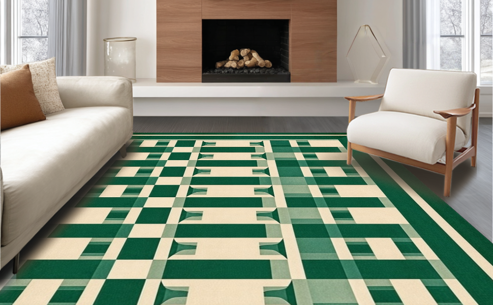 Ultra Soft Area Rug, Non Slip, Stain Resistant, Washable Area Rugs for Living Room, Bedroom, Chic Green Geometric Mosaic(Green) Overview: