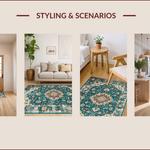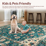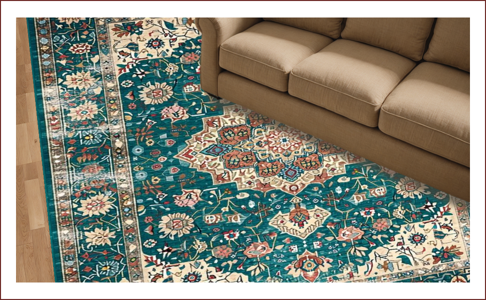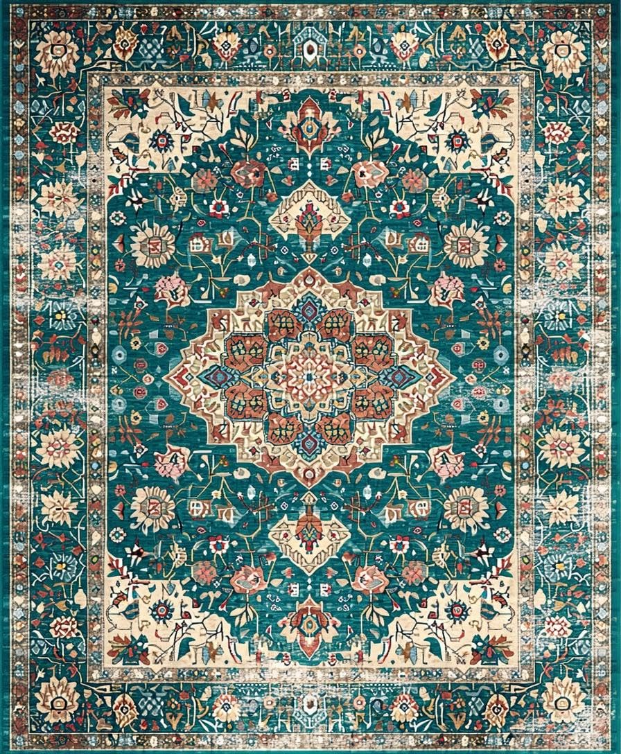 Ultra Soft Area Rug, Non Slip, Stain Resistant, Washable Area Rugs for Living Room, Bedroom, Chic Green Tiled Pattern Design(Blue) Overview: