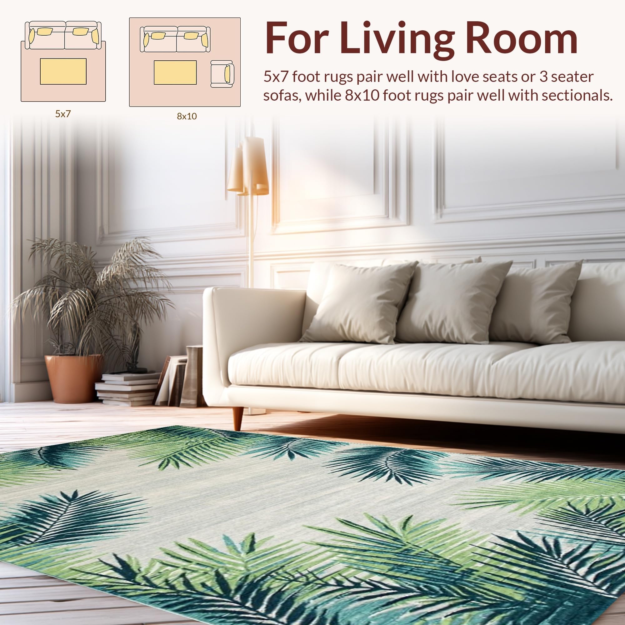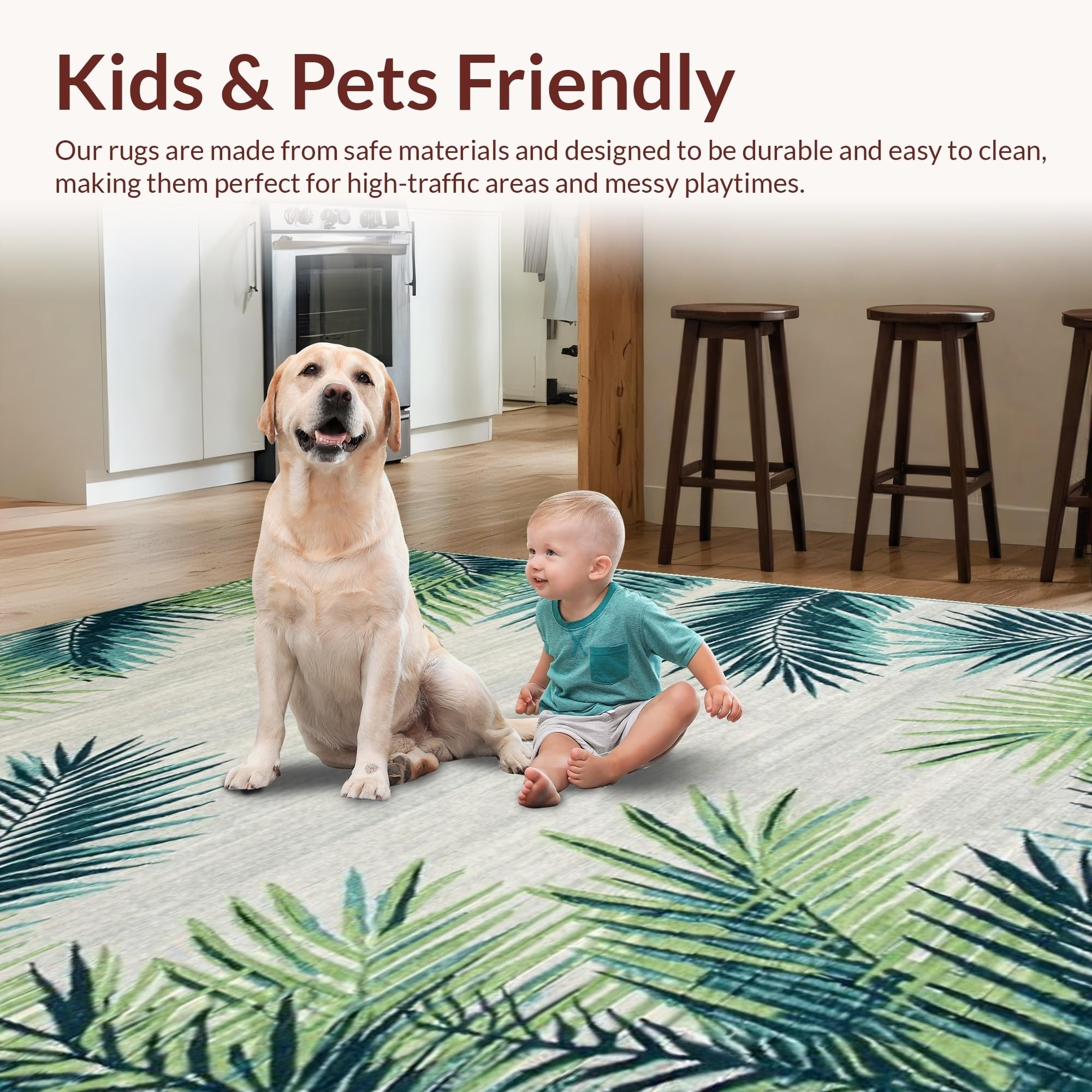 Ultra Soft Area Rug, Non Slip, Stain Resistant, Washable Area Rugs for Living Room, Bedroom, Chic Grey Striped Aesthetic(Green) Overview: