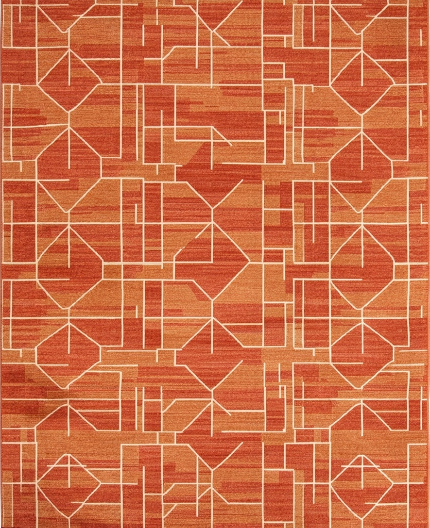 Flatwoven High Traffic Area Rug, Chic Half Circle with Geometric Interlocking Designs, Non Slip, Stain Resistant, Washable Area Rugs for Living Room, Bedroom (Orange) Overview: