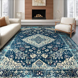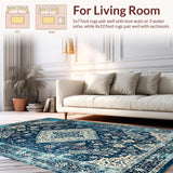 Ultra Soft Area Rug, Non Slip, Stain Resistant, Washable Area Rugs for Living Room, Bedroom, Chic Lattice Pattern in Blue Tones(Blue) Overview:
