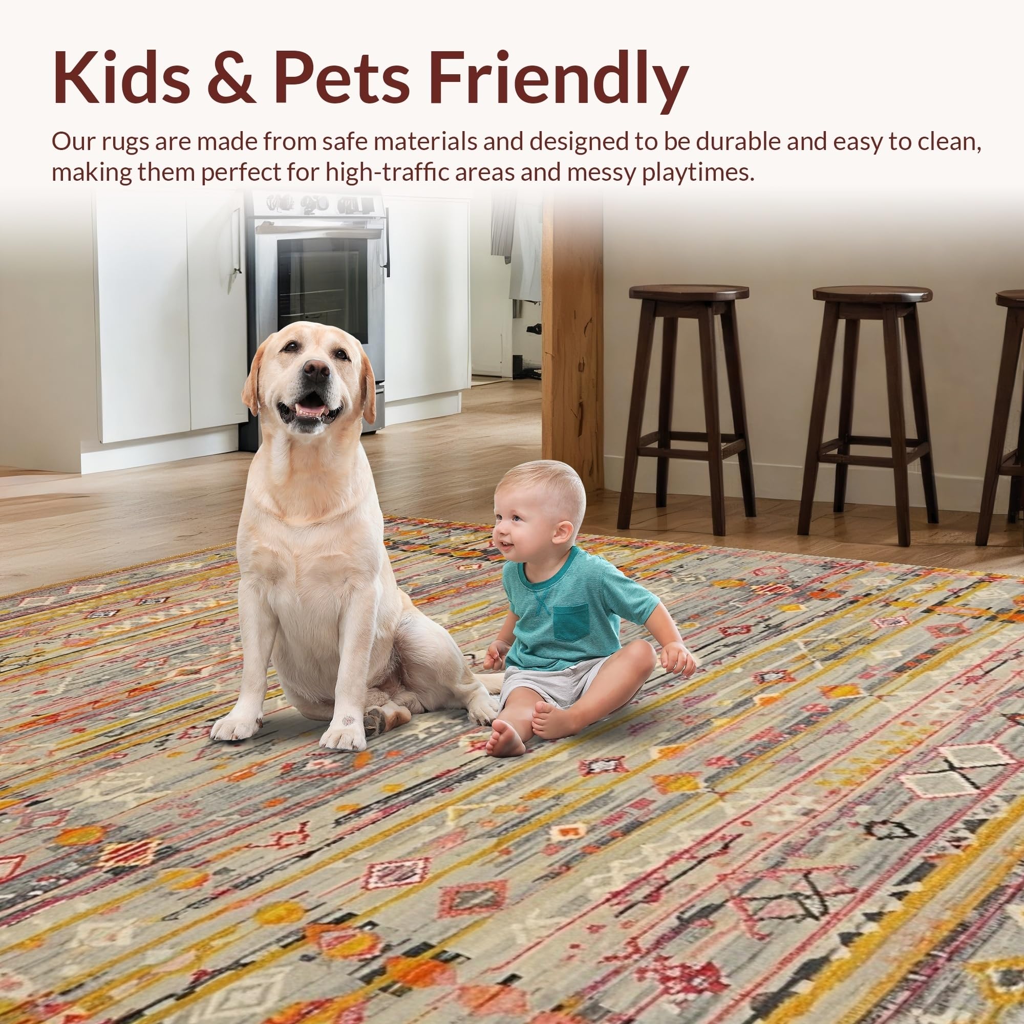 Ultra Soft Area Rug, Non Slip, Stain Resistant, Washable Area Rugs for Living Room, Bedroom, Chic Layered Color Block Design(Gray) Overview: