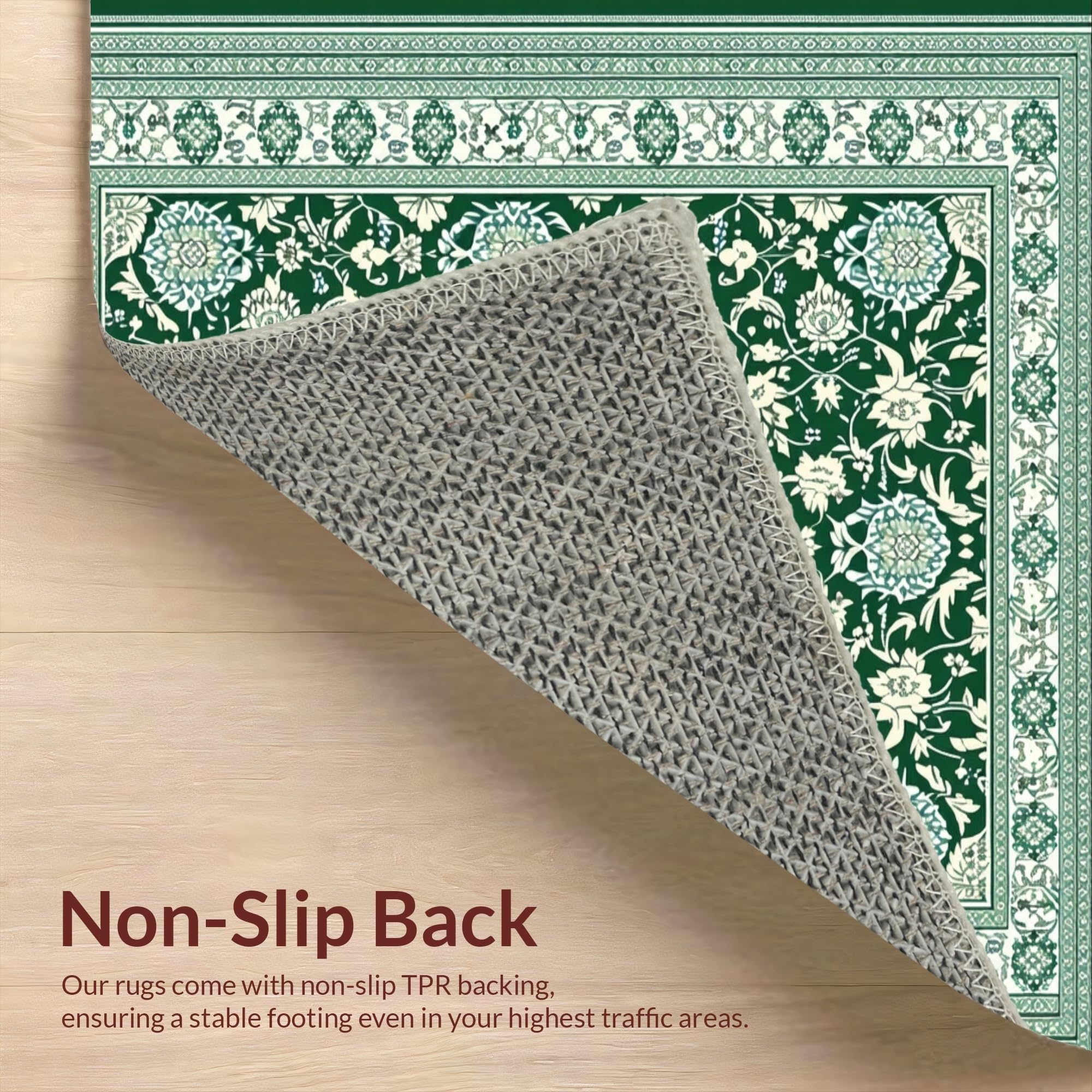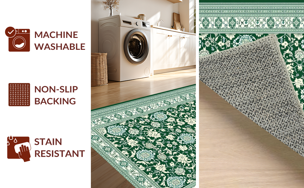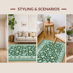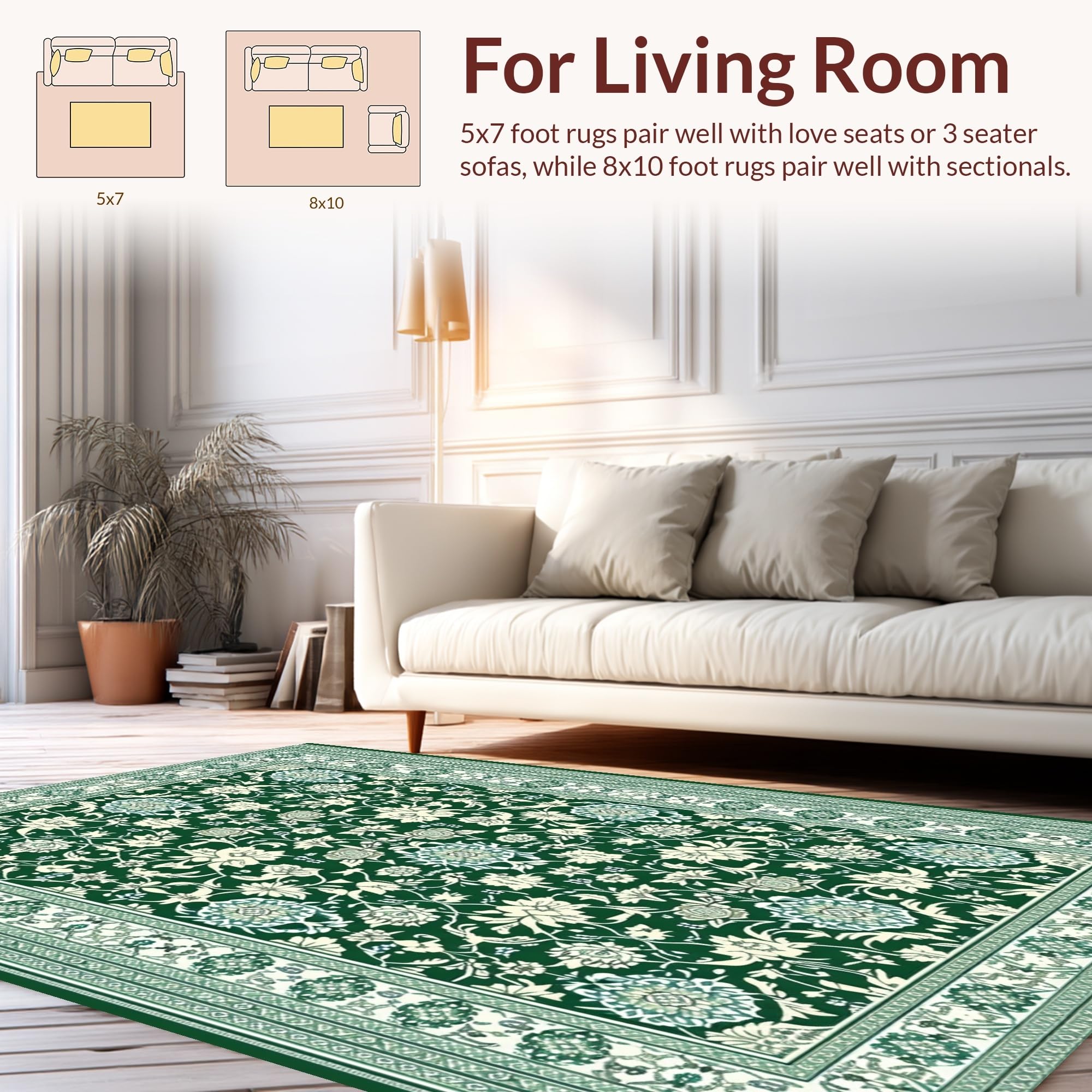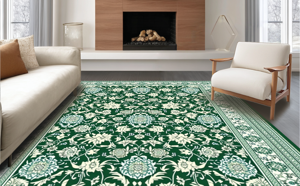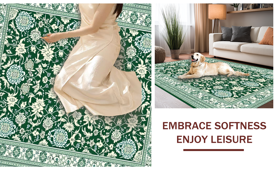 Ultra Soft Area Rug, Non Slip, Stain Resistant, Washable Area Rugs for Living Room, Bedroom, Chic Low-Pile Rustic Charm(Green) Overview: