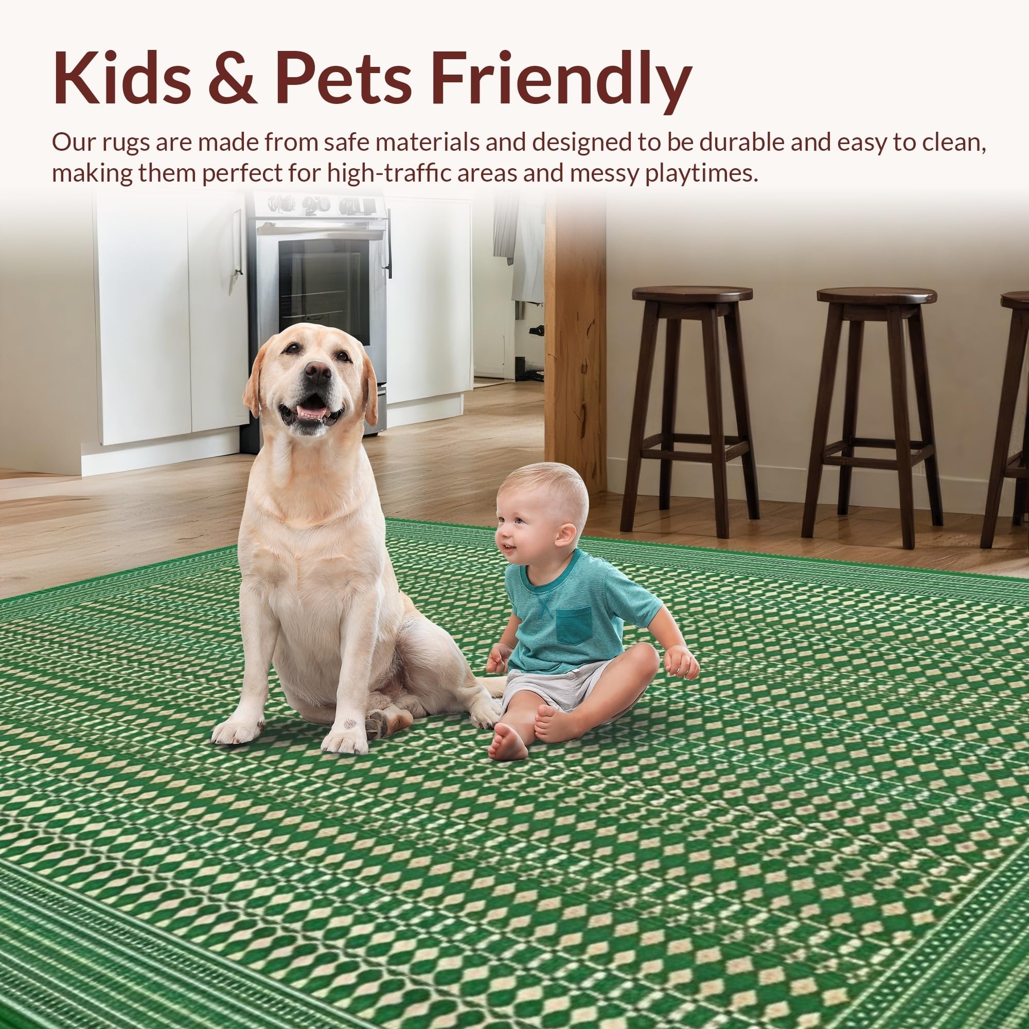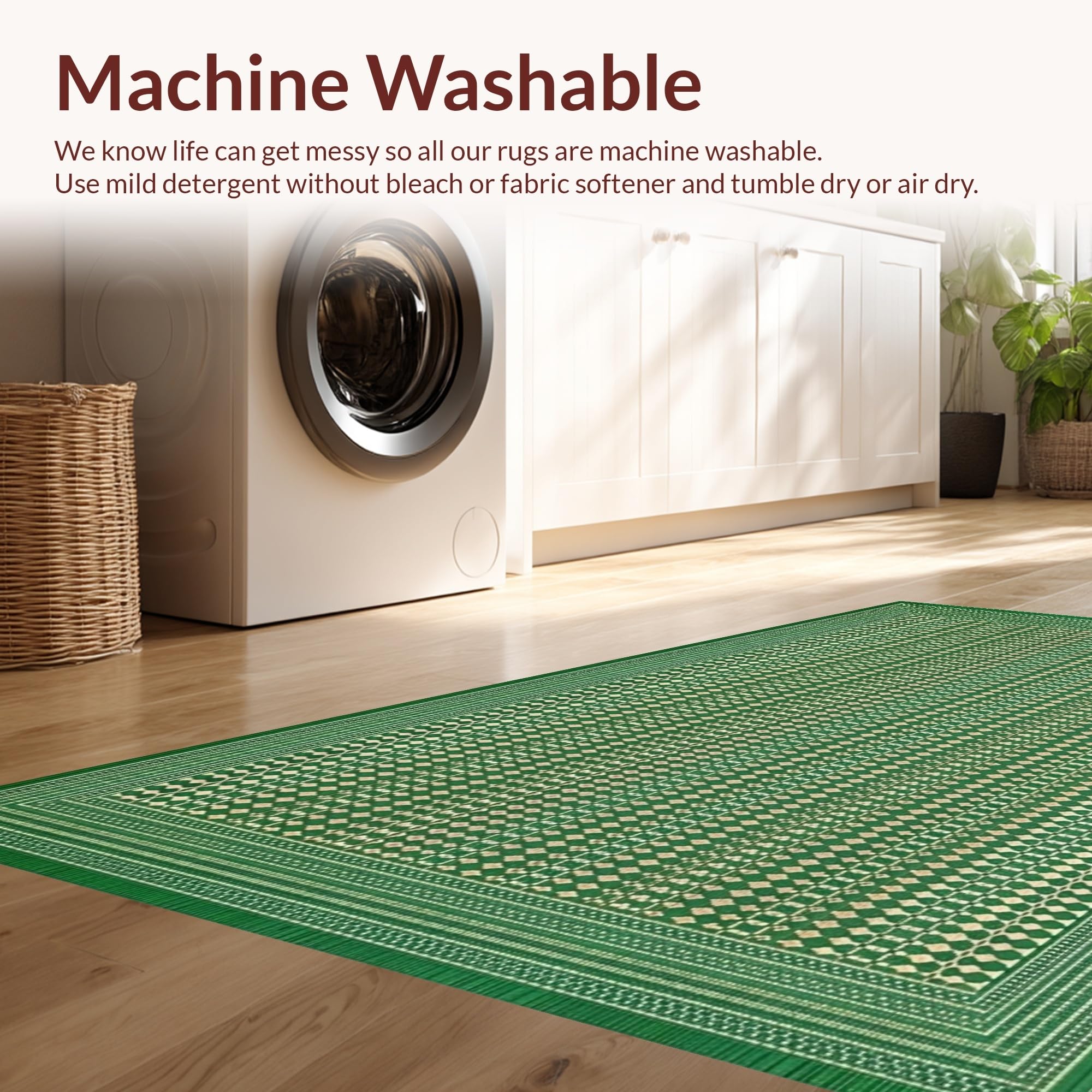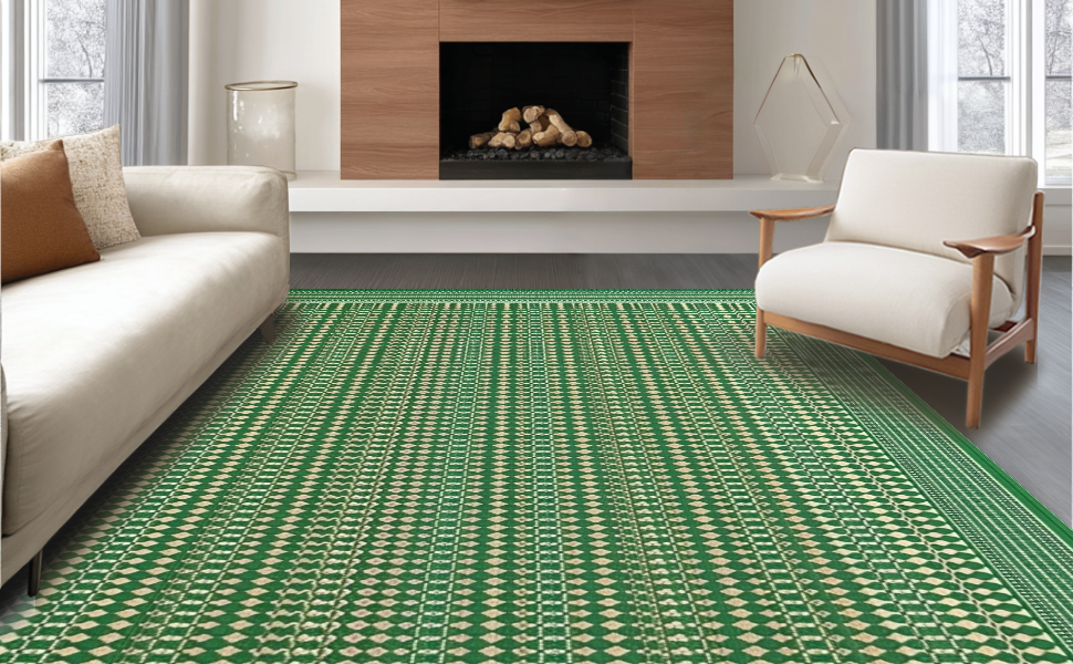 Ultra Soft Area Rug, Non Slip, Stain Resistant, Washable Area Rugs for Living Room, Bedroom, Chic Minimalist Checkered Aesthetic(Green) Overview: