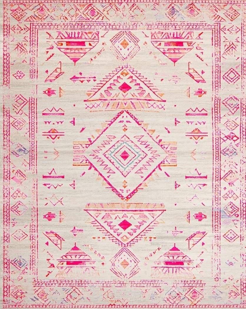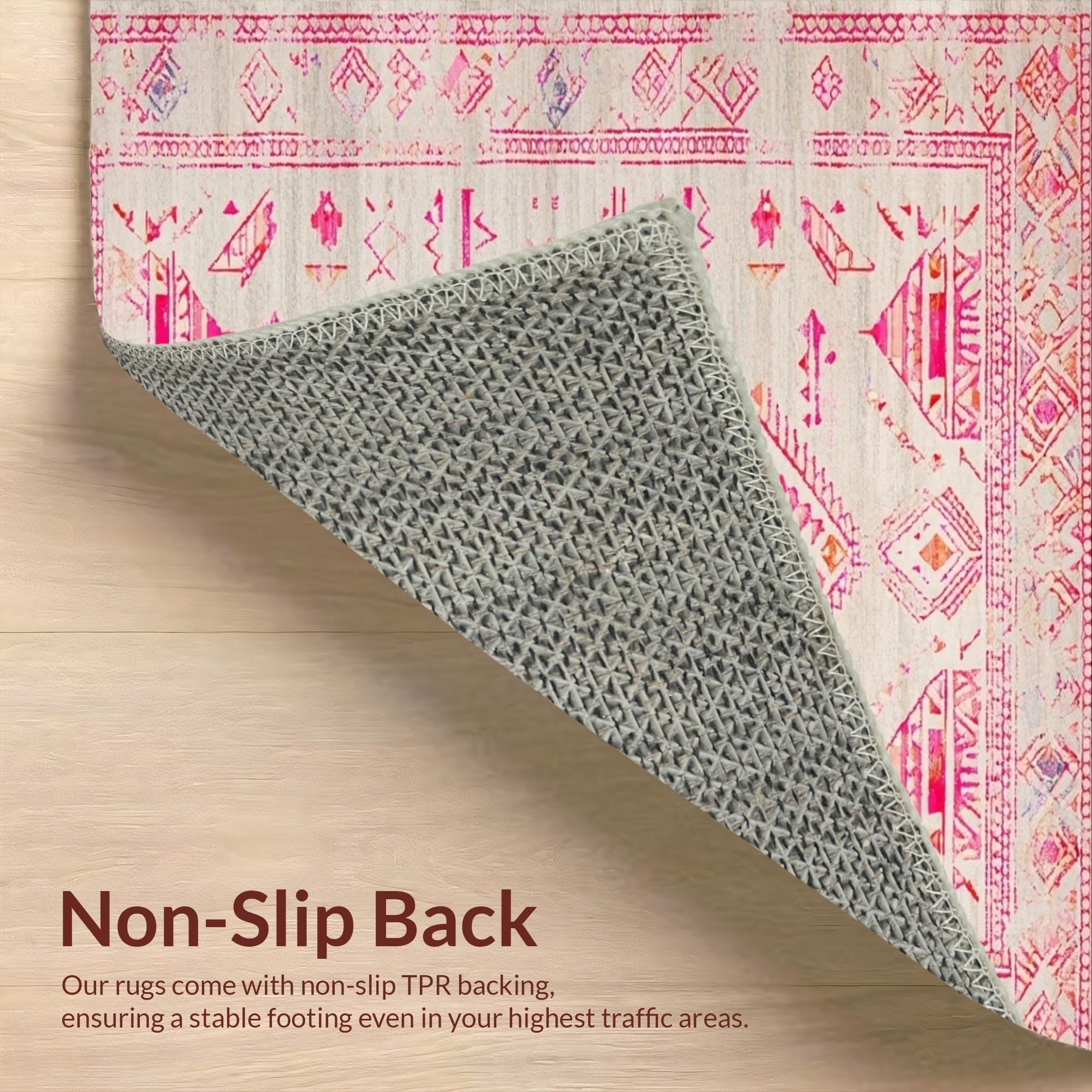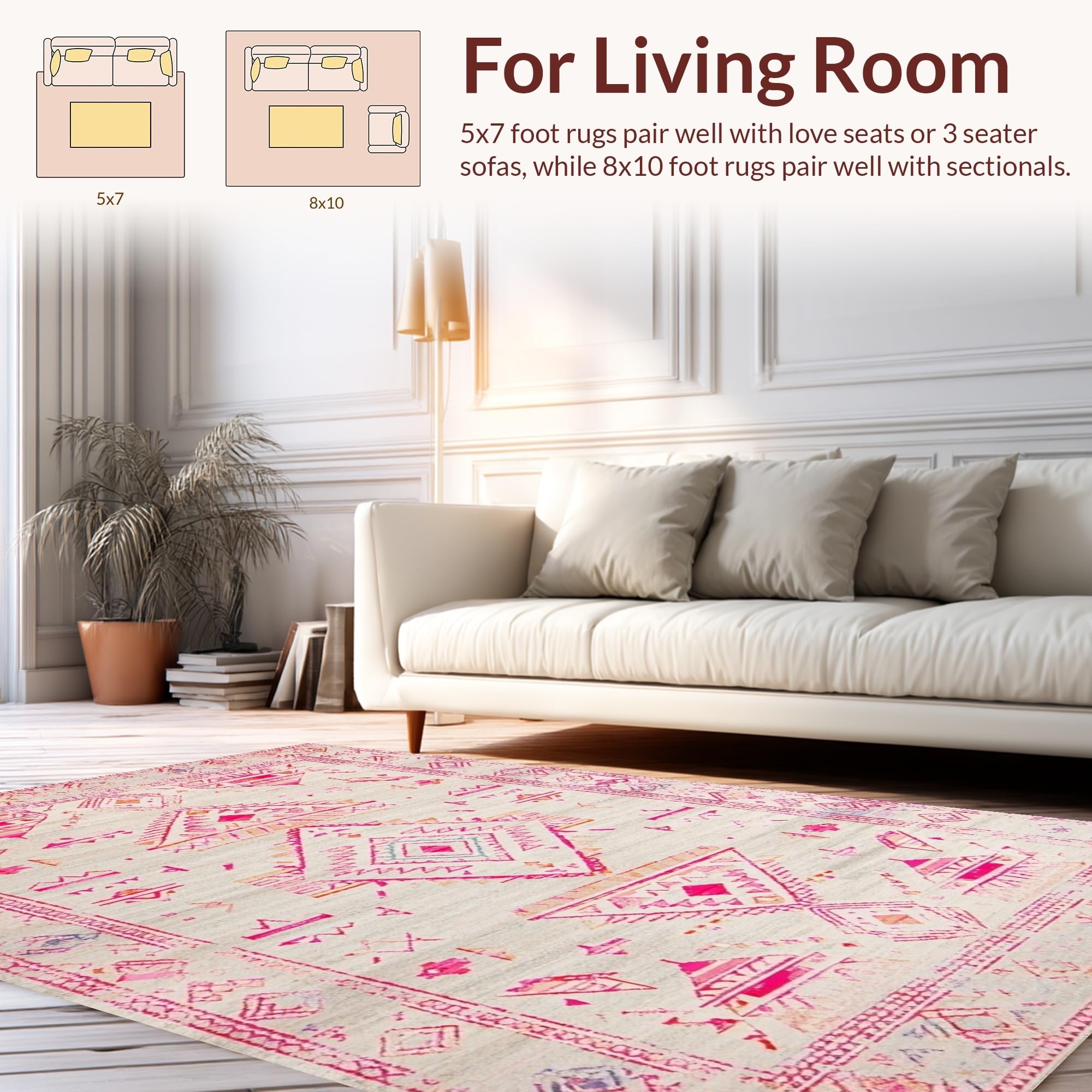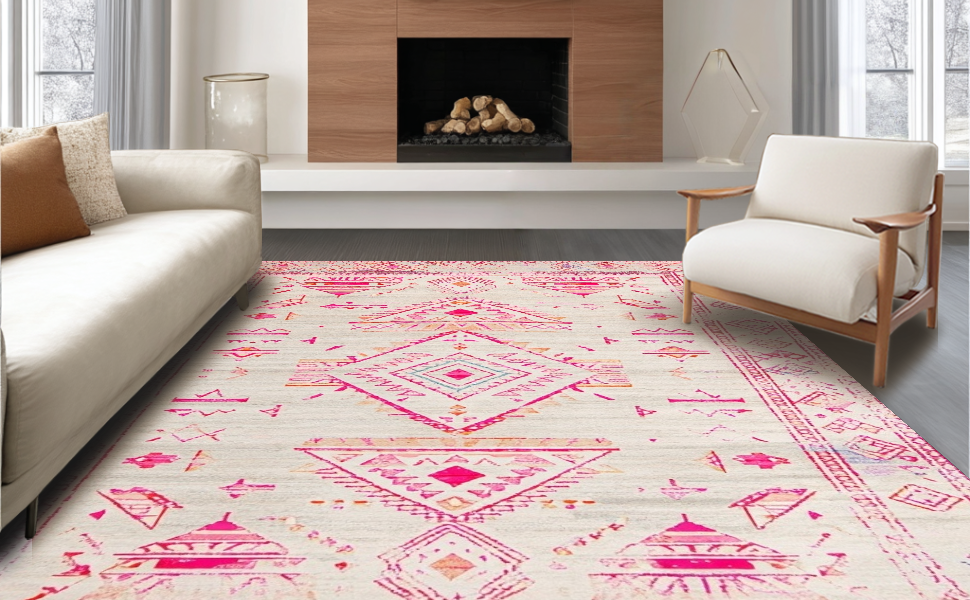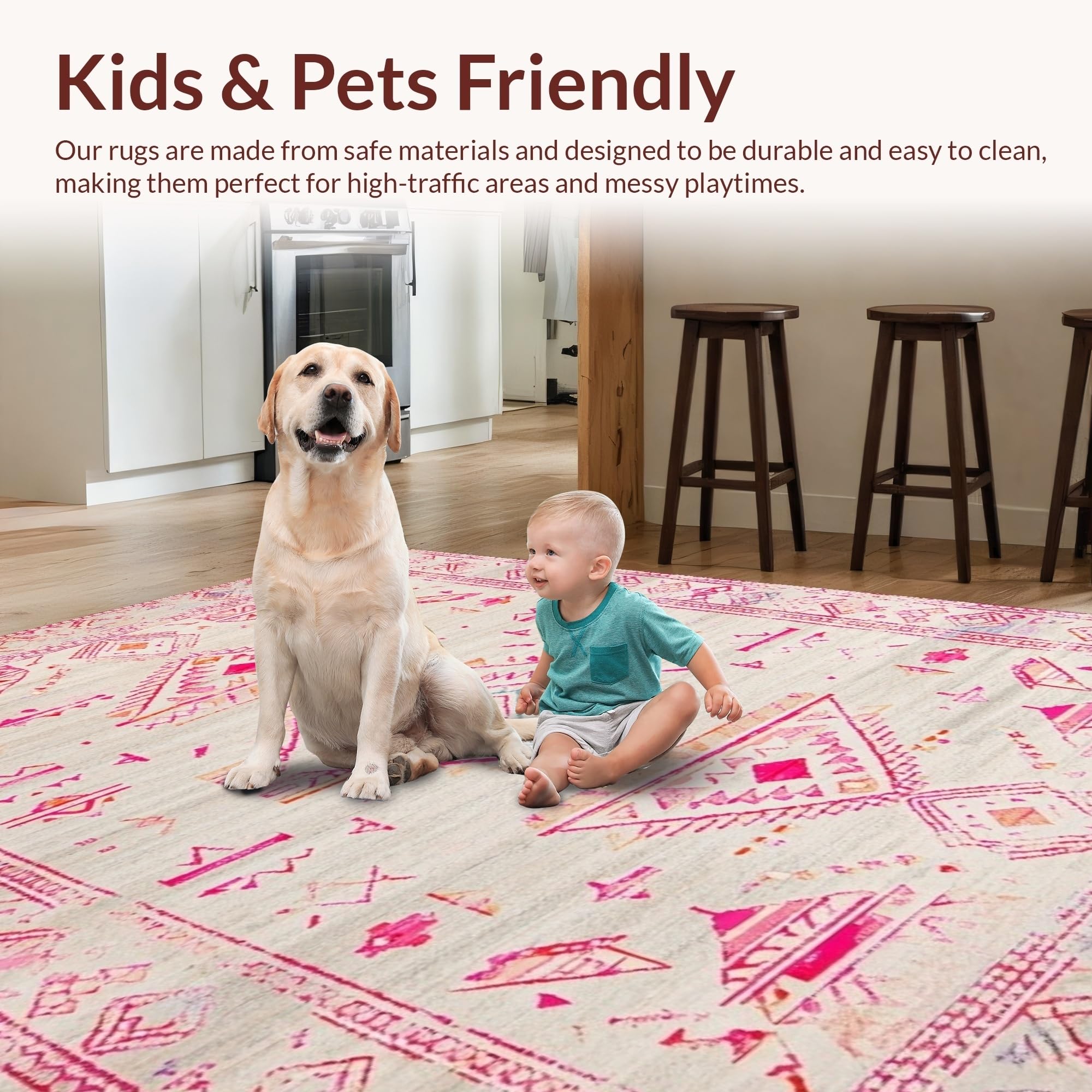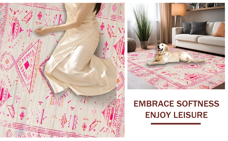 Ultra Soft Area Rug, Non Slip, Stain Resistant, Washable Area Rugs for Living Room, Bedroom, Chic Minimalist Floral Design(Pink) Overview: