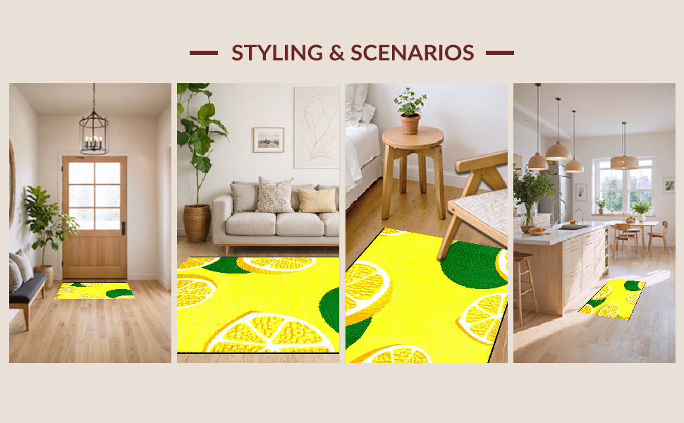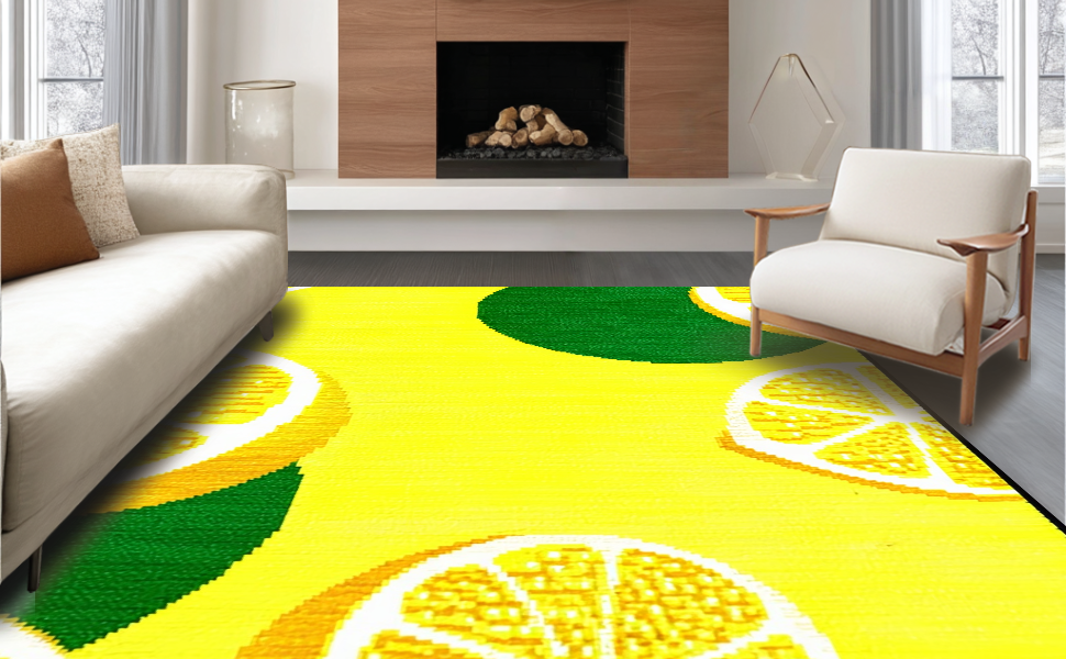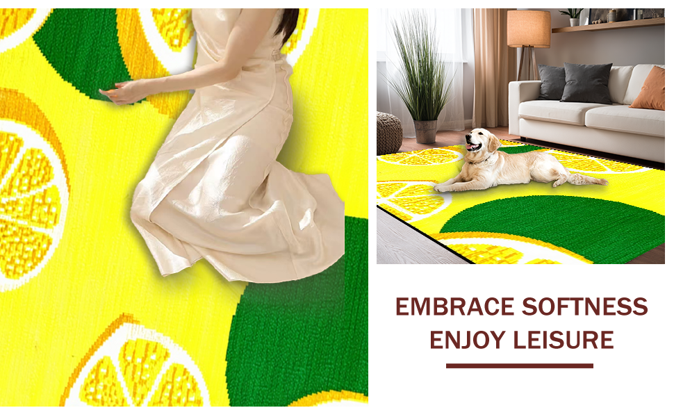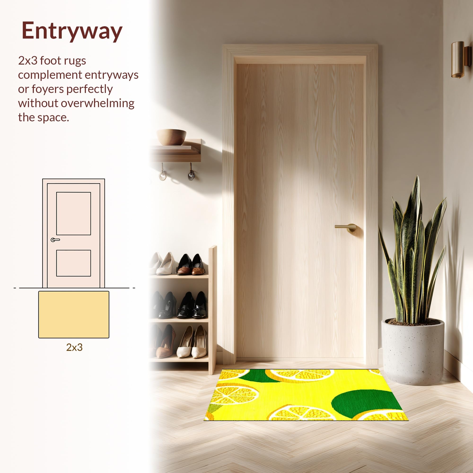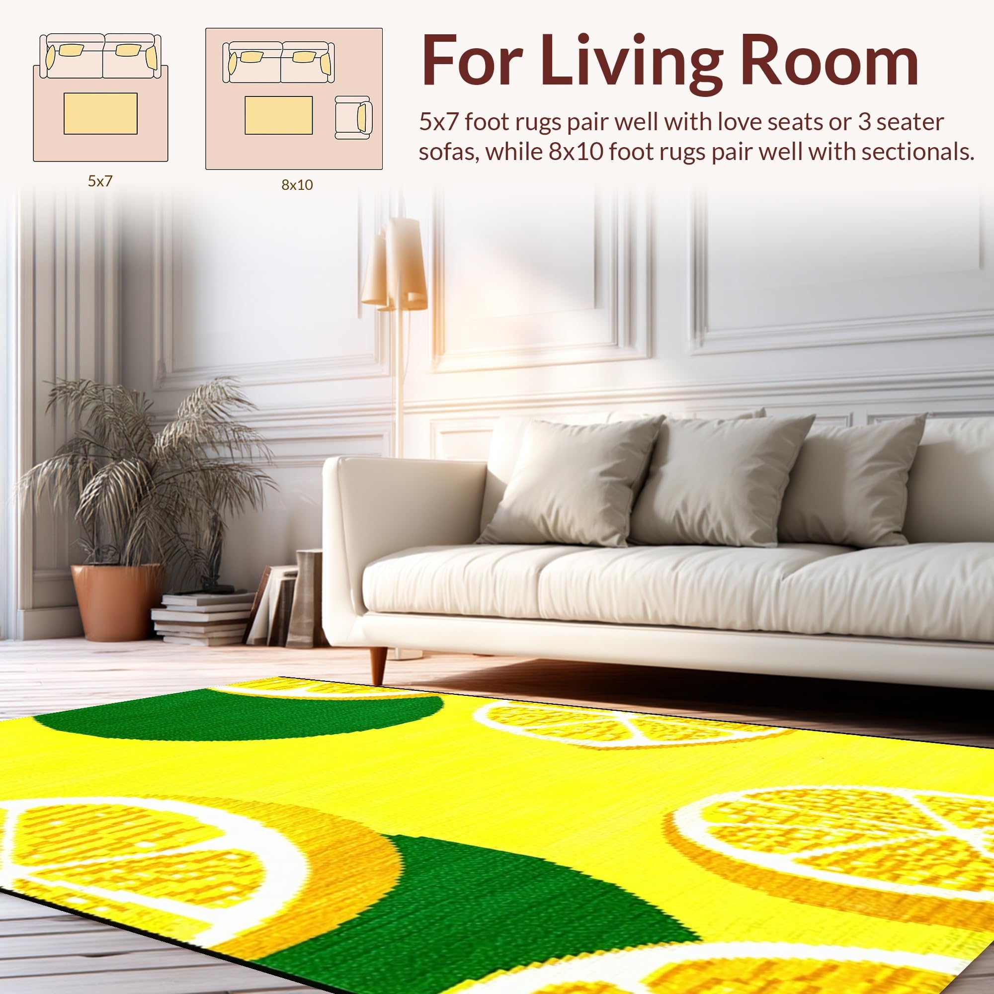 Ultra Soft Area Rug, Non Slip, Stain Resistant, Washable Area Rugs for Living Room, Bedroom, Chic Minimalist Green Leaf Motif(Yellow) Overview: