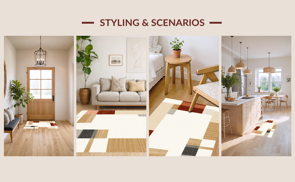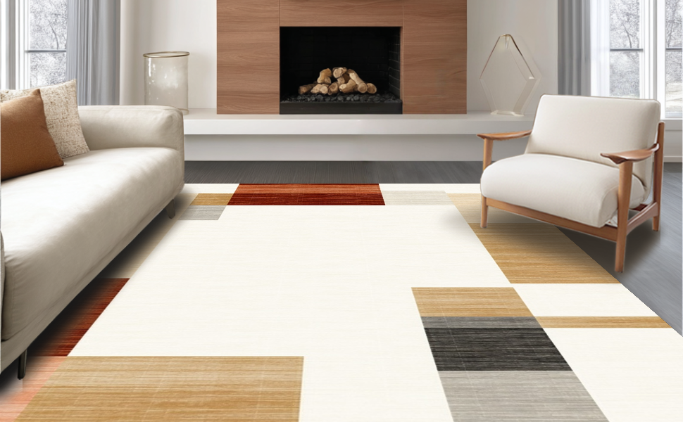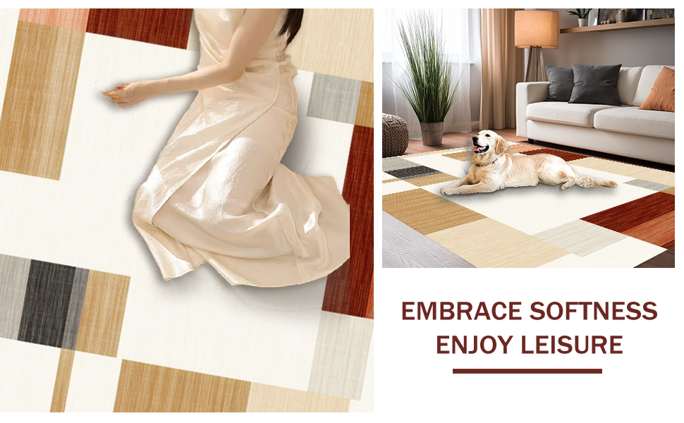 Ultra Soft Area Rug, Non Slip, Stain Resistant, Washable Area Rugs for Living Room, Bedroom, Chic Minimalist Neutral Palette(Beige) Overview: