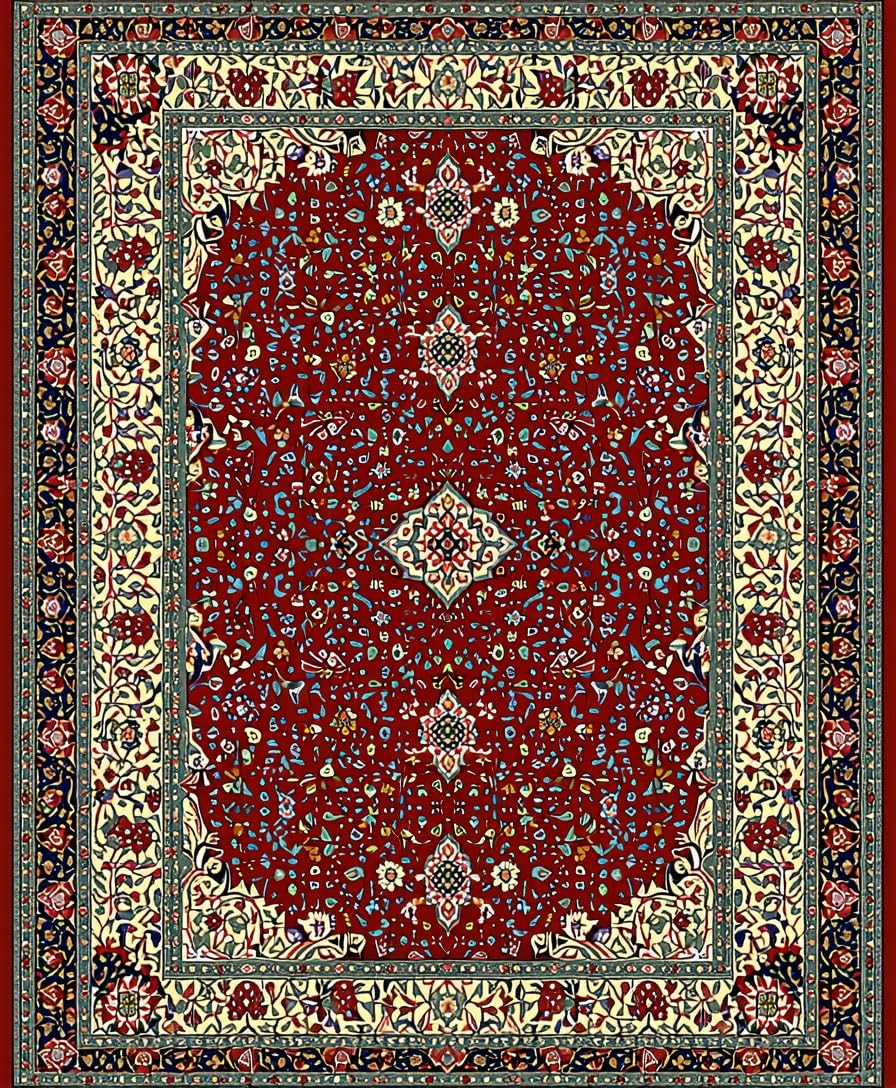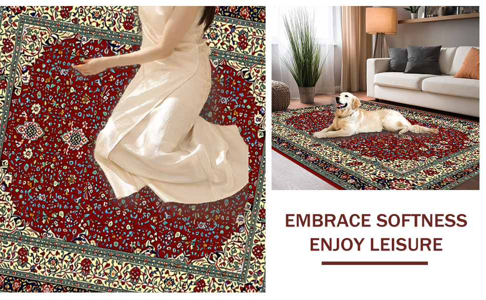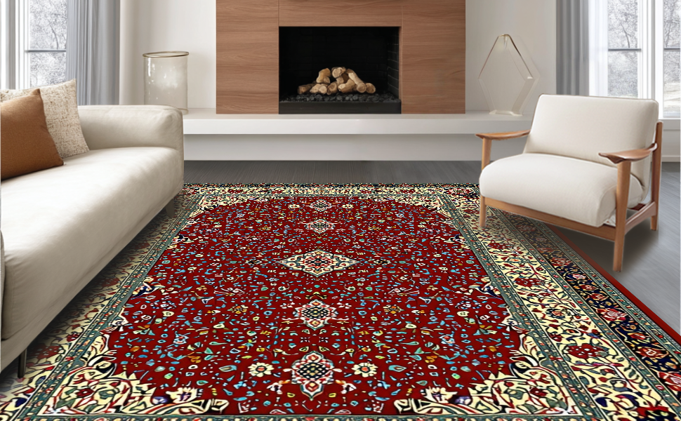 Ultra Soft Area Rug, Non Slip, Stain Resistant, Washable Area Rugs for Living Room, Bedroom, Chic Minimalist Ogee Style Contrast(Red) Overview: