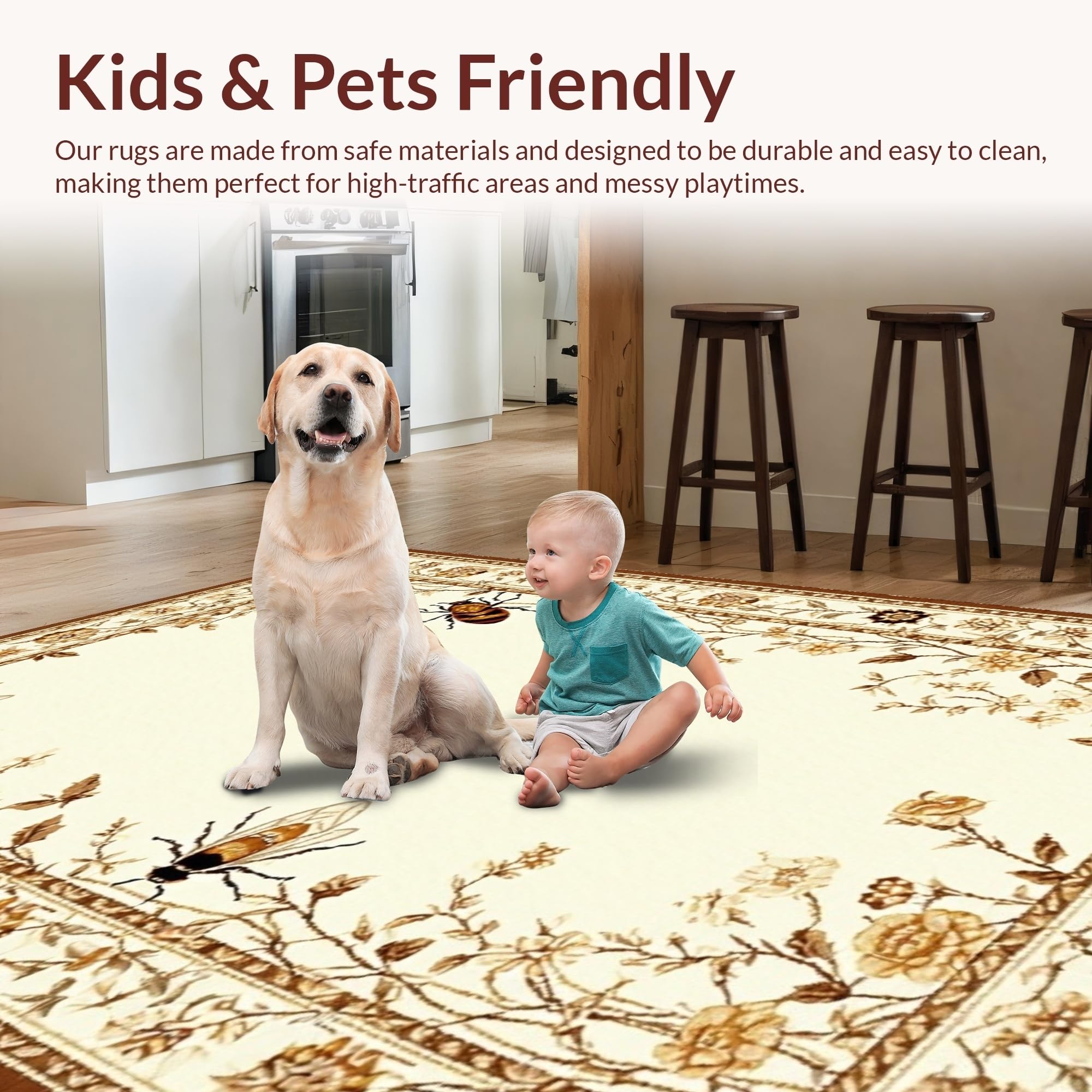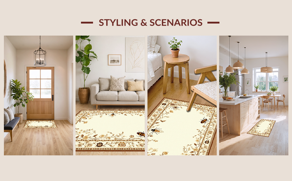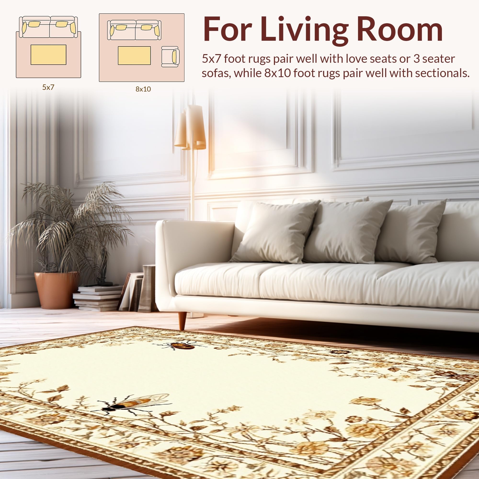 Ultra Soft Area Rug, Non Slip, Stain Resistant, Washable Area Rugs for Living Room, Bedroom, Chic Minimalist Patterned Tiles(Beige) Overview: