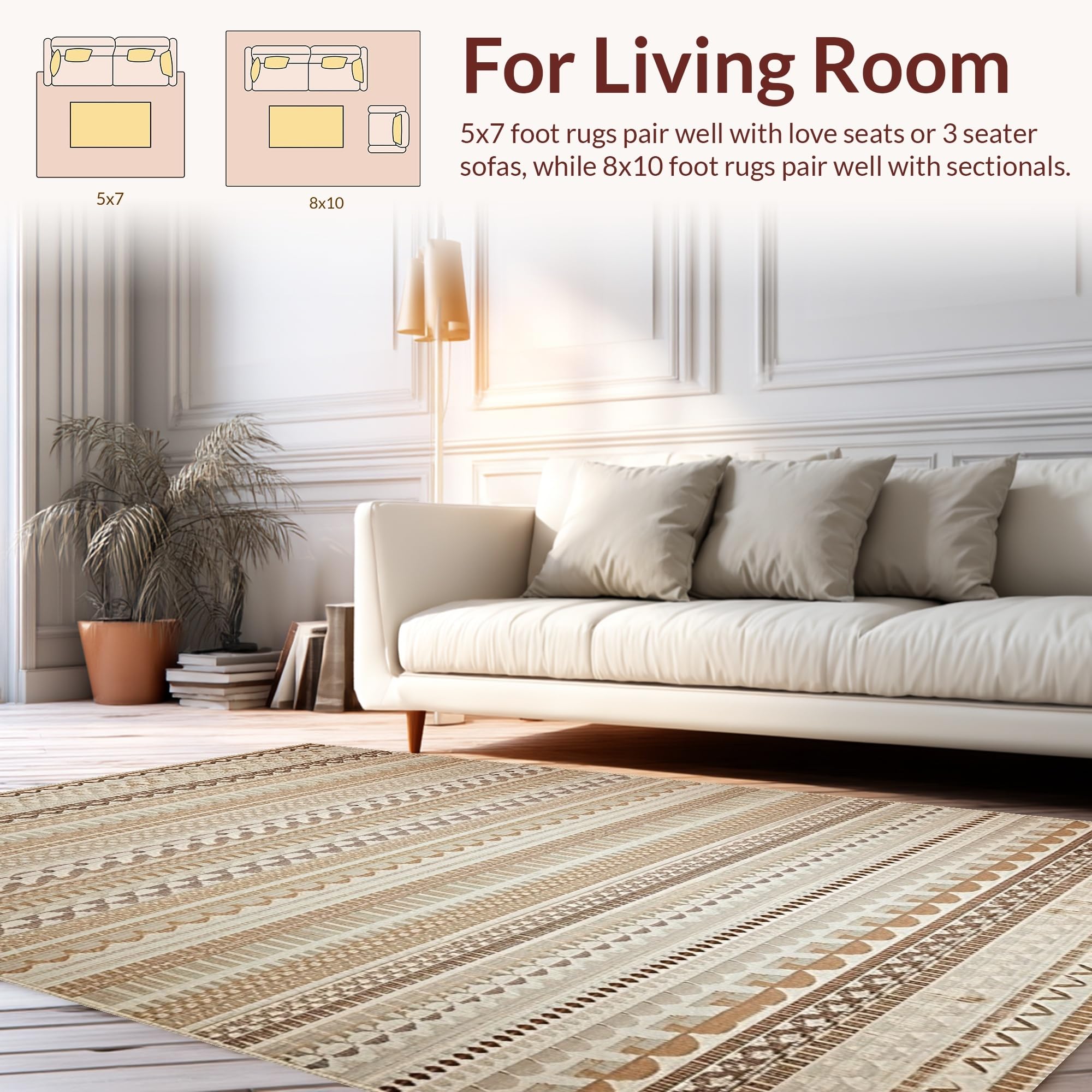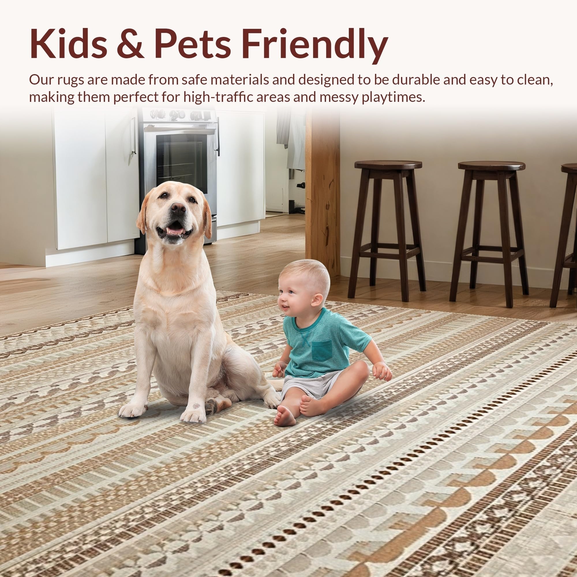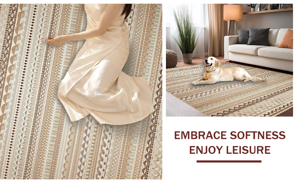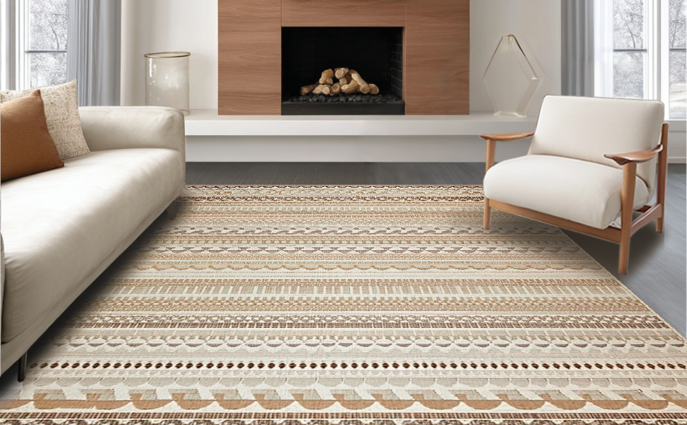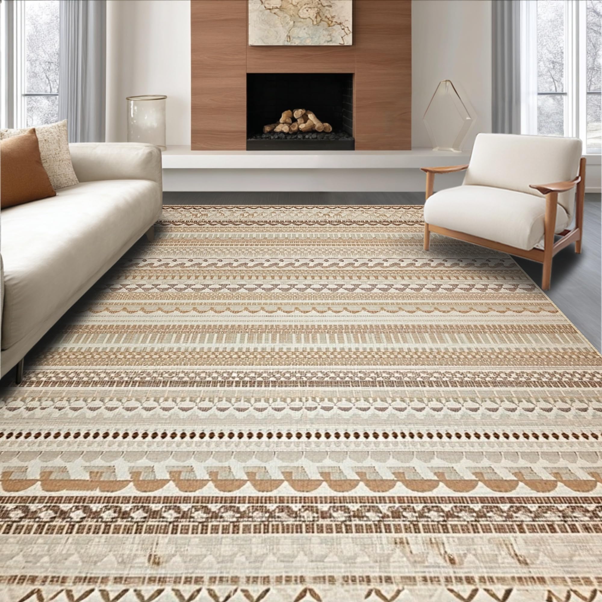 Ultra Soft Area Rug, Non Slip, Stain Resistant, Washable Area Rugs for Living Room, Bedroom, Chic Minimalist Scalloped Elegance(Beige) Overview: