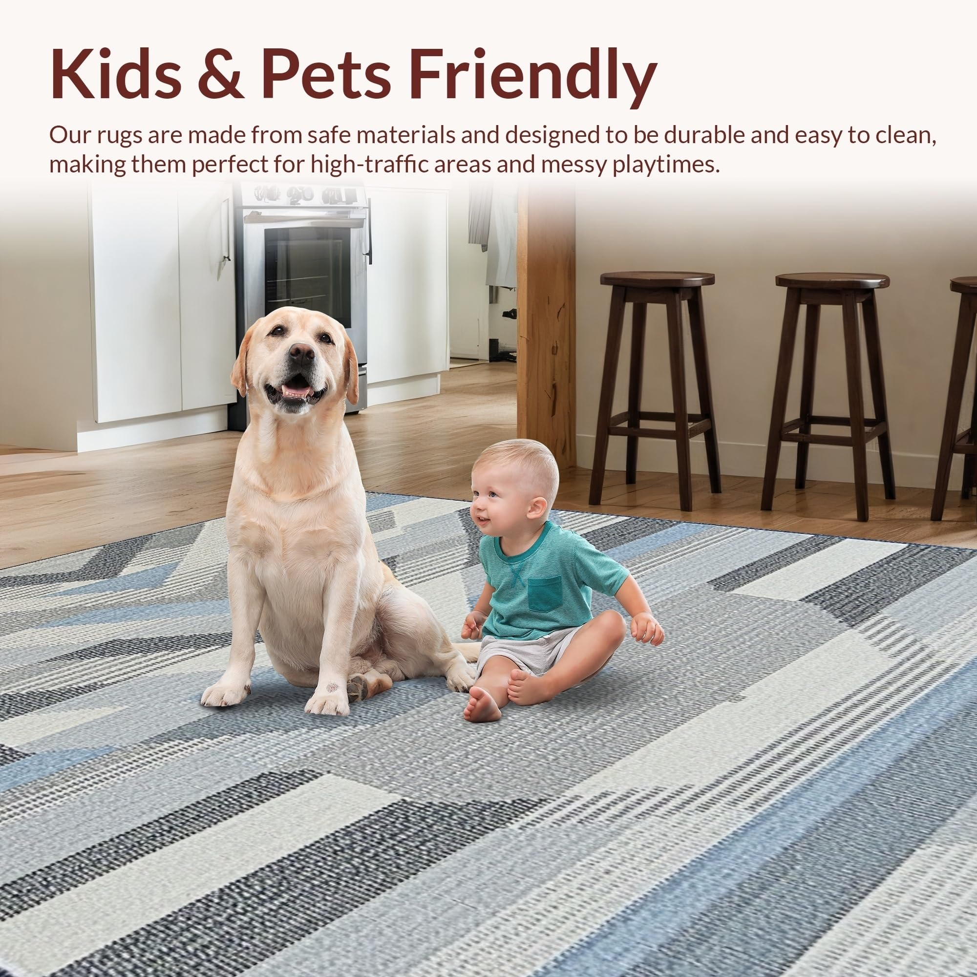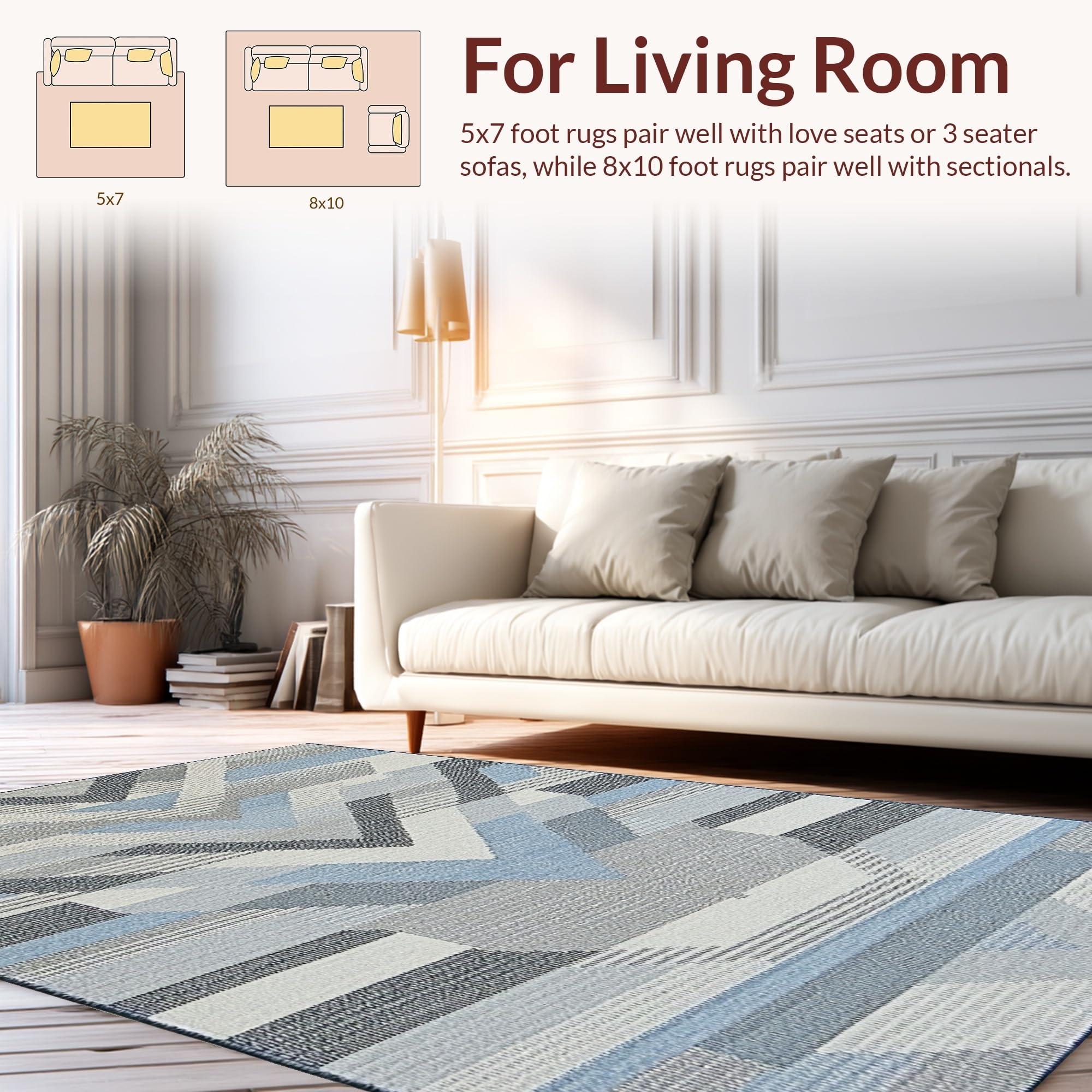 Ultra Soft Area Rug, Non Slip, Stain Resistant, Washable Area Rugs for Living Room, Bedroom, Chic Minimalist Textured Design(Gray) Overview: