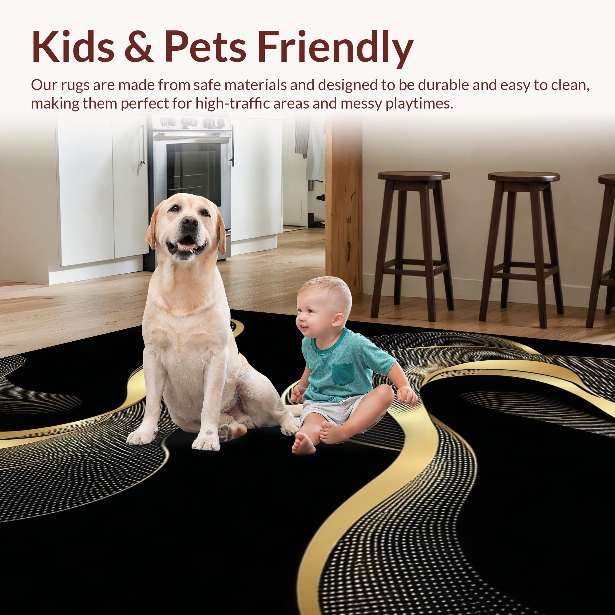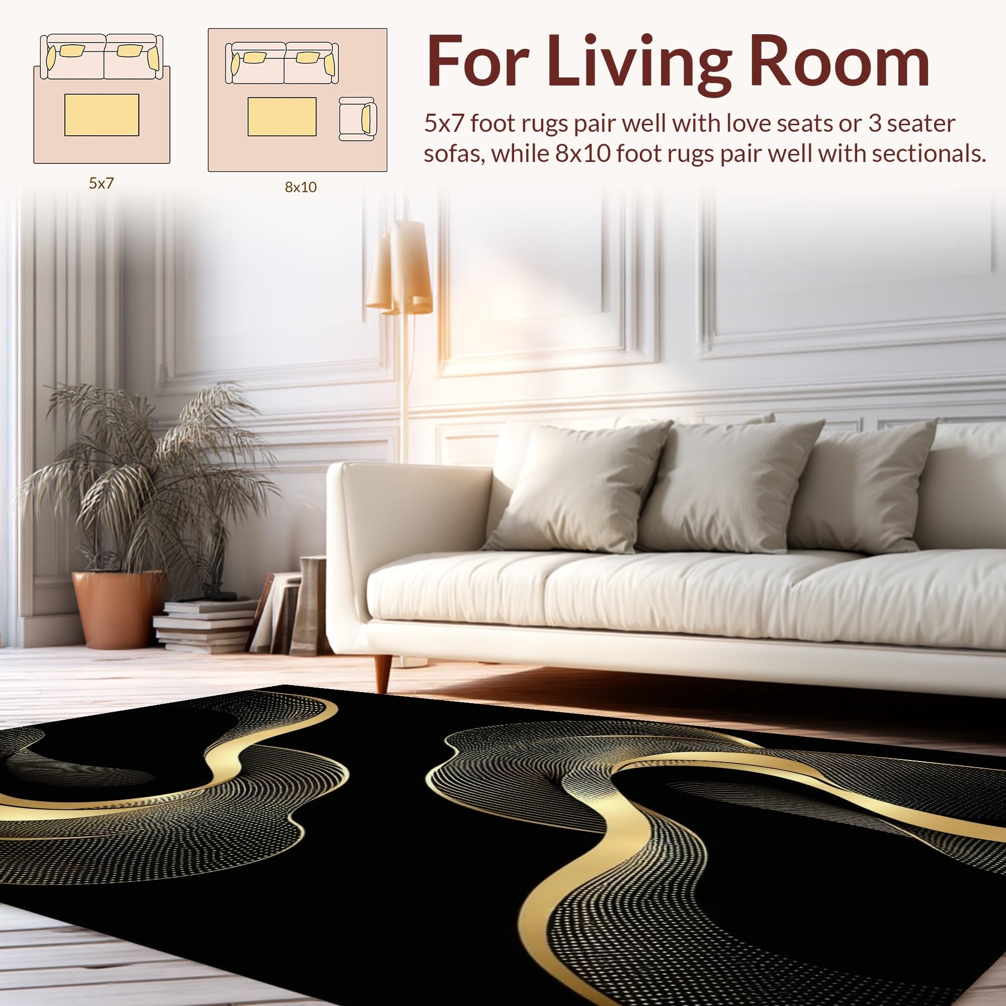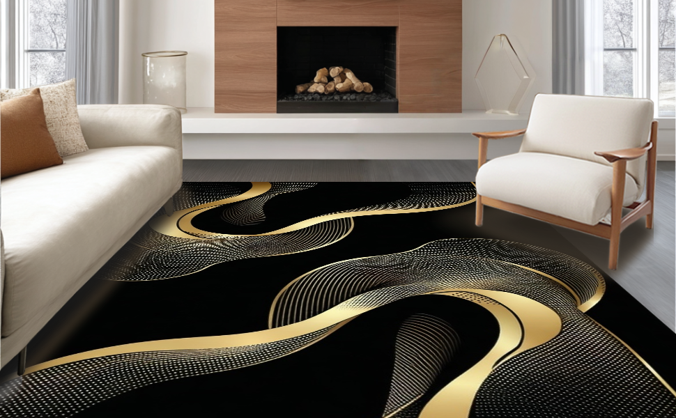 Ultra Soft Area Rug, Non Slip, Stain Resistant, Washable Area Rugs for Living Room, Bedroom, Chic Minimalist Tiled Aesthetic(Black) Overview: