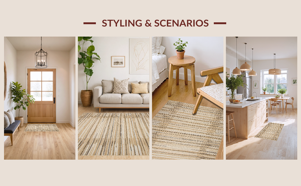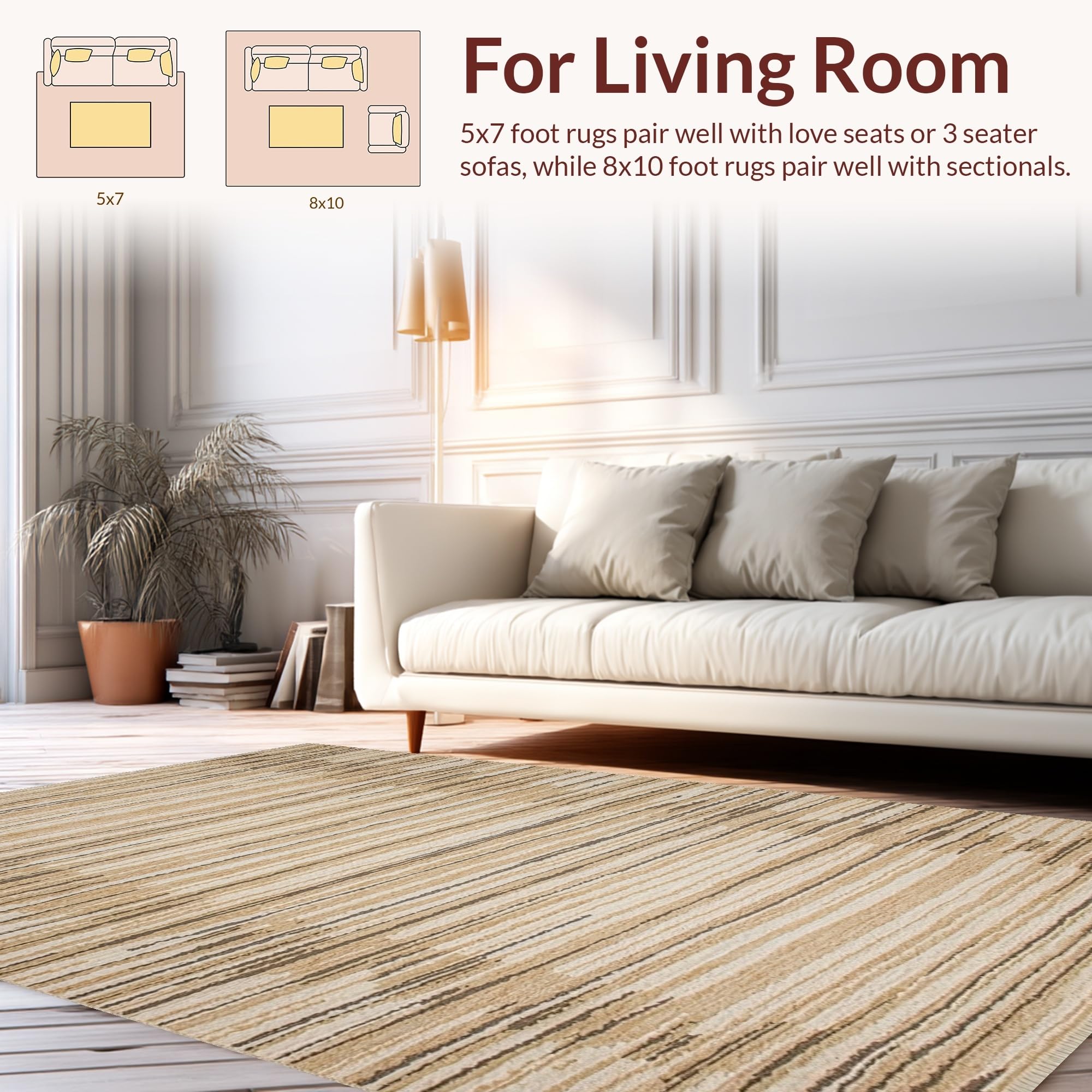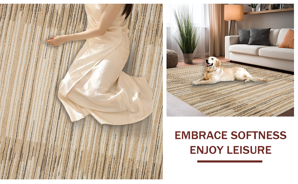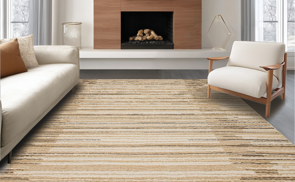 Ultra Soft Area Rug, Non Slip, Stain Resistant, Washable Area Rugs for Living Room, Bedroom, Chic Minimalist Twisted Pattern(Beige) Overview: