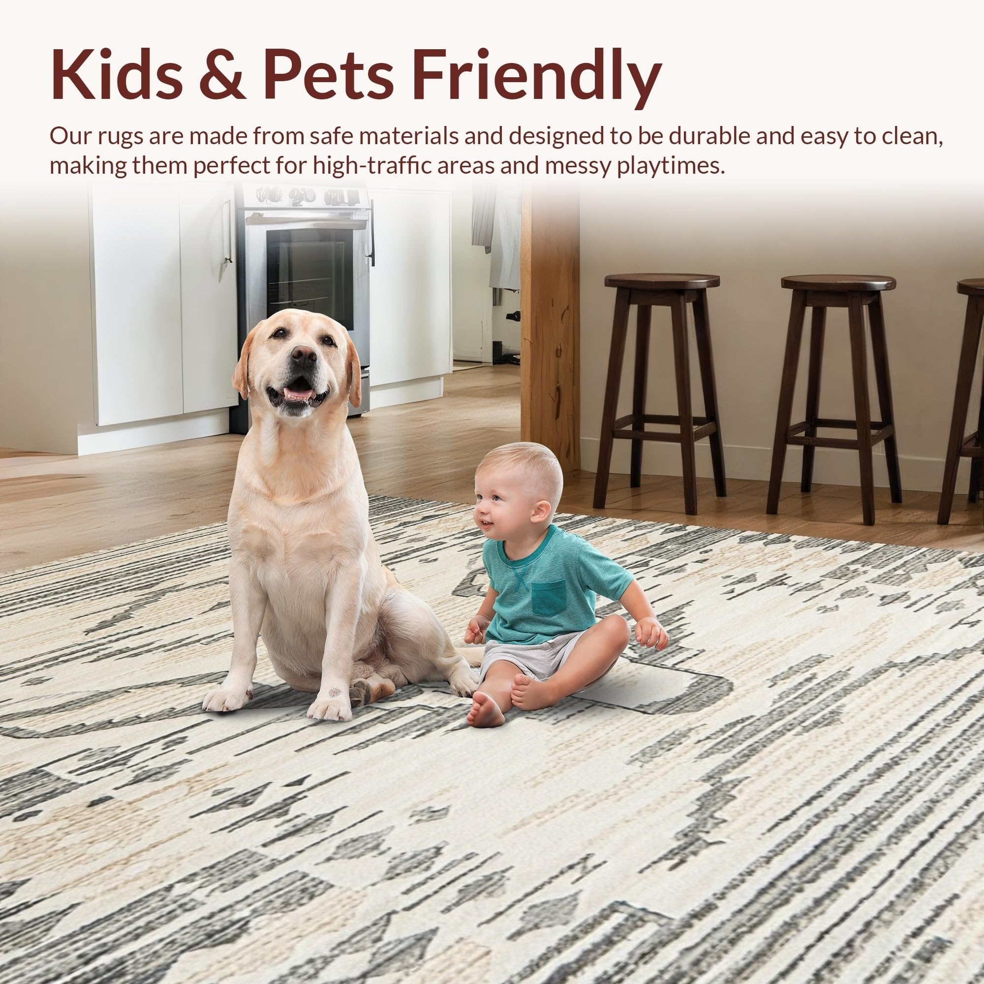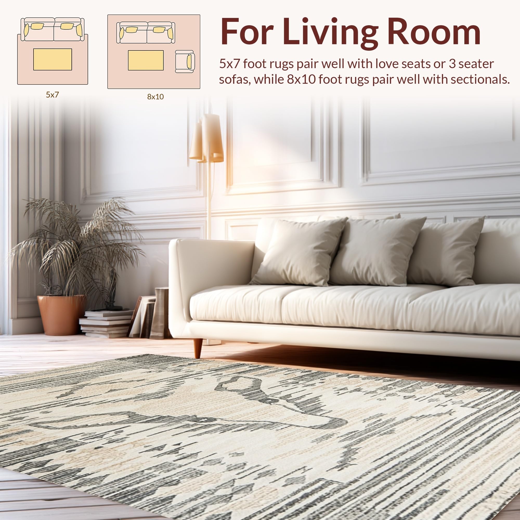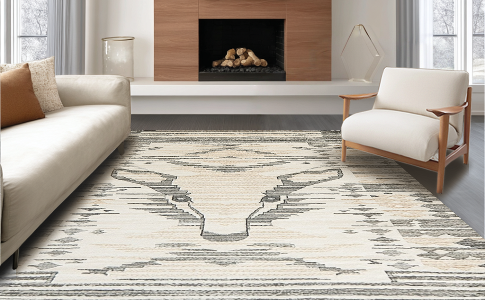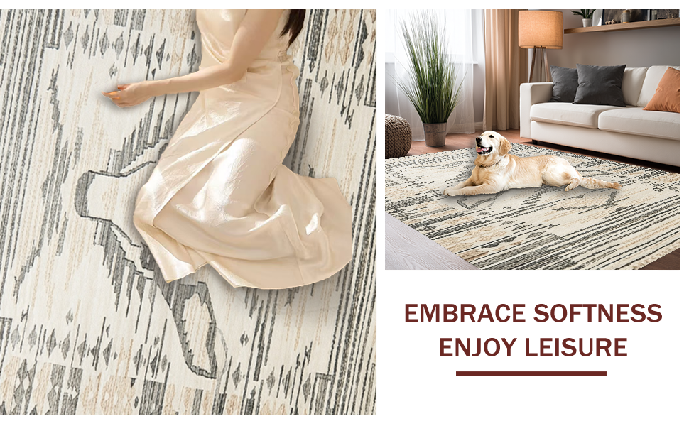 Ultra Soft Area Rug, Non Slip, Stain Resistant, Washable Area Rugs for Living Room, Bedroom, Chic Minimalist Wildlife Style(Beige) Overview: