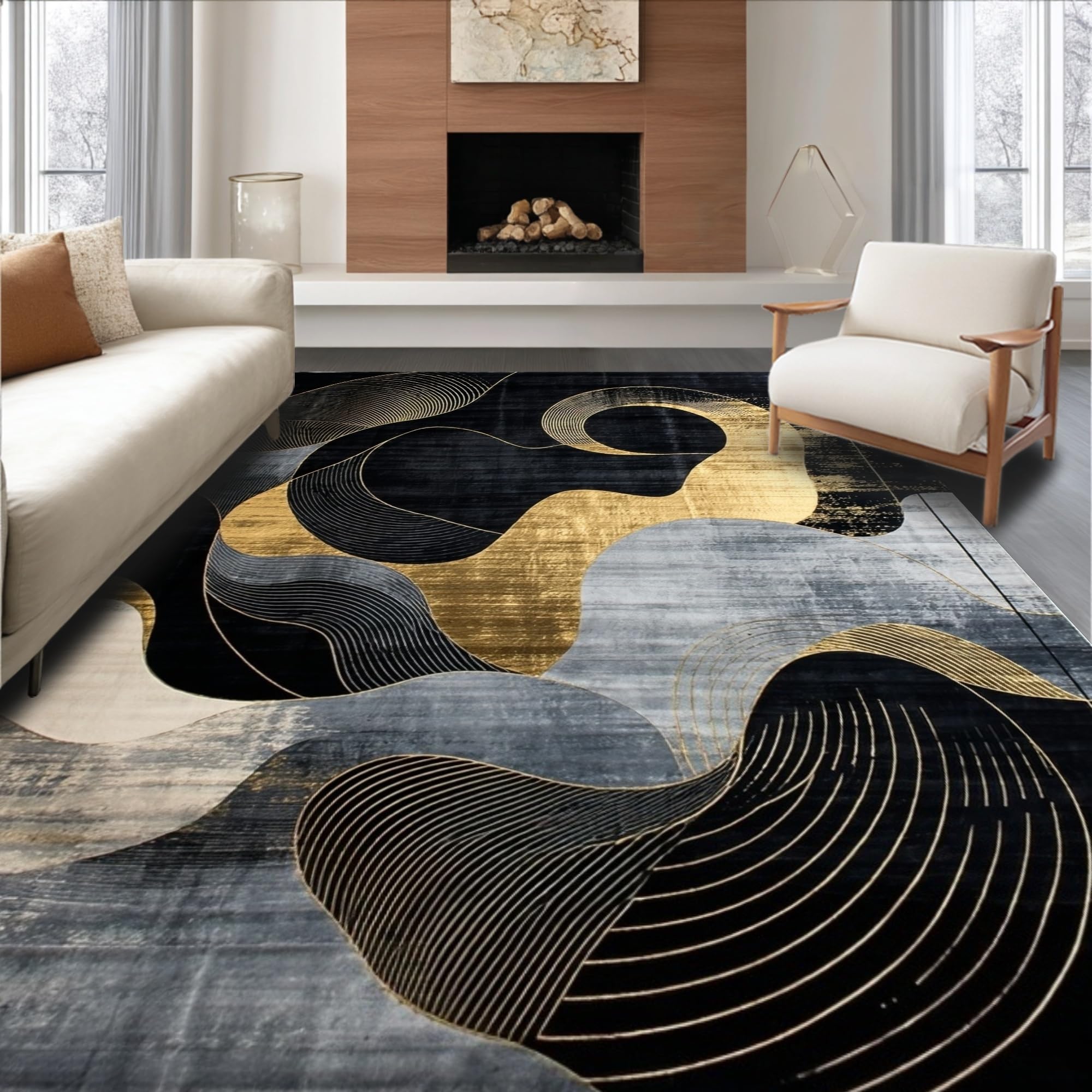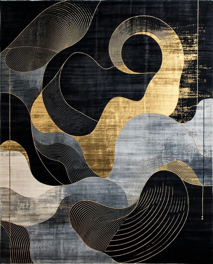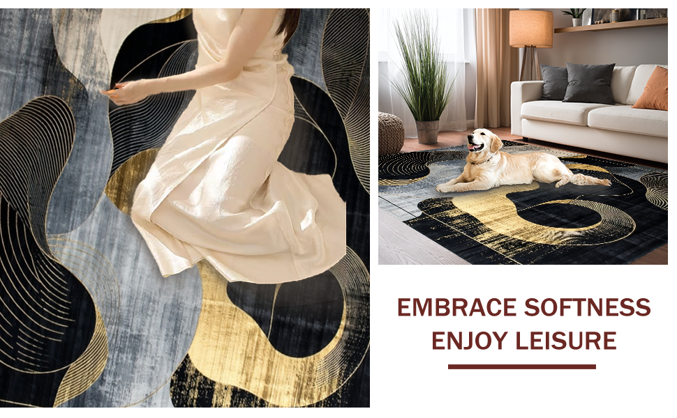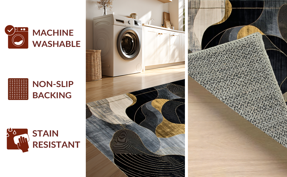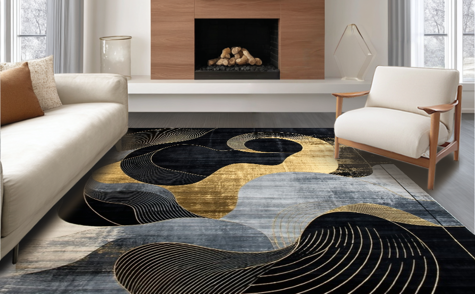 Ultra Soft Area Rug, Non Slip, Stain Resistant, Washable Area Rugs for Living Room, Bedroom, Chic Modern Abstract Contrast(Black) Overview: